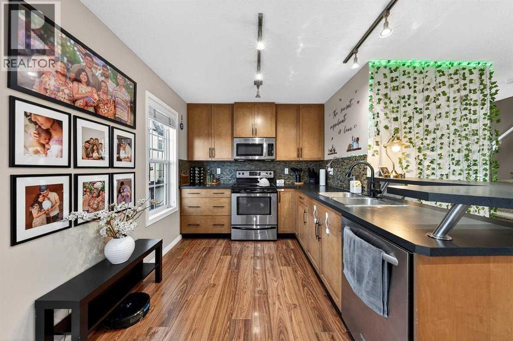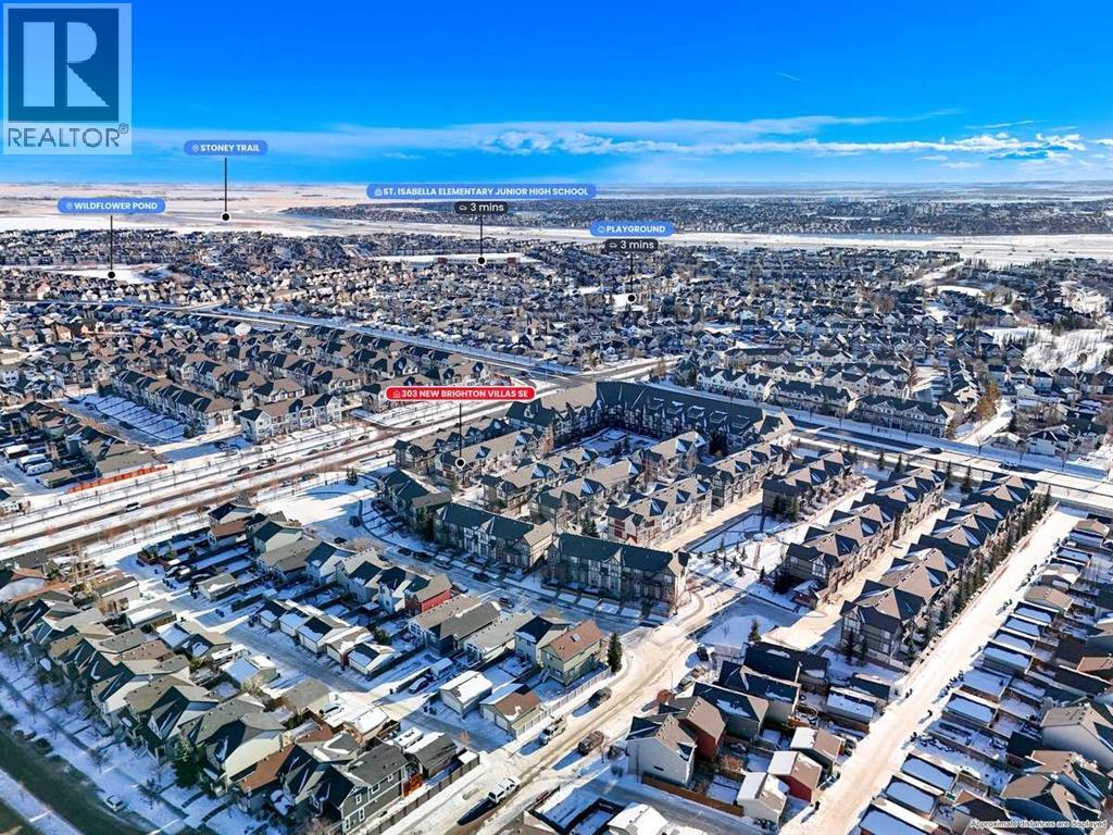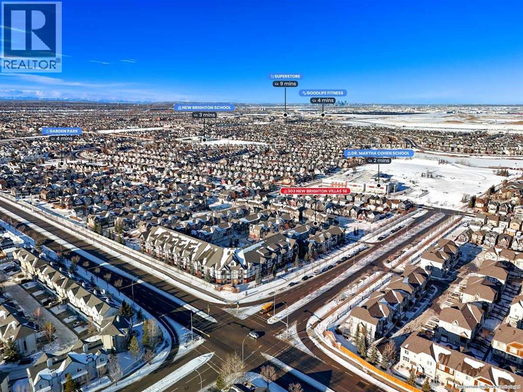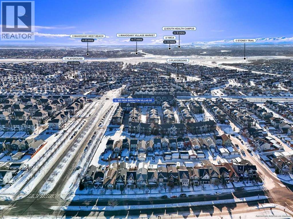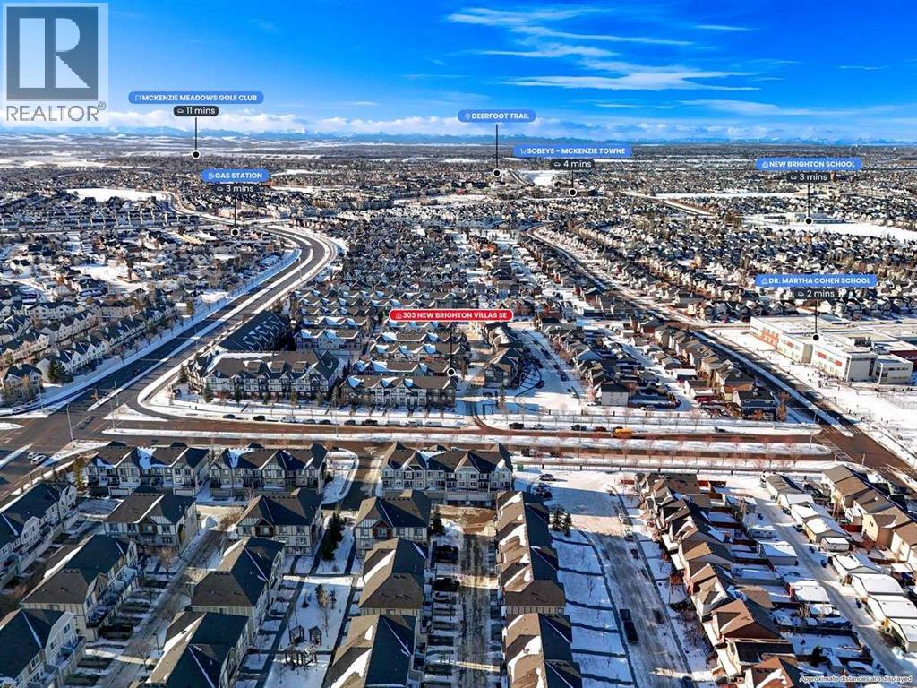 Welcome to your new home at 303 New Brighton Villas SE! A truly impressive and majestic end unit townhome that immediately captivates right as you enter with its high ceiling, tiled entryway, stunning chandelier, and an abundance of natural light streaming through the extra windows that only an end unit like this can offer. The bright, airy, and thoughtfully designed open concept main level is ideal for both everyday living and entertaining, featuring a spacious living room that flows effortlessly into a dining room and beautiful kitchen with ample cabinetry, generous counter space, and a convenient breakfast bar. A 2 piece bathroom completes the main floor, while air conditioning ensures year round comfort throughout your home. Adding exceptional value and convenience is the fully drywalled double attached garage, perfect for secure parking that can fit 2 bigger SUV's and additional storage. Upstairs, the home truly shines with two impressively large primary bedrooms, each designed as its own private retreat, both complete with a walk in closet and a full ensuite bathroom, a rare and highly desirable layout that offers outstanding comfort, flexibility, and privacy. Pride of ownership is evident throughout with numerous updates including a new hot water tank (2022), dishwasher (2022), microwave hood fan (2023), hand held shower head (2023), washer and dryer (2023), and all lighting upgraded in 2023. The well managed complex has also seen a full roof replacement approximately three years ago, offering peace of mind while maintaining impressively low condo fees. Enjoy the charming front patio for relaxing mornings or evenings, and take advantage of the unbeatable location in the vibrant community of New Brighton, close to playgrounds, schools, walking and biking paths, and nearby shopping plazas. This is a home that feels special from the moment you arrive and continues to impress at every turn. Make it yours today! (id:54406)