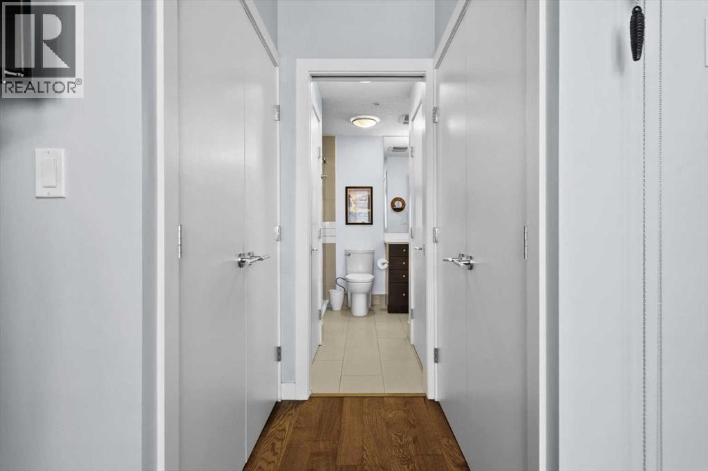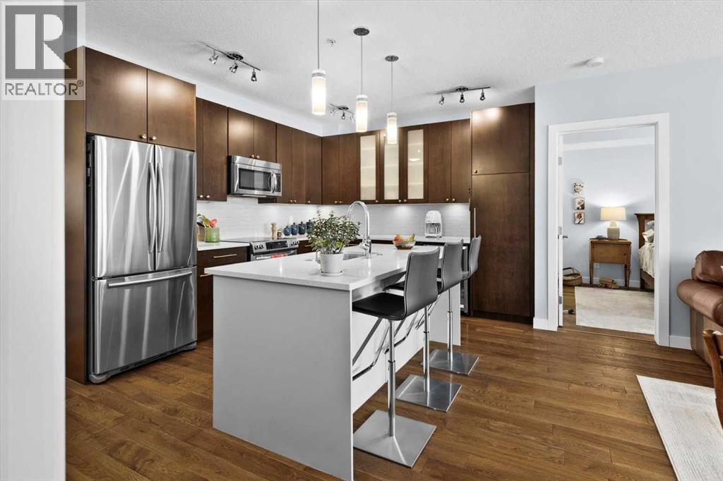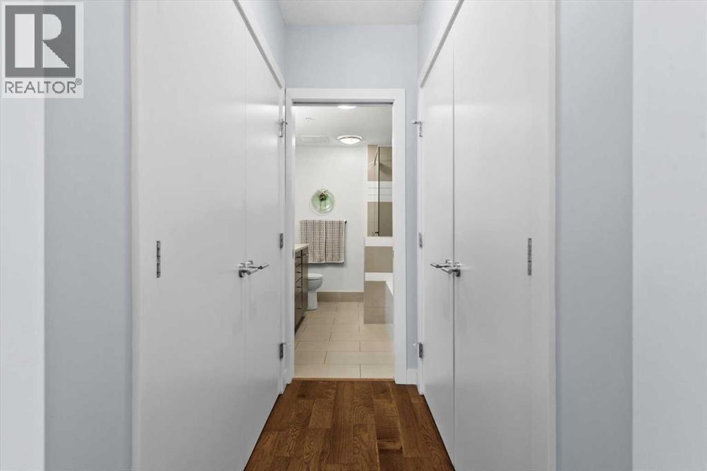 Welcome to refined inner-city living at UNO Condos, ideally positioned in the heart of Lower Mount Royal, one of Calgary’s most established and sought-after neighborhoods. Here, the charm of tree-lined streets and stately homes blends seamlessly with the vibrancy of urban life, just moments from the energy of 17th Avenue SW and the boutique appeal of 4th Street SW in Mission, this location offers both lifestyle and convenience in equal measure. This beautifully curated south-facing residence presents a thoughtful balance of comfort and sophistication, offering one of the largest unit layouts available within this complex. Recently refreshed with a modern palette of paint, the home is elevated by quartz countertops, engineered hardwood flooring, ceramic tile, and a sleek suite of stainless-steel appliances complemented by a wine fridge, built-in workspace, and in-suite laundry. The covered south-facing balcony invites year-round enjoyment, complete with a gas line and intimate balcony seating. In-floor heating ensures warmth through Calgary’s winters, while the addition of air conditioning provides welcome relief in the summer months. UNO is a well-managed, boutique building supported by a proactive and engaged board, with condo fees kept at a reasonable level and backed by a strong, 2025 Reserve Fund Study. Residents also enjoy access to a serene, shared courtyard deck and garden; an unexpected retreat tucked quietly behind the property. Inside, this home is both inviting and functional, ideal for relaxing or entertaining. The spacious primary suite comfortably accommodates a king-sized bed and features a walk-through closet leading to a luxurious five-piece ensuite with dual vanities, a soaker tub, and an upgraded glass shower. Thoughtfully separated for privacy, the second bedroom or optional den, includes its own walk-through closet and direct access to a stylish three-piece cheater ensuite. An oversized titled underground parking stall, secure assigned stora ge locker, bike room, and an exceptional Royal Avenue SW address. A home that effortlessly combines comfort, style, and location; this is Lower Mount Royal living at its finest. (id:54406)