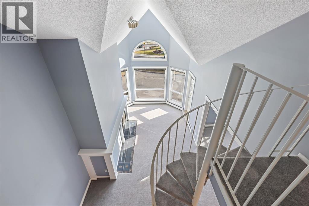 Welcome to #309, 102 Centre Court SW in Okotoks a perfect blend of comfort, space, and boutique condo living. This rarely available 2 bedroom, 2 bathroom, two-storey unit offers 1,354 sq. ft. of thoughtfully designed space in a quiet, 45+ age restricted community.Step inside to an open and airy layout, highlighted by large windows that fill the living room with natural light and frame stunning views of Okotoks and the Rocky Mountains to the southwest a picturesque backdrop to everyday life.To the right, a spacious dining area is ideal for family dinners and entertaining. To the left, a functional kitchen offers ample storage and workspace. The striking spiral staircase leads to the loft, which serves as the primary bedroom and features a private balcony, perfect for morning coffee or evening sunsets.Both bedrooms are generous in size, and the layout provides privacy and flexibility. The unit includes a titled, heated underground parking stall, keeping your vehicle secure year-round.The building offers fiber optic internet, is peaceful, well-maintained, and designed for low-maintenance, mature living.If you’ve been waiting for a condo with space, views, character, and convenience this is the one. Come experience the best of Okotoks living. (id:54406)