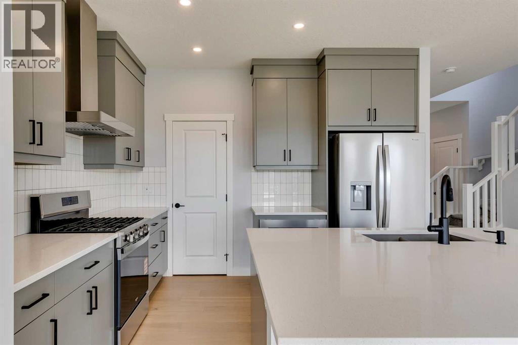 Located in the vibrant SOUTHWEST COMMUNITY OF PINE CREEK, this thoughtfully designed home offers the perfect blend of comfort, functionality, and modern style. Designed for today’s families, it features FLEXIBLE LIVING OPTIONS with a FULLY DEVELOPED LEGAL TWO-BEDROOM SECONDARY SUITE in the basement, complete with a SEPARATE SIDE ENTRANCE — ideal for extended family, guests, or rental income potential.The upper level includes THREE SPACIOUS BEDROOMS and a CENTRAL BONUS ROOM, providing an inviting space for family relaxation, movie nights, or a home office setup. The OWNER’S SUITE features a private ensuite and generous walk-in closet, creating a comfortable retreat at the end of the day.On the main floor, a BEDROOM AND FULL BATHROOM offer convenience and flexibility, perfect for visiting guests or multigenerational living. The OPEN-CONCEPT MAIN FLOOR seamlessly connects the kitchen, dining, and great room areas, creating a bright and welcoming environment for everyday living and entertaining.The KITCHEN is equipped with a GAS RANGE COOKTOP, HOOD FAN, and a LARGE ISLAND that provides both workspace and gathering space for family and friends. The GREAT ROOM features an ELECTRIC FIREPLACE FEATURE WALL, adding warmth and contemporary style to the home’s central living area.Additional highlights include MODERN FINISHES, ample storage space, and thoughtful details throughout. The property’s location in PINE CREEK offers convenient access to parks, walking paths, schools, and major roadways, all while being surrounded by Calgary’s scenic southwest landscapes.This is truly a WELL-ROUNDED HOME that combines design, comfort, and practicality — the perfect place to build lasting memories. Don't miss your chance to view - contact the Showhome today! *Measurements are pulled from builder drawings* (id:54406)