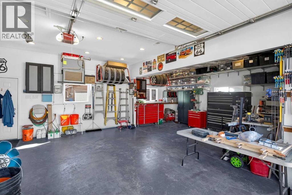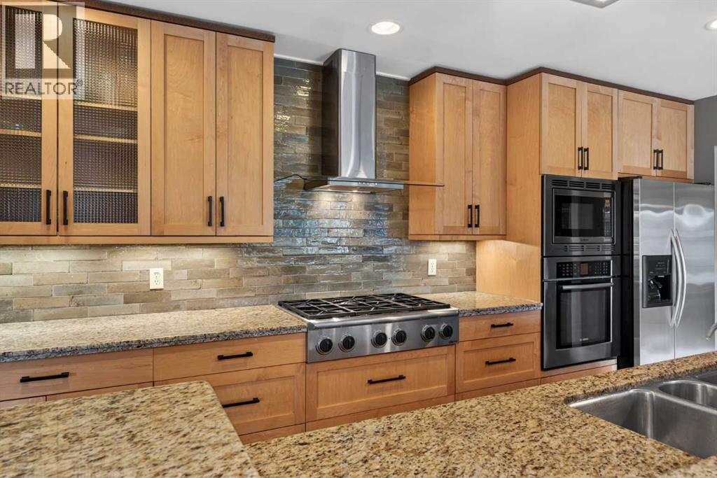 **OPEN HOUSE: Sat April 18, 2026 from 1 to 3pm** Behold…welcome to your new home! Located here in one of Northwest Calgary’s most exclusive neighbourhoods is this incredible estate home…a stunning showpiece of fine living with a total of 4 bedrooms, oak hardwood floors & maple kitchen with stainless steel appliances, oversized heated 3 car garage & private low-maintenance West backyard for your outdoor pleasure. Offering over 3400sqft of living space, this custom-crafted bungalow will take your breath away the moment you step through the front door, with its expansive great room with wood-burning fireplace & vaulted ceilings with engineered trusses, open concept dining room with built-in hutch for your formal entertaining & airy dining nook for casual family meals & breakfasts. Next to the kitchen is a fantastic mudroom/office area complete with built-in desk, walk-in closet, built-in shoe storage & lockers. At the heart of your new home is the beautifully appointed kitchen with bird’s eye maple cabinetry & granite counters, large centre island with raised bar & built-in wine rack, walk-in pantry & upgraded Bosch appliances including built-in convection oven & dishwasher, plus Dacor gas cooktop & Zephyr chimney hoodfan. The hardwood floors continue into the 3 main floor bedrooms which are highlighted by the owners’ retreat with walk-in closet, private access into the backyard & relaxing soaker tub ensuite with shower & granite counters. The amazing lower level is finished with a 4th bedroom & a 3rd full bathroom (with walk-in shower), office area with built-in cabinets & desk (which is included), bright games room with granite-topped wet bar, recreation/media room with entertainment centre (also included) & an exercise/lounge area. The detached 3 car garage is oversized & drywalled, with ducted heating, 9.5’ ceilings, workshop area with built-in shelving & prepped for 220V/20amp/30amp. Additional features include the lower level laundry room with Bosch washer/dryer & loads of cabinets, 2 furnaces & 2 hot water tanks, irrigation system, wrap-around covered verandah – accessible from both the front door & dining room, fir construction walls strapped with extra 2” spruce (resulting in 2”x6” for added insulation) & 40year roof shingles (installed in 2013). The low-maintenance & fenced West backyard is your private outdoor sanctuary…with its sprawling 1000sqft+ brick patio & 2 sheds…one for storage & the other for your lawn equipment. Originally a side-by-side duplex, & converted in 2002 by Morrison Maurer into what you see today…completely stripped to the studs with all new plumbing, electrical & heating. A truly extraordinary home located across from a park, surrounded by a mixture of charming original & renovated mid-century homes as well as new builds, in this prime location in this mature established community close to neighbourhood schools & shopping, only a few short minutes to the Winter Club & Nose Hill Park, Confederation Park & quick easy commute to downtown. (id:54406)