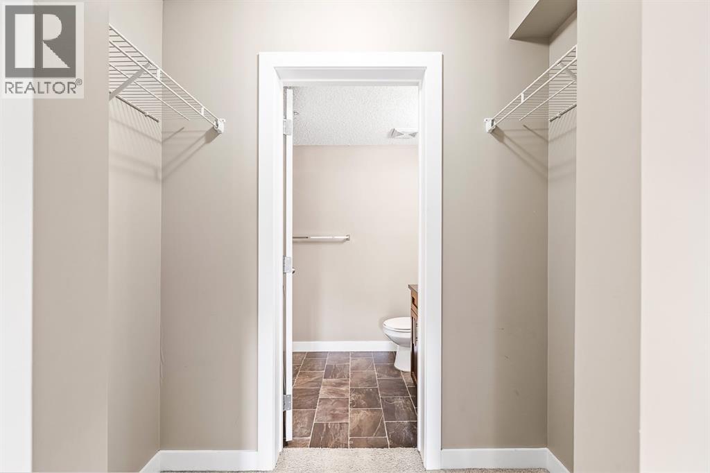 Welcome to comfort, convenience and true walkability in the heart of Cochrane. This bright and inviting 2 bedroom, 2 full bathroom ground floor suite in Glenbow Landing offers an ideal blend of accessibility and modern living. The building features low condo fees and is pet friendly, allowing both dogs and cats. The home also includes one titled underground parking stall and one assigned surface stall.This southeast facing unit offers a smart open layout with large windows and bedrooms thoughtfully positioned on opposite sides of the suite. It is a great fit for first time buyers, downsizers or investors looking for a functional and highly rentable floor plan.The kitchen is well appointed with stainless steel appliances, granite countertops, tile backsplash, ample cabinetry, a breakfast bar and a generous pantry closet. The living and dining area easily accommodates full size furniture and opens onto an enclosed ground level balcony that offers privacy, security and extended outdoor living that can be enjoyed through multiple seasons.The spacious primary bedroom features a walk through closet and a 3 piece ensuite with granite countertops and a large stand up shower. The second bedroom is conveniently located beside the 4 piece main bathroom, making it ideal for guests, a home office or a roommate setup. An in suite laundry room with additional storage adds everyday convenience.Additional highlights include a welcoming front entry with a full size coat closet and the ease of ground floor access, perfect for those who prefer no stairs. Condo fees include heat and water, adding value and simplicity to your monthly expenses.Located just steps from Cochrane’s restaurants, coffee shops, grocery stores, parks and pathway system, this move in ready home offers an easy walkable lifestyle in one of the community’s most convenient locations.A fantastic opportunity for both ownership and investment in sought after Glenbow Landing. (id:54406)