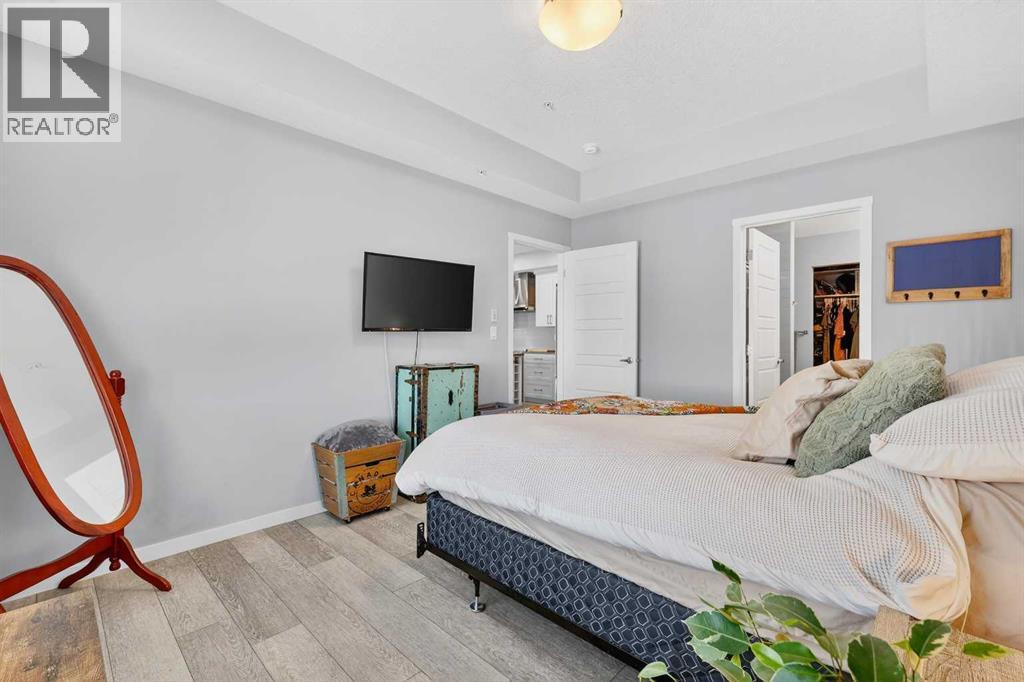 This is the one you have been waiting for! Rare 3-bedroom, 2 Full Bathroom unit with 2 Titled Side by Side parking stalls, and 3 Storage Lockers! This spacious unit with over 1150 sq ft is loaded with upgrades including central A/C and faces South with DT skyline views. As you enter this gorgeous property you are greeted by the luxury vinyl plank flooring guiding you into the open concept space with large windows flooding the property with natural light. Chef’s dream kitchen with crisp white cabinetry, sleek grey quartz counters, upgraded stainless steel appliances, subway tile backsplash, pantry, and huge 11ft island with built-in wine rack. Spacious living room/dining room with sliding doors out the wall-to-wall sunny South balcony that overlooks the courtyard with natural gas hook-up and stunning views. Perfect spot to unwind after a long day with a glass of wine and watch the sunset. Large master bedroom with spa-like ensuite bathroom with “his and hers” dual undermount sinks and walk-in tiled shower. Adjoining walk-in closet with custom built-ins and closet organizers to maximize the space. Good sized 2nd and 3rd bedrooms and another full 4-piece bathroom make this a great work from home space with lots of options. Large storage room/closet and laundry area with upgraded Samsung Steam front loading washer and dryer. The two titled parking stalls are side by side (217+218) and conveniently located right next to the elevator door! The three separate storage lockers come at no additional cost as the 60-year lease is paid in full. This is truly one of the nicest & largest units in the building and shows 10/10. Well managed building with bicycle storage, garden boxes, and access to playground area and tennis courts! All this in an unbeatable location surrounded by shopping, dining, parks, schools and commuting is a breeze with quick access to Stoney and Deerfoot Trail and minutes to the airport! (id:54406)