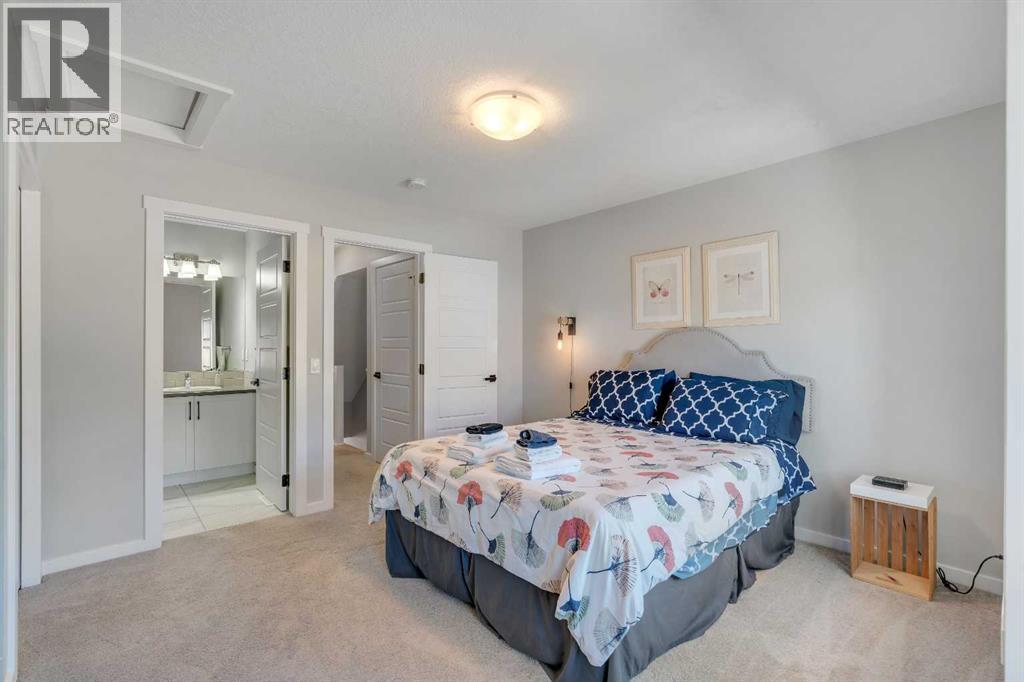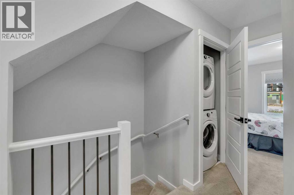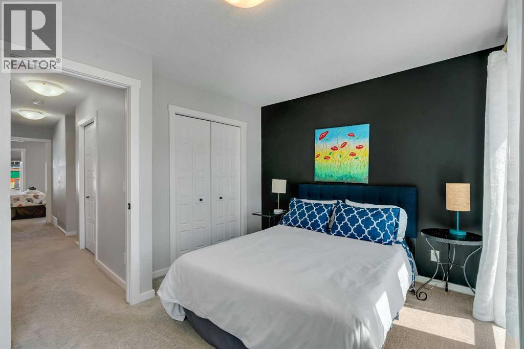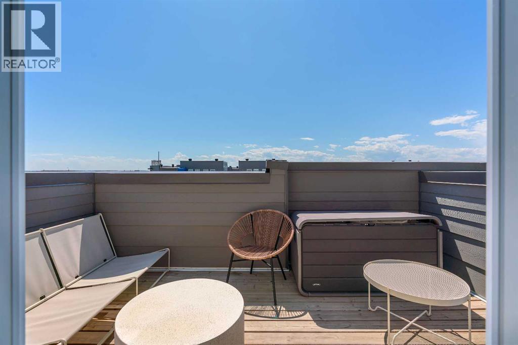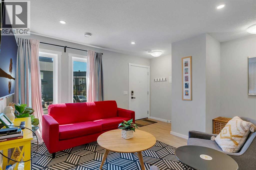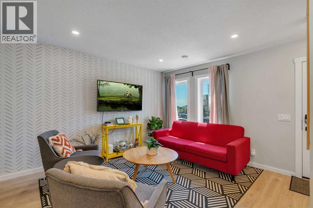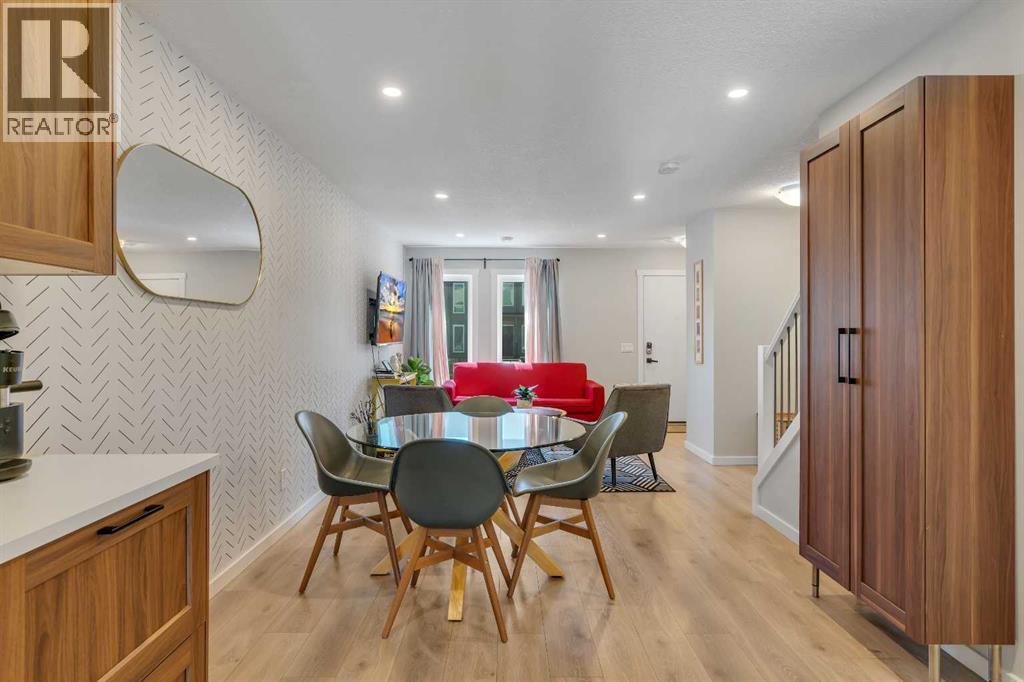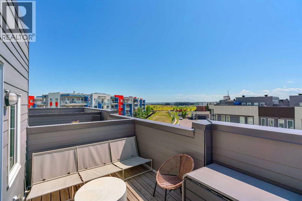 Welcome to 312, 19500-37 Street SE. A beautifully maintained, energy-efficient townhome in the sought-after Zen Urban District, ideally located in the vibrant heart of Seton. Offering over 1,500 square feet of thoughtfully designed living space across three levels, this home features 3 bedrooms, 2.5 bathrooms, and an incredible private rooftop patio with stunning mountain views. The open-concept main floor welcomes you with durable laminate flooring, a spacious living area, and a bright dining space that flows seamlessly into the modern kitchen. The kitchen boasts updated white cabinetry with a stylish blue-tone island, quartz countertops, a custom coffee station with additional uppers, stainless steel appliances, and an island with seating, all overlooking a fenced backyard. Upstairs, the primary suite features a 3-piece ensuite and a large closet, while the generous second bedroom is steps from a modern 4-piece bathroom. A convenient laundry closet is also on this level. Head up to the third floor to find a versatile loft-style third bedroom or flex space—perfect for a guest room, home office, TV room, or gaming area—along with direct access to the rooftop patio. Additional features that set this home apart include air conditioning for year-round comfort, designer wall treatments and upgraded window coverings for a polished aesthetic, and modern finishes throughout that make the home feel fresh and contemporary. It shows like new, reflecting the care and pride of ownership. Located in a prime interior spot within the complex, the home offers added privacy and quiet. Plus, with ZEN’s EnerGuide™ rating, you'll benefit from an average of 36% energy savings each month, ensuring long-term value and efficiency. Live steps from the South Health Campus, shops, restaurants, cafes, fitness facilities, a movie theatre, and all the amenities that make Seton one of Calgary’s most dynamic communities. (id:54406)