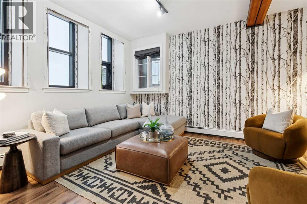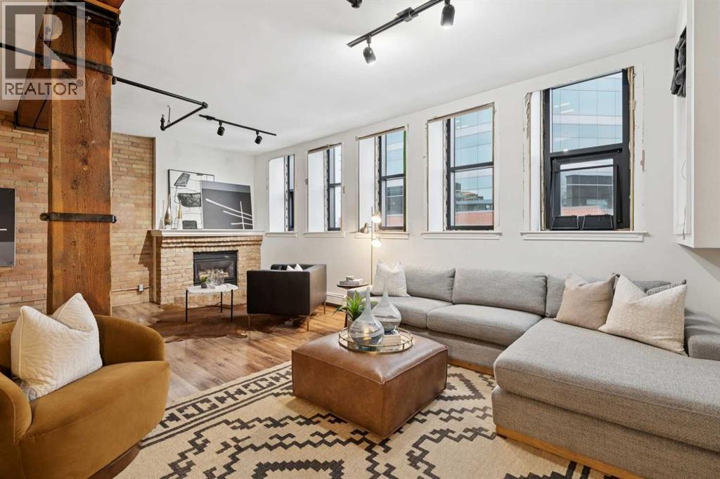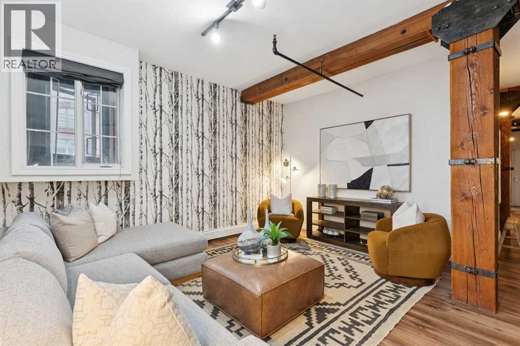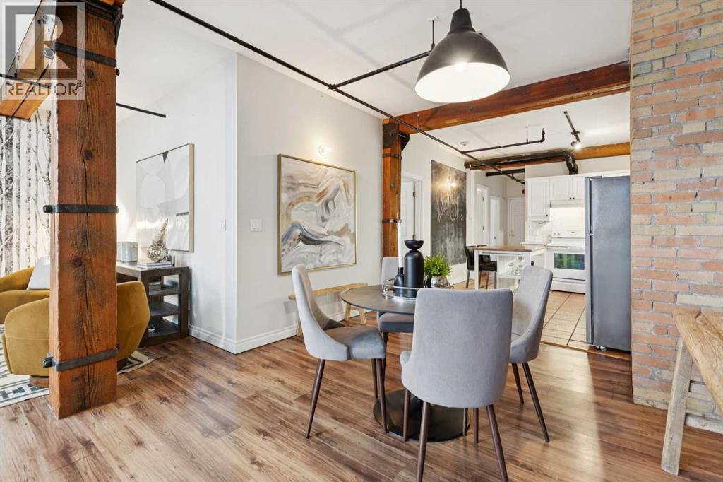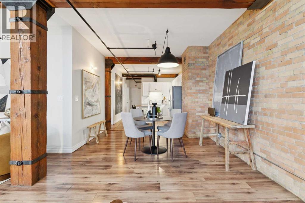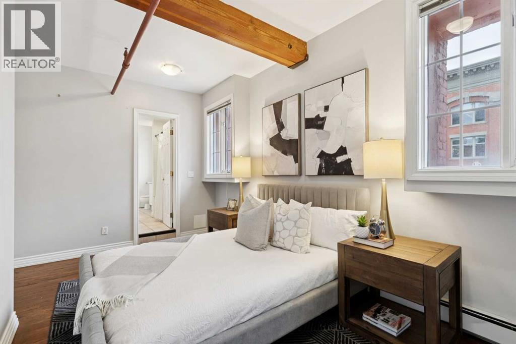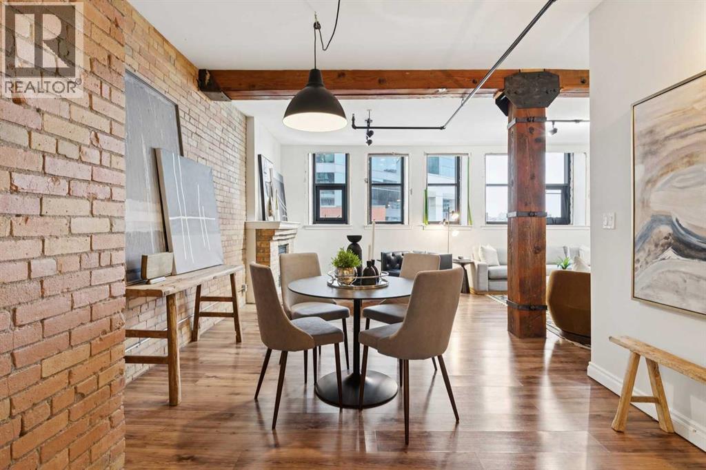 Nestled in the heart of Calgary's Beltline, this extraordinary red brick loft offers a rare opportunity to own a piece of the city’s rich history. Constructed in 1912 for the Imperial Tobacco Company by the renowned A. Dale and Associates, the architectural firm behind the iconic Calgary Tower, this building underwent a stunning conversion to lofts in 1995. For the first time ever, these timeless residences are available for sale, blending historical charm with modern sophistication. Offering over 1,100 SqFt, this expansive loft exudes character with its original brick walls, exposed wood beams, and soaring ceilings. A wall of windows floods the space with natural light, creating a warm and inviting ambiance reminiscent of a classic New York City loft. The open-concept layout is thoughtfully designed, offering endless possibilities for both living and working. A private den provides the perfect space for a home or business office, while two generously sized bedrooms are complemented by a five-piece Jack and Jill bathroom plus there is an additional three-piece bathroom. The galley-style kitchen features freshly sprayed maple cabinetry with under mount lighting, moveable island, and a seamless flow into the dining and living areas. Whether you envision this space as your personal sanctuary or a dynamic live/work environment, the possibilities are as limitless as your imagination. Beyond the loft itself, the building offers an array of amenities, including a gym, a games room, and a rooftop patio with breathtaking views of the Downtown Skyline. A titled underground parking spot is also included, ensuring convenience in this vibrant urban setting. This is more than a home; it’s a lifestyle. A rare blend of history, elegance, and modernity, this loft is a once-in-a-lifetime opportunity to own a truly unique piece of Calgary’s architectural heritage. (id:54406)