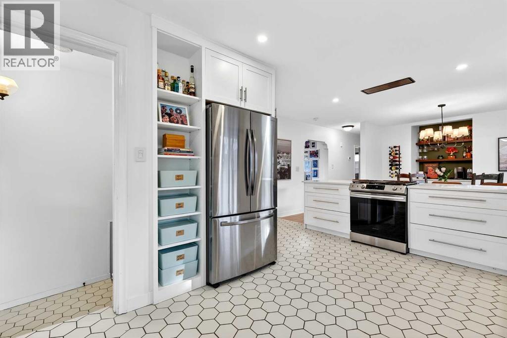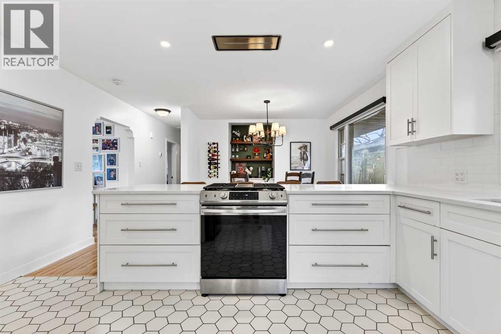 Welcome to this beautiful updated bungalow that blends preserved character with extensive modern renovations, ideally located on a quite street and set on a large corner lot in a mature , highly desirable neighbour. Offering exceptional indoor and outdoor living, this move-in-ready home is perfectly suited for families, professionals and those who love to entertain. The functional layout includes 3 bedrooms + 2 baths with 2 bedrooms up + 1 down allowing for a primary suite on either level. Original character doors and classic archways have been thoughtfully maintained adding warmth and architectural charm while complementing the modern updates. The bright main living space flows seamlessly into a custom kitchen featuring featuring quartz countertops custom cabinetry, spacious peninsula with seating for 5, gas range, stainless steel appliances, built-in coffee bar, and custom kitchen bench seating. Quartz counters in both baths pair with the tasteful black fixtures + updated finishing. Fully redeveloped basement with custom built in entertainment centre (ideal for movie nights + hosting guests), new plush carpeting + new windows. Extensive upgrades: new furnace, hot water tank, water softener, electrical, plumbing, attic insolation, gutters, upgrade tile, refinished hard wood floors, new window coverings + top quality materials throughout. Garage and storage options are exceptional, with a single attached garage + carport for a mud room, yoga and storage area. A double detached garage providing room for vehicles and equipment. Outdoor living is a true highlight with tasteful landscaping, private side yard framed by mature tree and perennials, professionally restored exterior fireplace + cabana area for entertaining. Expansive front grassed lawn on this corner lot with additional green space to enjoy. Ideally located minutes from downtown, walking distance to Marda Loop + close to Mount Royal University.This home offers a rare combination of character, modern upgrade s, flexible living space + an unbeatable inner city location. (id:54406)