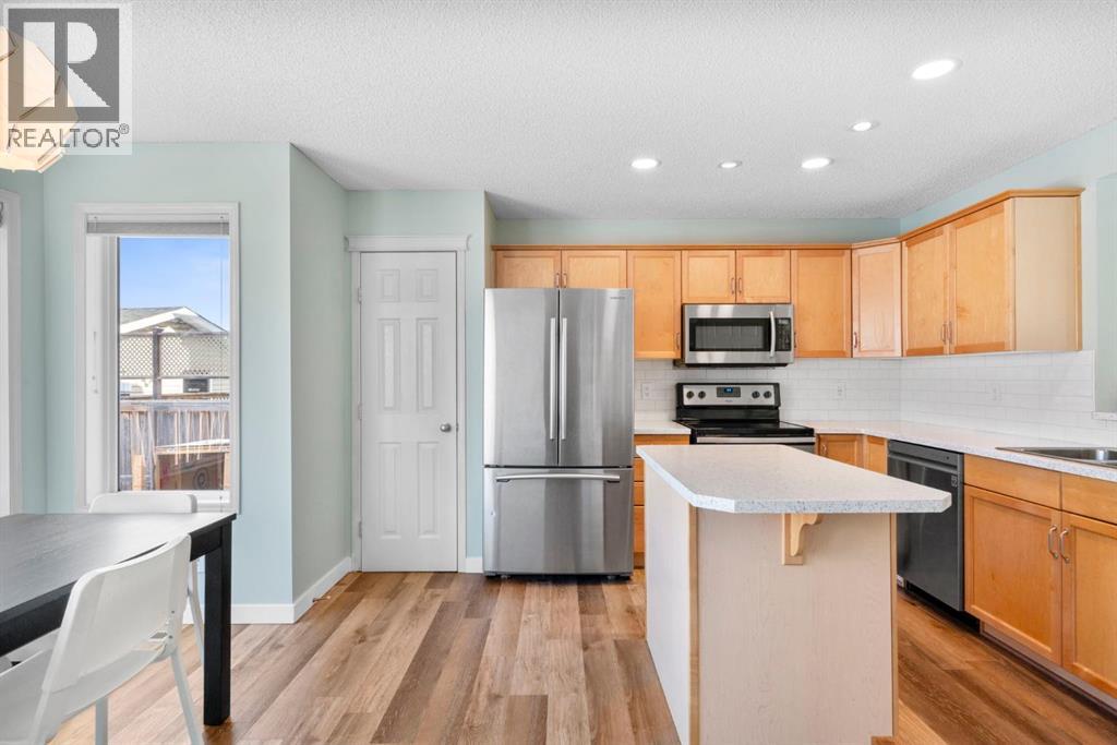 This well-maintained 3 bedroom, 3 bathroom two-storey home offers a bright, open layout designed for everyday living. The living room is filled with natural light and provides a comfortable space for both relaxing and entertaining. The kitchen features stainless steel appliances, upgraded LED lighting and connects seamlessly with the main living areas. Wide-plank LVP flooring and fresh paint throughout add a modern, cohesive look. Significant exterior updates were completed in 2020, including a new roof and gutters. The basement includes a finished recreation room with a flexible layout, offering the potential to add a fourth bedroom and an additional bathroom. A large utility and storage room with laundry completes the lower level. Situated directly across from a park, the home enjoys open views and convenient access to green space. Close to highly regarded schools, amenities and pathway systems, this move-in-ready property offers both comfort and long-term potential in a sought-after location. (id:54406)