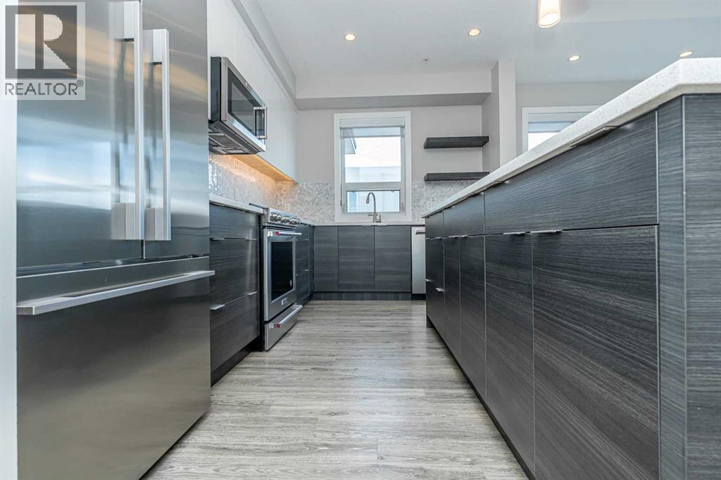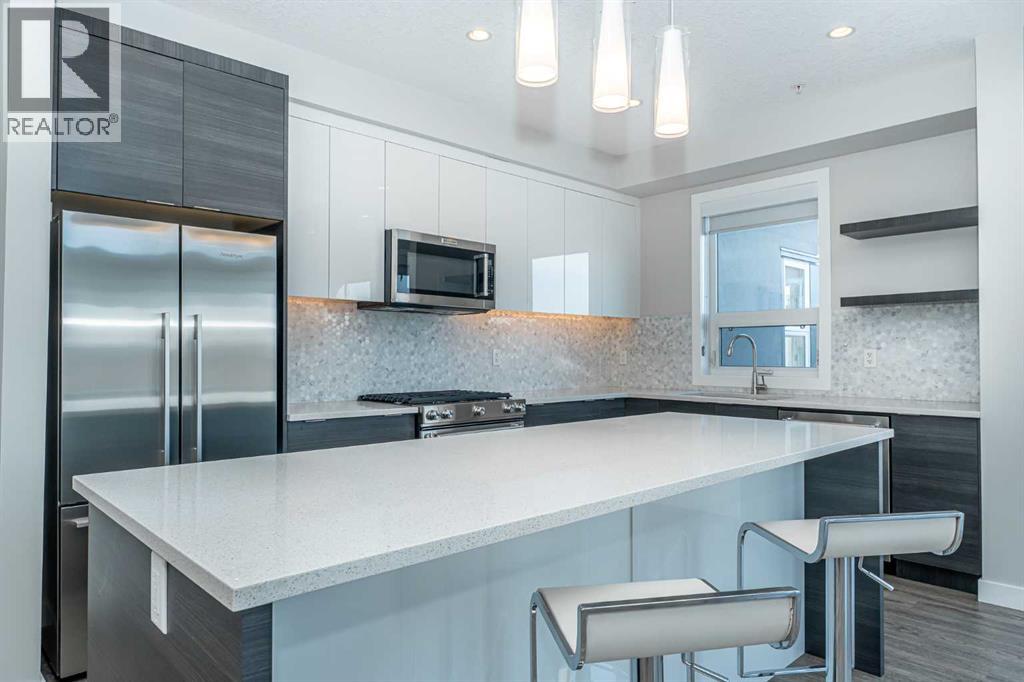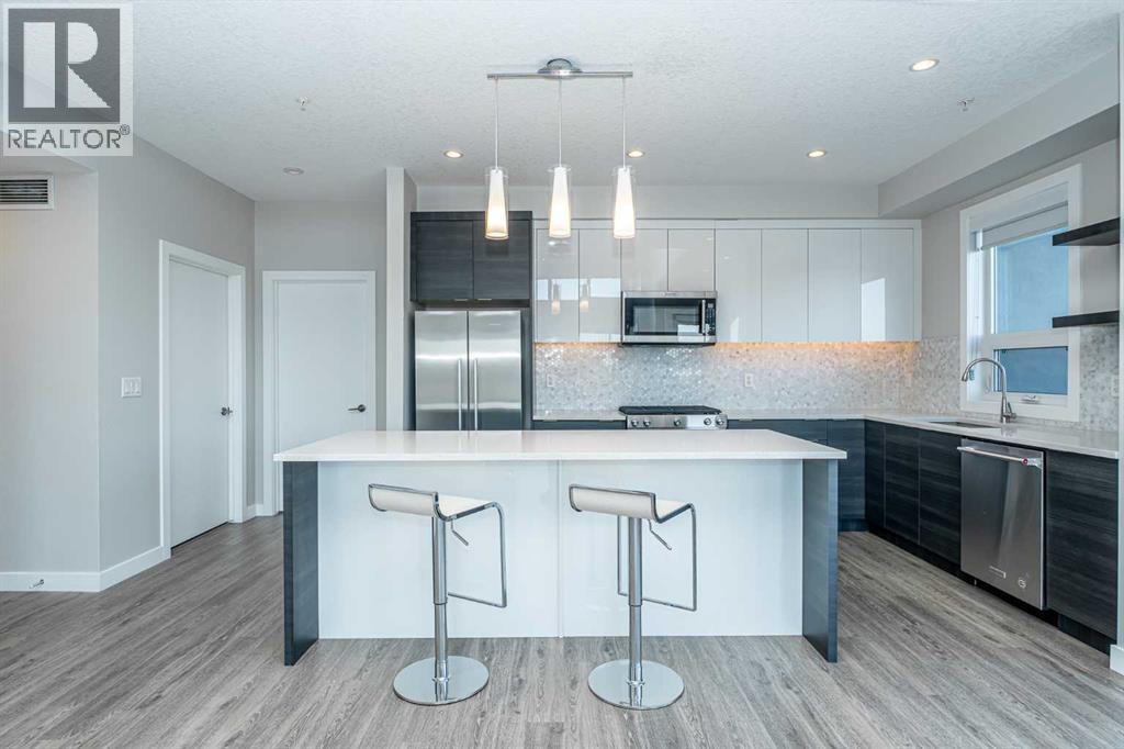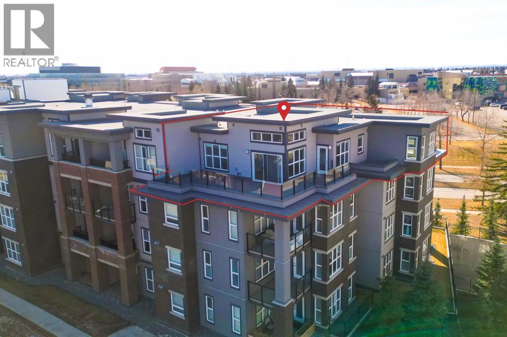 Discover this exceptional penthouse nestled in the heart of Currie Barracks, offering unparalleled elegance and comfort. Located on the top floor of a stunning four storey building, this residence features soaring ceilings and an expansive open concept living and dining area perfect for both relaxing and entertaining. Step outside onto the massive terrace, where breathtaking views and seamless indoor outdoor living await. With dual balconies, you will enjoy stunning vistas from every direction, including mountain views from the primary bedroom balcony. Every detail of this penthouse exudes sophistication, from the sleek quartz countertops in the modern kitchen and bathrooms to the thoughtfully designed layout that maximizes space and natural light. Enjoy the convenience of two titled parking stalls in the heated underground parkade, which also offers 26 visitor stalls and a car wash. The beautifully landscaped surroundings provide easy access to numerous nearby parks, creating a serene and inviting atmosphere. Experience the pinnacle of refined living in this one of a kind penthouse where luxury truly meets lifestyle. (id:54406)