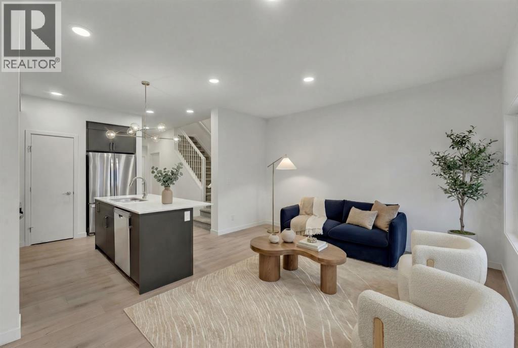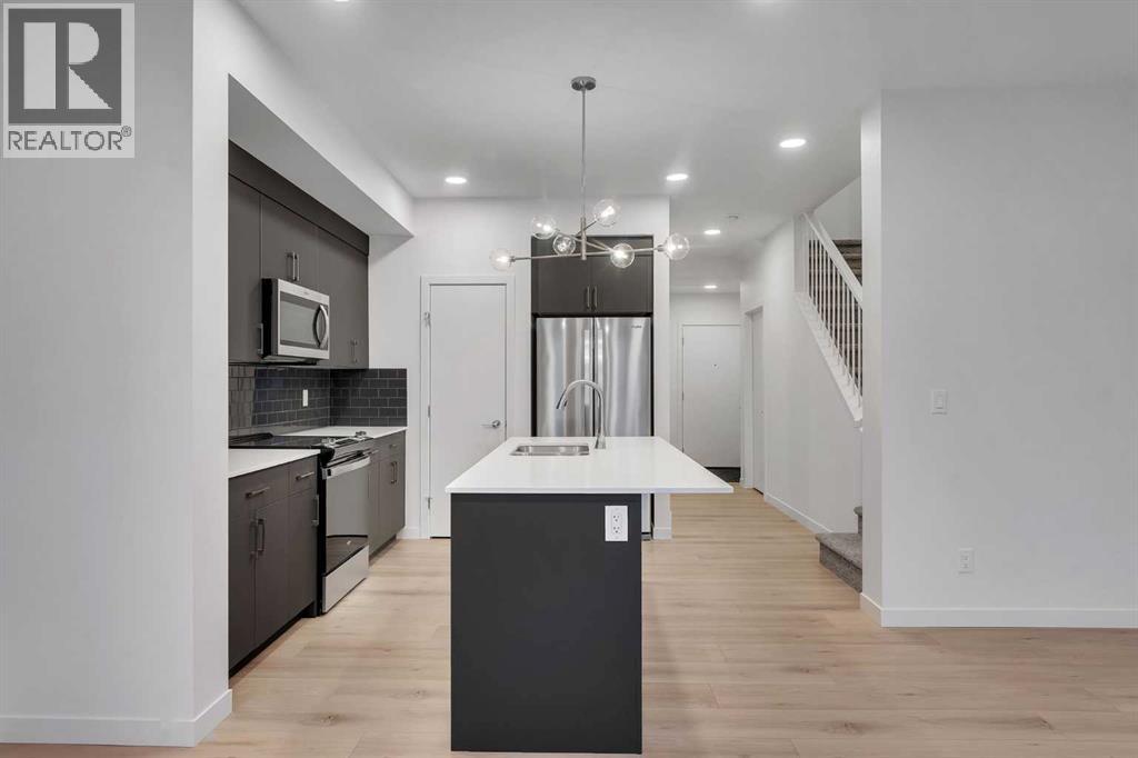 Welcome to the Metro Duplex 18 by award-winning Cantiro Homes, available for immediate possession! This beautifully designed home is located in the scenic hilltop community of West Hawk, Cochrane, and is situated on a desirable lot with a walking path behind the home. Step inside to an inviting slate interior colour palette, luxury vinyl plank floors and airy 9' ceilings. The bright kitchen offers modern cabinetry, quartz countertops, and sleek stainless steel appliances, and is open to the living room and dining room, perfect for entertaining. A convenient mudroom off the oversized attached single garage offers handy built-ins, and the powder room is nicely tucked away, completing the main floor. The upgraded iron spindle railing leads up the upstairs, and the thoughtfully designed layout maximizes every square foot, offering a comfortable primary bedroom with its own ensuite, an oversized shower, and a walk-in closet. Two additional bedrooms and a convenient upstairs laundry complete this level. The basement has its own SEPARATE ENTRANCE, a basement suite rough-in (a secondary suite would be subject to city/municipality approval and permitting), and is a blank canvas ready for your design ideals. This beautiful townhome comes complete with a finished deck and a spacious yard and is designed to suit a range of homeowners, from first-time buyers or investors to those looking to right-size. A well-balanced home in a growing hilltop community — ready when you are. *RMS on measurements provided by the builder. Taxes have not been assessed. (id:54406)
