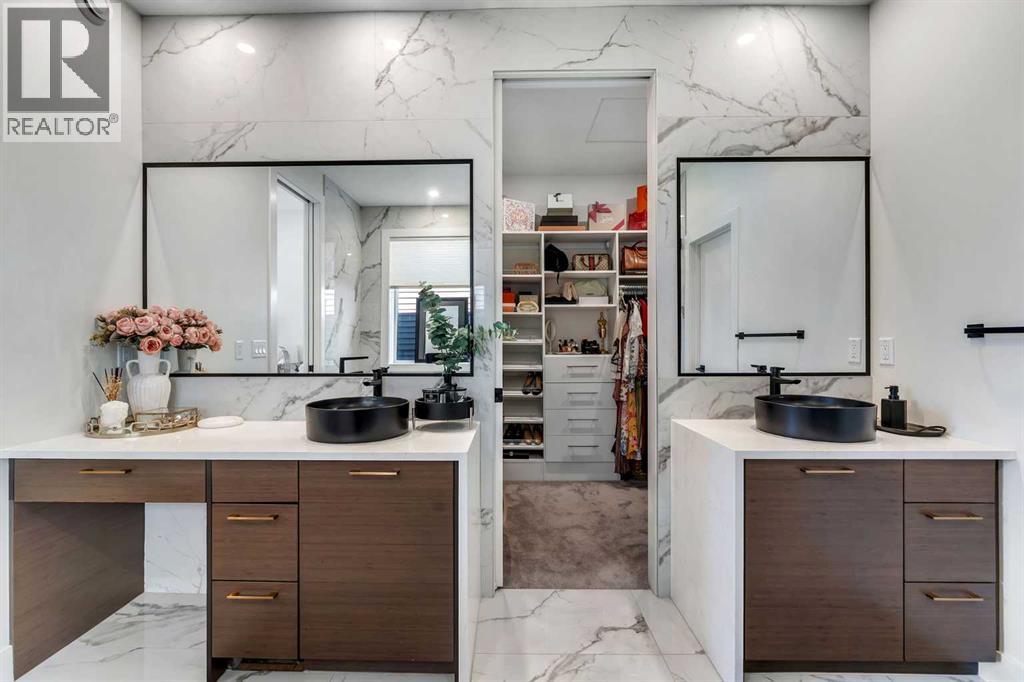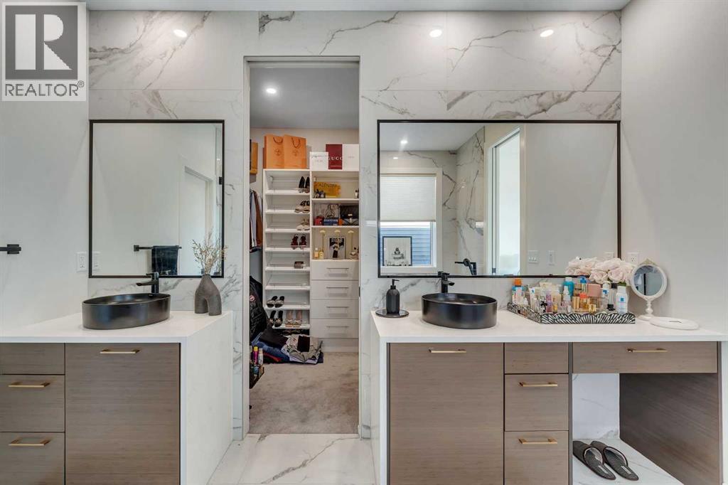 ONE OF THE BEST HOMES TO OWN IN LIVINGSTON!! CUSTOM BUILT BY MORRISON HOMES!! BACKING ONTO GREEN SPACE/POND & WALKING PATH!! WALKOUT BASEMENT!! SEPARATE ENTRANCE!! OVERSIZED DOUBLE ATTACHED GARAGE!! 4730+ SQFT OF LUXURIOUS LIVING SPACE!! 5 BEDROOMS 5 BATHROOMS!! 2 MASTER BEDROOM!! EVERY BEDROOM WITH WALK-IN CLOSET!! 10 FT GRAND ENTRY + 9 FT CEILINGS ON ALL FLOORS!! STAMPED CONCRETE IN BACKYARD!! Step into a stunning, light-filled main floor finished with engineered hardwood, featuring a spacious bedroom with walk-in closet and 3pc bath. A den, elegant living area with fireplace and soaring open-to-below ceilings, and a dining space with direct access to the deck create the perfect flow for both everyday living and entertaining. The chef-inspired kitchen is a true showpiece, complete with a MASSIVE waterfall island, high-end finishes, upgraded appliances, spice kitchen, and a walk-in pantry. The statement staircase leads you upstairs where 8 FT DOORS add to the upscale feel. This level offers 3 spacious bedrooms and 3 full baths, including TWO PRIMARY BEDROOMS each featuring luxurious 5pc ensuites with freestanding tubs and custom showers, along with California-style walk-in closets. AN ADDITIONAL VERSATILE ROOM — CURRENTLY USED AS A PRAYER ROOM — CAN EASILY BE USED AS A HOME OFFICE OR NURSERY!! And a generous bonus family room completes the upper level. The WALKOUT BASEMENT showcases modern hexagon flooring and offers a large bedroom with oversized windows and walk-in closet, a massive REC room with electric fireplace, wet bar, and an upgraded 4pc bath. THE BASEMENT STORAGE ROOM CAN EASILY BE USED AS A SECOND BEDROOM, ADDING EVEN MORE FUNCTIONAL LIVING SPACE! Step outside to a beautifully designed backyard with stamped concrete, two grass areas, and a deck with stairs—perfect for enjoying the serene green space, pond, and walking paths behind. LOADED WITH UPGRADES: 2 A/C UNITS, 2 FURNACES, WATER SOFTENER, SMART HOME FEATURES, CAMERA SYSTEM, WIFI-ENABLED APPLIANCES, ELECTRIC BLINDS, DIMMER LIGHTING, POT LIGHTS, UPGRADED BATHROOMS WITH FULL TILE, CUSTOM SHOWERS, OVERSIZED STAIRCASE, FINISHED GARAGE, OVERSIZED DRIVEWAY, AND MORE. THIS IS A RARE OPPORTUNITY TO OWN A FULLY UPGRADED LUXURY WALKOUT HOME BACKING ONTO NATURE—DON’T MISS IT!! (id:54406)