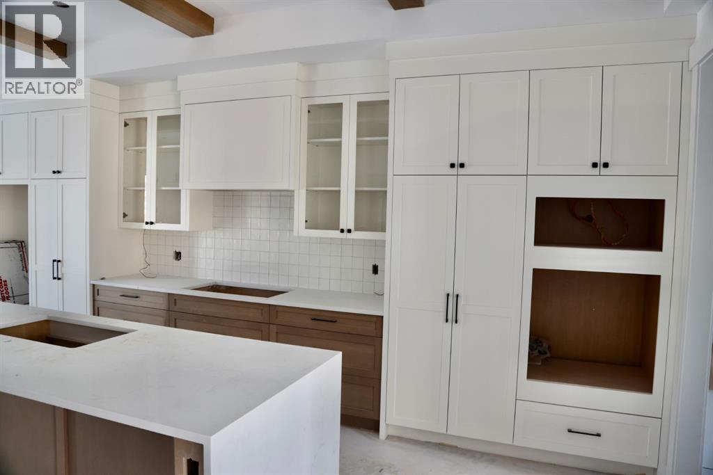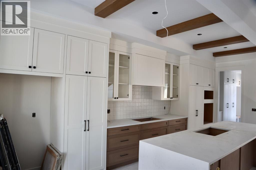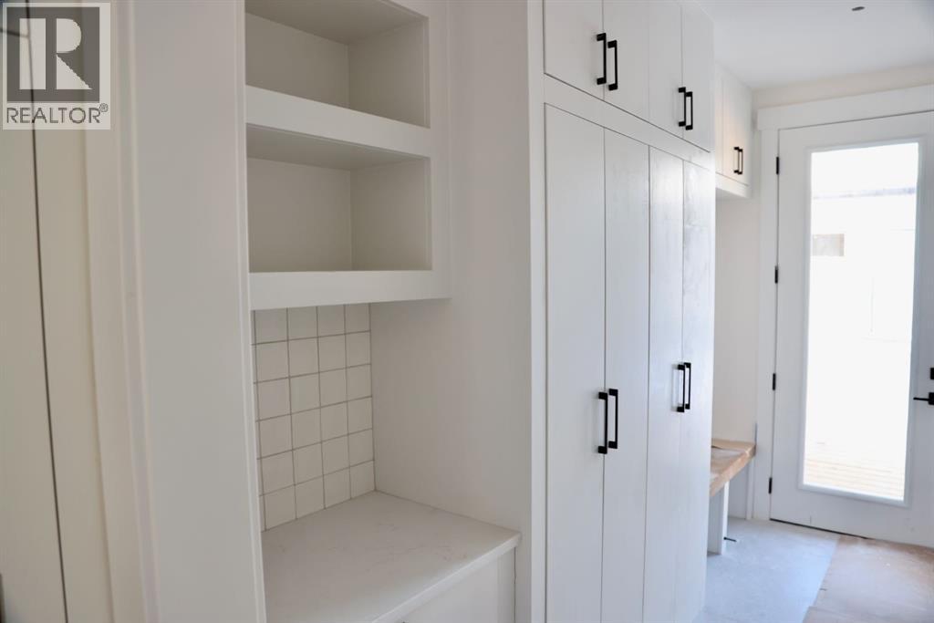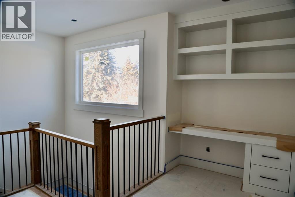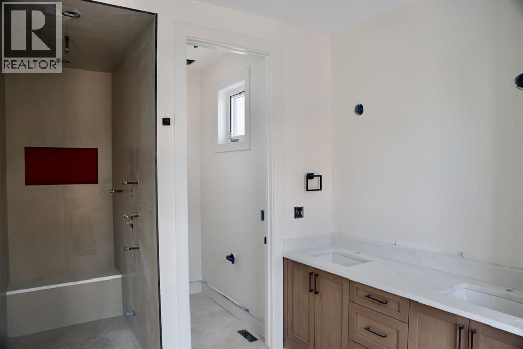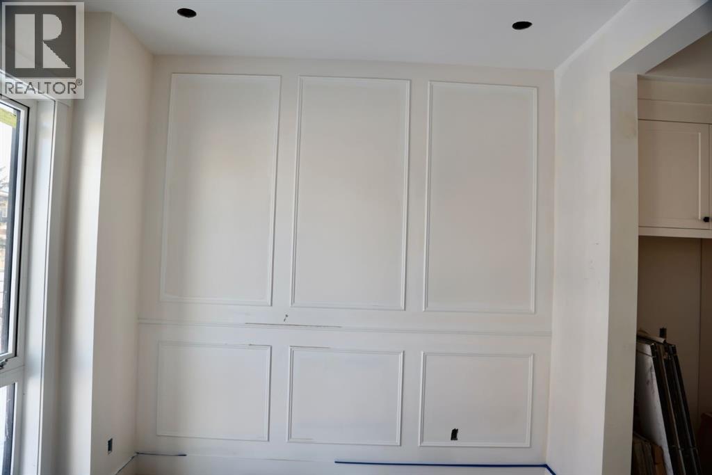 Timeless design, modern comfort, and everyday function come together on a quiet tree-lined street in this brand-new SEMI-DETACHED home in GLENBROOK. With expansive windows, warm natural materials, and elevated finishes throughout, it’s crafted for family living in one of Calgary’s most established neighbourhoods.Step in from the covered entry to a bright foyer with sightlines across the open main floor, where light oak hardwood carries seamlessly through the principal rooms. The front dining room is anchored by a custom feature wall, setting the tone for the thoughtful millwork found throughout. At the heart of the home, the chef-inspired kitchen blends beauty with purpose—two full pantries, crisp white uppers over matching oak lowers, a striking waterfall quartz island, and professional KitchenAid appliances including a flat gas cooktop, built-in wall oven, and French-door fridge. Clean lines, elegant lighting, and generous prep space make this a true culinary hub.The floorplan flows naturally into the inviting living room, where custom built-ins frame a cozy gas fireplace, creating the perfect space to unwind or gather with friends. Large windows and an 8’ sliding patio door pull in west light and open directly to the backyard for easy indoor/outdoor living. A well-designed mudroom with built-ins keeps everyday essentials organized, while an elevated powder room provides privacy and convenience through a hidden door.Upstairs, retreat to the serene primary suite, where vaulted ceilings lift the space and morning sun pours through oversized windows. The ensuite reads like a private spa, offering a massive walk-in shower with body jets, double sinks, a deep free-standing soaker tub, and beautifully curated tile throughout. A custom walk-in closet completes the sanctuary. Two additional bedrooms sit down the hall, each with their own custom cabinetry, and a thoughtfully placed built-in desk creates the perfect homework zone or dedicated home office. A spacious laun dry room with quartz countertop, sink, and extra storage ensures the second floor is as practical as it is comfortable.The lower level flexes effortlessly with family life—an expansive family room with custom built-in TV wall, a generous flex/rec area with a full wet bar, plus an additional bedroom and full bath, ideal for guests, teens, or extended family.Step outside to a sun-soaked west-facing backyard, complete with a large rear deck and BBQ gas line, ready for late summer evenings and weekend gatherings. A double garage and a striking exterior finished in stucco and Hardie-board siding complete this exceptional property.Set in the heart of Glenbrook, this home places you close to schools, parks, playgrounds, shopping, transit, and major routes—offering the perfect blend of community charm & everyday convenience.A refined, functional, and beautifully built home—crafted for real life, designed to be lived in, & ready to enjoy. More photos to follow, as cabinets and flooring have now been installed. (id:54406)