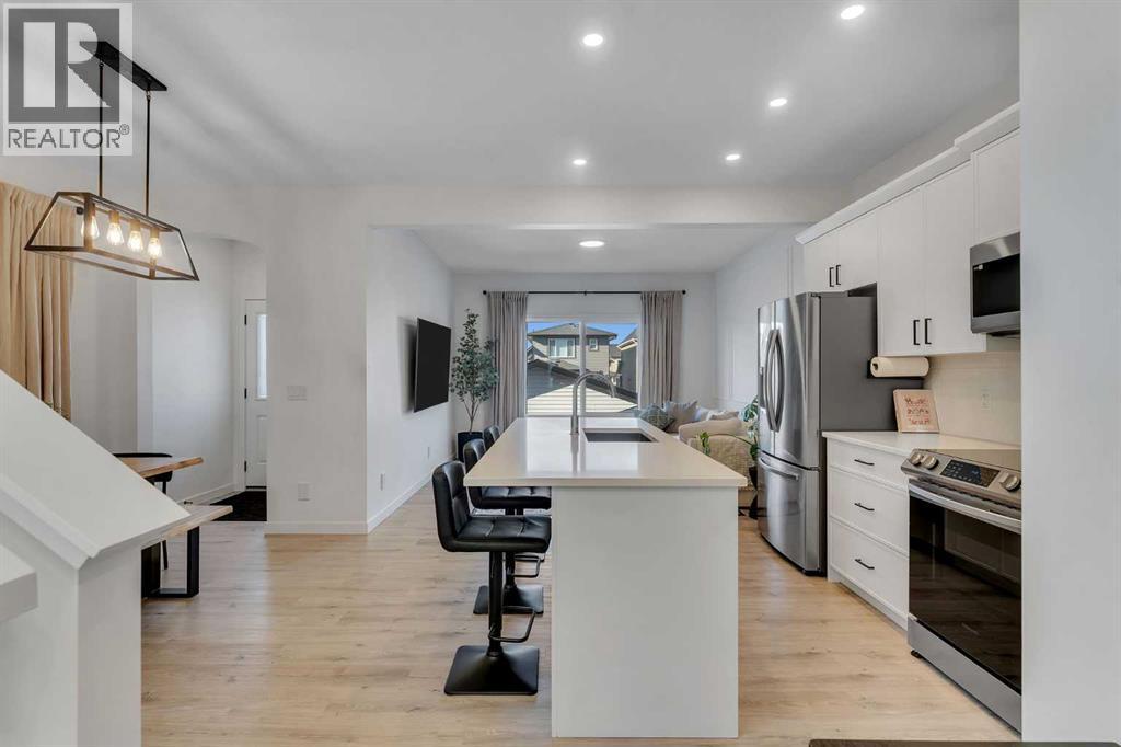 PRIDE OF OWNERSHIP / LOTS OF UPGRADES / PREMIUM SUNSHINE LOT. Located in Lanark, arguably one of the best communities in Airdrie. Compared to other homes, this property gives you everything you need.Additional upgrades include: a DOUBLE detached garage, water softener system (great for your health and appliances), full 24-hour 360° security system, A/C with lifted support, intentional landscaping with a massive patio, gazebo, garden beds, extra-wide concrete reinforced with rebar, an EXPANDED front verandah (porch), and partially METAL roofing. These are the upgrades homeowners typically spend more on after purchasing a home - but here, you don’t have to. This allows you to keep more cash on hand for other priorities.This beautiful farmhouse-style McKee-built home offers a generous 1,550 sq ft and sits on a premium sunshine lot (SUNNY WEST-facing backyard), with basement windows positioned higher above ground to allow an abundance of natural light into the basement.The main floor features a flex room that can be used as a home office - or converted into a main-floor bedroom if desired - 9-foot ceilings, vinyl plank flooring, a private half bath tucked away from the main living areas, and a highly functional living room/kitchen layout. The kitchen is thoughtfully designed with additional drawers, a massive island, white quartz countertops, a pantry, and more.Upstairs, you’ll find a spacious laundry room (not squeezed into a tight closet), generously sized bedrooms, two full bathrooms, and a large walk-in closet in the primary bedroom. Although the basement is unfinished, it offers excellent potential and functionality without the added cost of a finished space.Optimally located close to parks, schools, easy access to 40th Ave, CrossIron Mills, Walmart, and more. Some photos have been edited to show what the home looks like during the summer. Seller's have put a lot of effort into their yard, grass and flowers. Book your showing today with your favorite Real tor®! (id:54406)