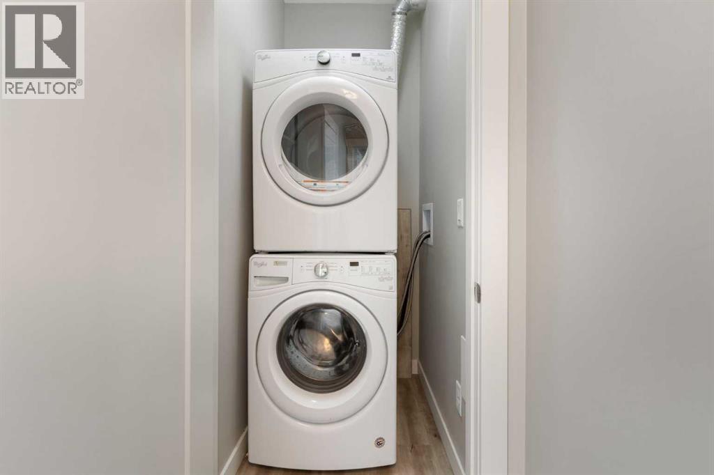 Perched on the top floor with sweeping mountain views, this bright & airy two-bedroom home is the perfect blend of style, comfort, and convenience. Oversized windows and soaring 9-foot ceilings flood the space with natural light, creating an airy, inviting atmosphere that feels instantly like home. The kitchen is a true showstopper—rich maple cabinetry, sleek granite countertops, and a spacious island with seating for three sets the stage for everything from quick morning coffees to lively evenings with friends. Stainless steel appliances keep the look polished and modern, while the open-concept design ensures conversations flow as effortlessly as the layout itself. Both bedrooms are generously sized, with plush carpet underfoot in the sleeping areas and upgraded vinyl plank flooring carrying throughout the main spaces. Everyday ease continues with in-suite laundry, featuring a stackable washer and dryer discreetly tucked away. This unit comes with a window AC unit to keep you cool during the warm summer days. Step outside onto your southwest-facing balcony and exhale—it’s your private retreat with sunshine all afternoon and calming vistas of mountains and green space. Down below, your heated underground parking stall and separate storage unit add peace of mind and year-round comfort. Living here means being part of Walden, a vibrant and growing community where everything is at your doorstep. The plaza across the street offers endless shops and dining experiences. Parks, playgrounds, sports fields, and trails weave through the neighbourhood, while quick access to MacLeod and Stoney Trails makes commuting effortless—and weekend escapes to the Rockies just 45 minutes away. This is more than a condo. It’s a lifestyle, wrapped in mountain views and modern finishes—all with low monthly fees. Don’t wait—this unit is calling your name & it’s ready to welcome you home. (id:54406)