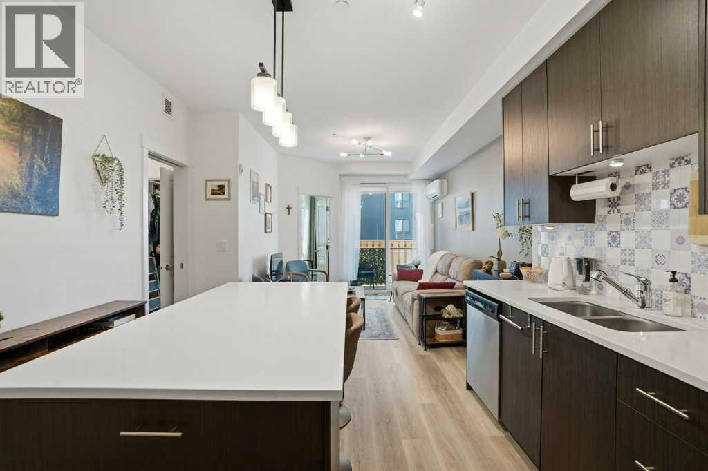 Modern Comfort ; Prime LocationDiscover this stylish and Bright unit in the heart of Sage Hill, designed for both comfort and convenience. The open-concept layout welcomes you with a spacious foyer that flows seamlessly into the kitchen, living area, and a private West facing balcony ideal for entertaining or relaxing at home. Enjoy a bright, neutral color palette, durable vinyl plank flooring, and stainless-steel appliances. This unit features Large west facing windows flooding the living room and bedroom with natural light.The primary bedroom boasts a custom walk-in closet and private access to a four-piece bathroom, while the second bedroom off the entry is perfect for a home office or exercise room Step outside to scenic green spaces and walking/biking paths, bringing nature close to home. Shopping and dining are minutes away at Sage Hill Crossing, with quick access to Beacon Hill Centre and Costco. Commuting is simple with nearby Stoney Trail, connecting you to the entire city.Experience designer style, modern amenities, and upscale finishes , including a huge island , quartz counter tops through out, oversized full height kitchen cabinets , air conditioning, upgraded light fixtures , full size front load washer and dryer and an unbeatable location, this home truly has it all. Added bonus, the parking stall is Titled adding value to your unit. Located in front of the balcony for easy access. Stall number 15. (id:54406)