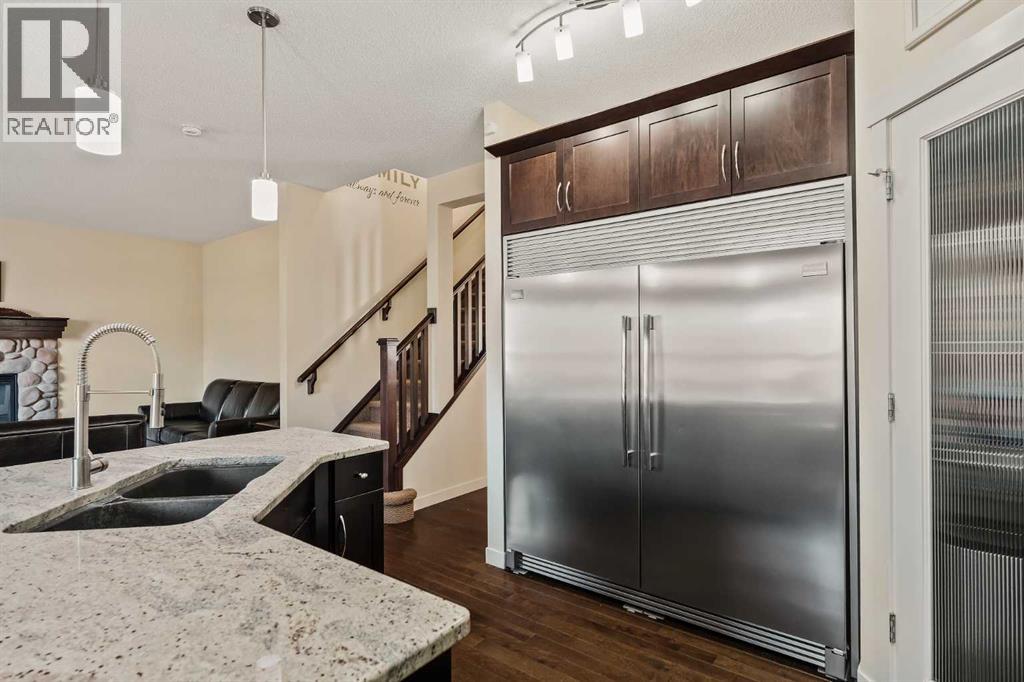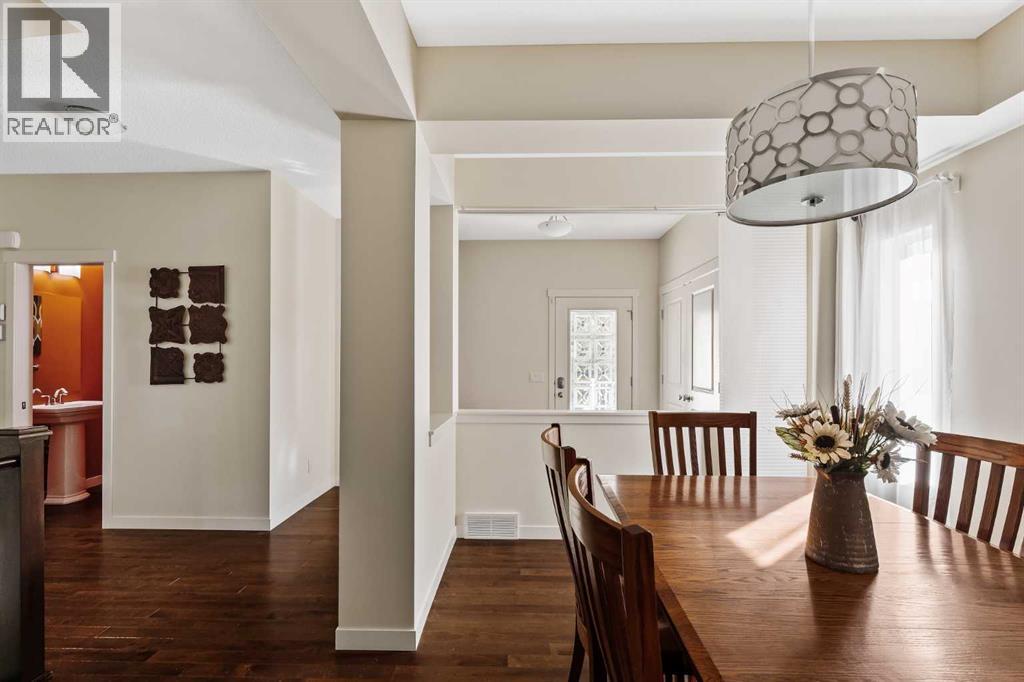 Proudly presenting 42 Drake Landing Drive. Perfectly situated on a peaceful green space, this beautiful family home with 4-bedrooms up offers over 3680 SF of exceptionally well-maintained living space blending thoughtful design, quality upgrades, and everyday comfort. The spacious foyer and lovely dining room with coffered ceiling delivers an impressive introduction to the inviting main floor. Rich maple flooring adds warmth while large windows fill the home with natural light. The kitchen is both stylish and functional featuring maple cabinetry, granite countertops, an expansive island with seating for 4, walk-in pantry, upgraded stainless steel appliances (including an integrated side-by-side refrigerator / freezer, and a stove with upper and lower ovens), and an eating nook overlooking the pretty park-like setting. A charming fireplace, plantation shutters, and year-round views of the green space elevate the ambiance of the relaxed living area. Completing the pristine main floor is a dedicated home office with built-in bookcases, convenient powder room, and a full-size mudroom. The bright upper level boasts 4 spacious bedrooms. The quiet primary suite overlooks the treetops and includes a large walk-in closet and ensuite with deep jetted tub, separate shower, and over-sized vanity. The 3 secondary bedrooms boast excellent storage and large windows with custom shutters while a family bathroom features an extended vanity with double sinks, additional storage, and sought-after 2nd floor laundry - further enhancing these comfortable retreats. Rounding off the upper level is a enjoyable bonus room perfect for spending family time together. The lower level’s open-concept design offers flexible space for a family room, home gym, games area with bar, or a teenage hangout. A 4th bathroom and large utility room complete this 1150 SF of developed space. The home’s charming front porch and low-maintenance landscaping add to the exterior curb appeal while the back deck and y ard offer a tranquil sanctuary for family barbecues, watching the kids at play or simply unwinding while overlooking the green space oasis. Other notable highlights and upgrades of this family gem include 1) TRIPLE Attached Garage with upgraded garage doors and garage door openers (2021), 2) Air Conditioning, 3) Custom Shed with Marine-rated Floors (2023), 4) R50 Insulation, 5) Inground Sprinklers), 6) Worf 1.5” composite board front porch with commercial rated Fortress railing (2023), and 7) New Washer and Dryer (2023). Please see the full list of upgrades and improvements in the supplements. Exceptionally located across from the Drake Landing soccer field, pathways, and playground - and close to schools, shopping, transit, and the off-leash dog park, this special property truly offers it all – an enviable green space location, pride of ownership, and a connection to family. (id:54406)