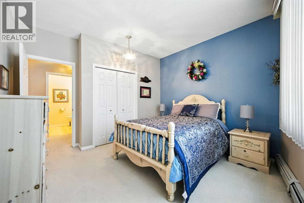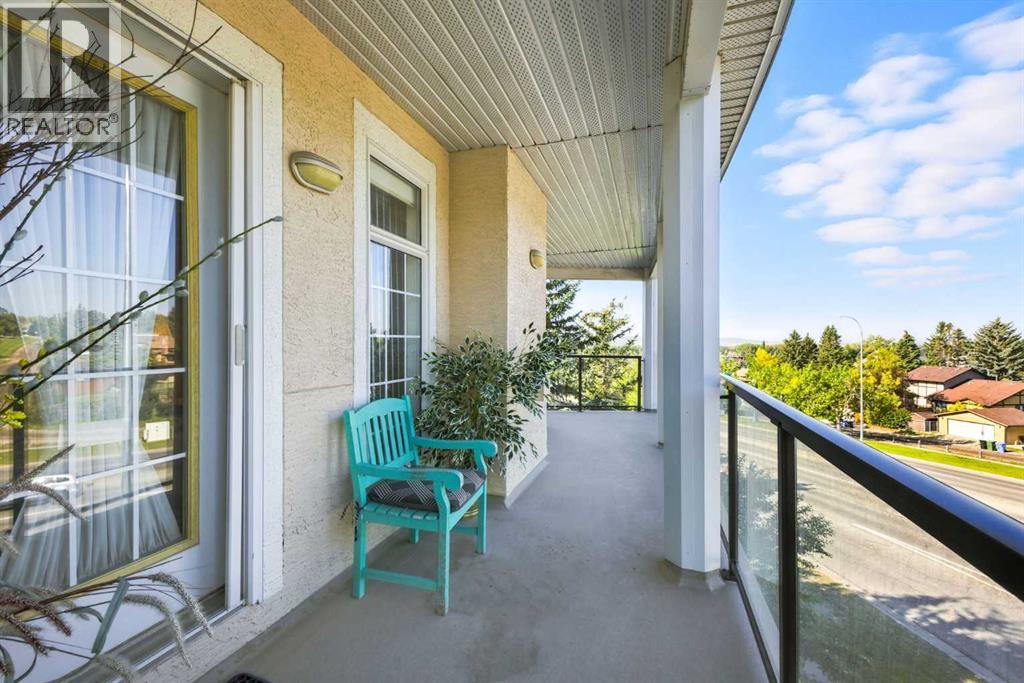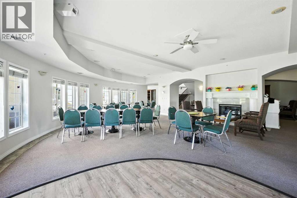 Welcome to this spacious 2-bedroom, 2-bathroom top-floor condo in a desirable 18+ complex, rich with amenities. Offering over 1,200 sq. ft. of bright living space, this home features a generous balcony with sweeping mountain views. Enjoy the comfort of two A/C wall units, a cozy gas fireplace, and an open kitchen with breakfast bar seating. Additional highlights include a new washer and dryer, central vacuum system, and electronic blinds in the living room. The layout is designed for convenience with in-suite laundry and the rare benefit of TWO titled parking stalls.Located near Dalhousie with easy access to shops and transit, the complex offers exceptional amenities including a car wash, fitness room, puzzle room, games room with pool table and shuffleboard, movie theatre, woodworking shop, and a guest suite for visitors. (id:54406)