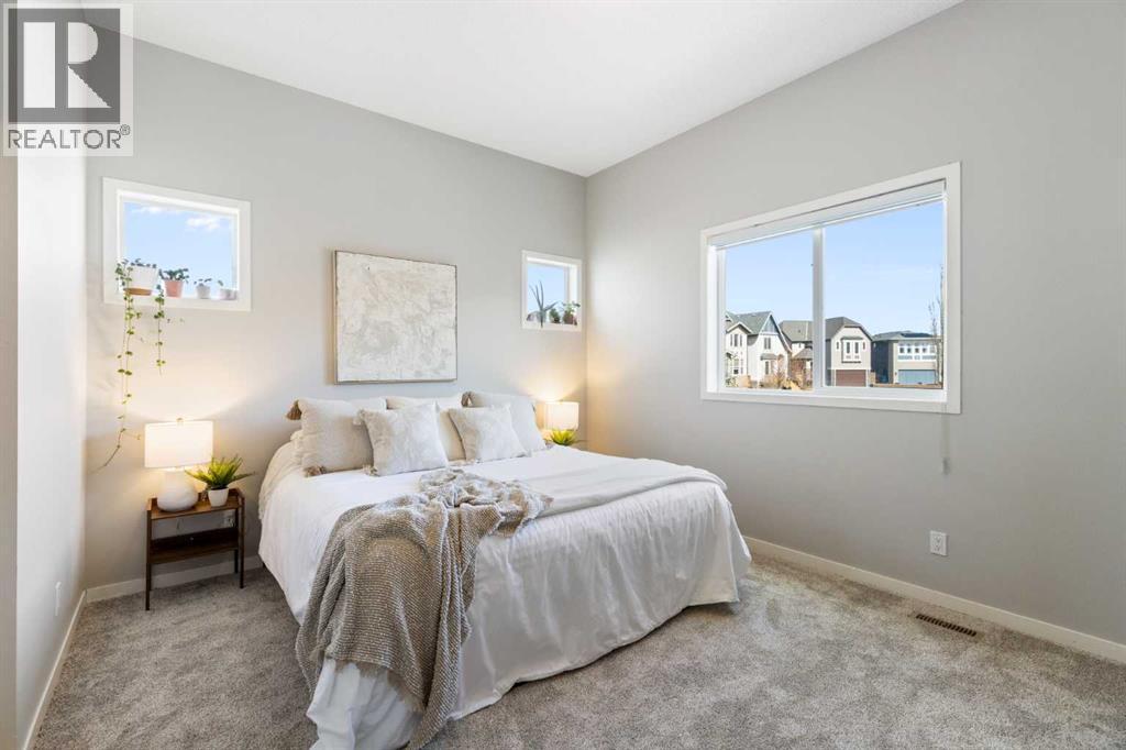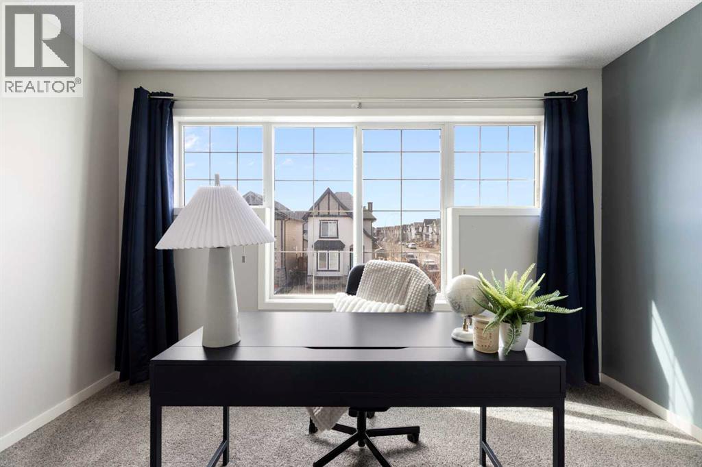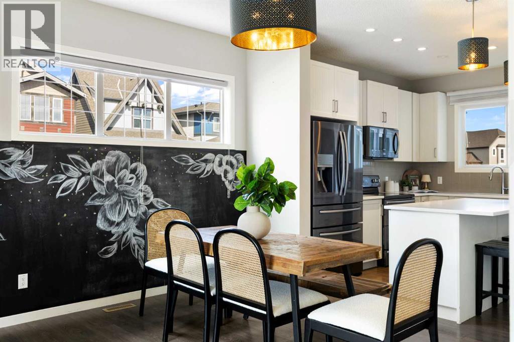 Hello, Gorgeous! Welcome to 44 Marquis Link SE in Mahogany, a thoughtfully designed two-storey home offering over 1,700 sq ft above grade, a rare main-floor primary bedroom, and a functional layout ideal for a variety of buyers. Situated on a corner lot, this property provides added space, natural light, and privacy.The main level features an open-concept layout with a bright living room anchored by a gas fireplace, a well-appointed kitchen with quartz countertops, and a connected dining area designed for everyday living and entertaining. The primary bedroom is conveniently located on the main floor and includes a walk-in closet and ensuite, offering separation and flexibility not commonly found in this price range.Upstairs, you’ll find two additional bedrooms, a full 4-piece bathroom, a central bonus/family room, and upper-level laundry for added convenience. The unfinished basement provides excellent potential for future development.Additional highlights include a newer roof (2022), updated finishes, and a functional floor plan that suits first-time buyers, families, or investors. Located in the award-winning lake community of Mahogany, residents enjoy access to beaches, pathways, parks, and a wide range of amenities. (id:54406)