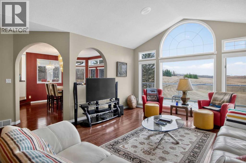 4 BEDROOMS | 3 BATHROOMS | 3-CAR GARAGE | 2 ACRES | MINUTES TO CALGARY | MOUNTAIN VIEWS| OPEN HOUSE ON MAY 2 (1PM - 3PM) - Welcome to this spectacular acreage property at 45 Country Lane Drive — 2 acres of breathtaking country living, just 20 minutes from downtown Calgary. From the moment you arrive, pride of ownership and exceptional craftsmanship are evident throughout. The thoughtfully designed kitchen features an octagonal breakfast nook perfectly positioned to frame stunning mountain views — a daily reminder of why you chose this lifestyle. The classic formal dining room flows seamlessly to a walk-out wrap-around deck, ideal for entertaining or simply soaking in the tranquil surroundings. With 2,175 sq. ft. of RMS living space spread across three levels, this home offers both grandeur and warmth. Three fireplaces — one on each level — create an inviting atmosphere that makes every corner of this home feel like a retreat. The house is fully air-conditioned. The lower level adds even more versatility with 2 full bedrooms , perfect for relaxation or hosting guests.The oversized 3-car garage provides exceptional storage and functionality, while the acreage offers incredible future potential. Whether you're dreaming of space to breathe, room to grow, or the serenity of rural Rocky View County living — this property delivers it all.A rare opportunity to own a truly one-of-a-kind acreage property with the convenience of city proximity. Don't miss it. (id:54406)