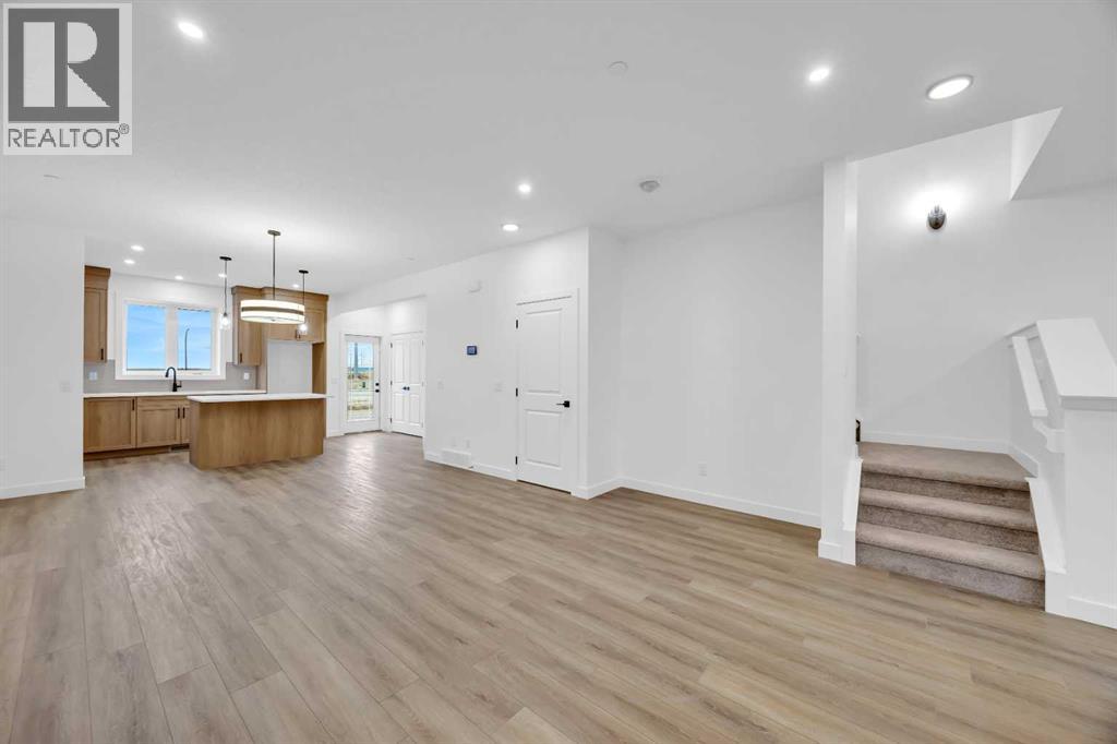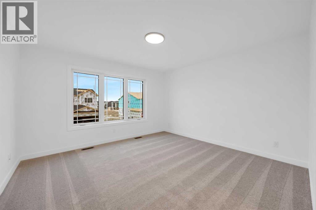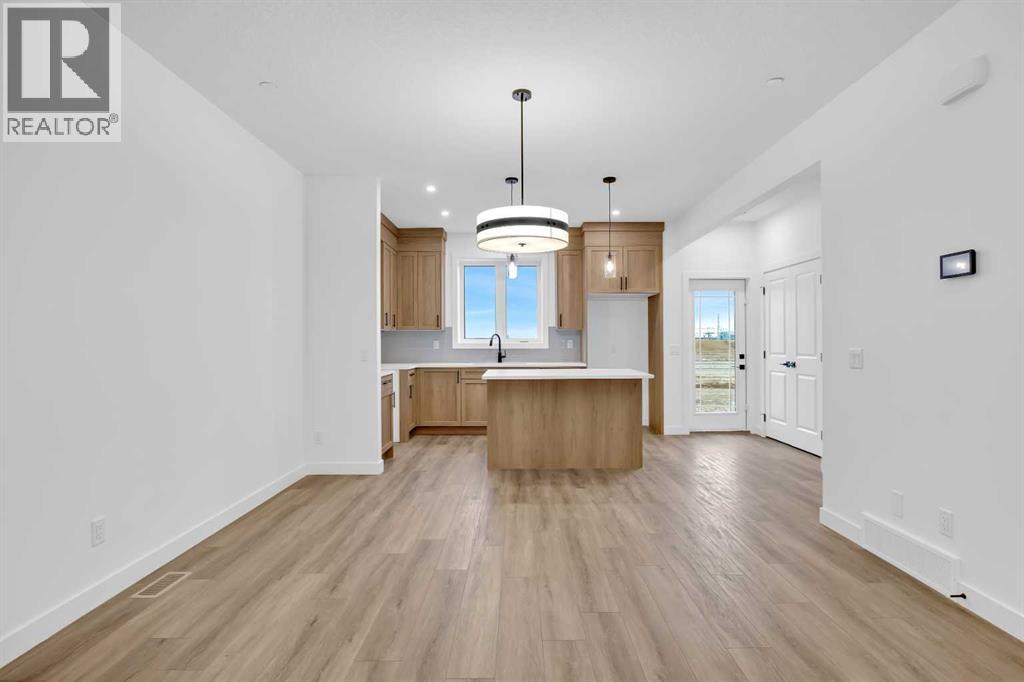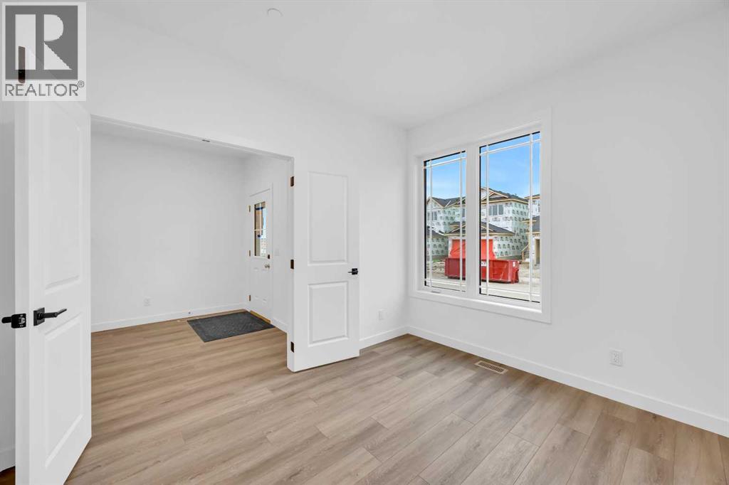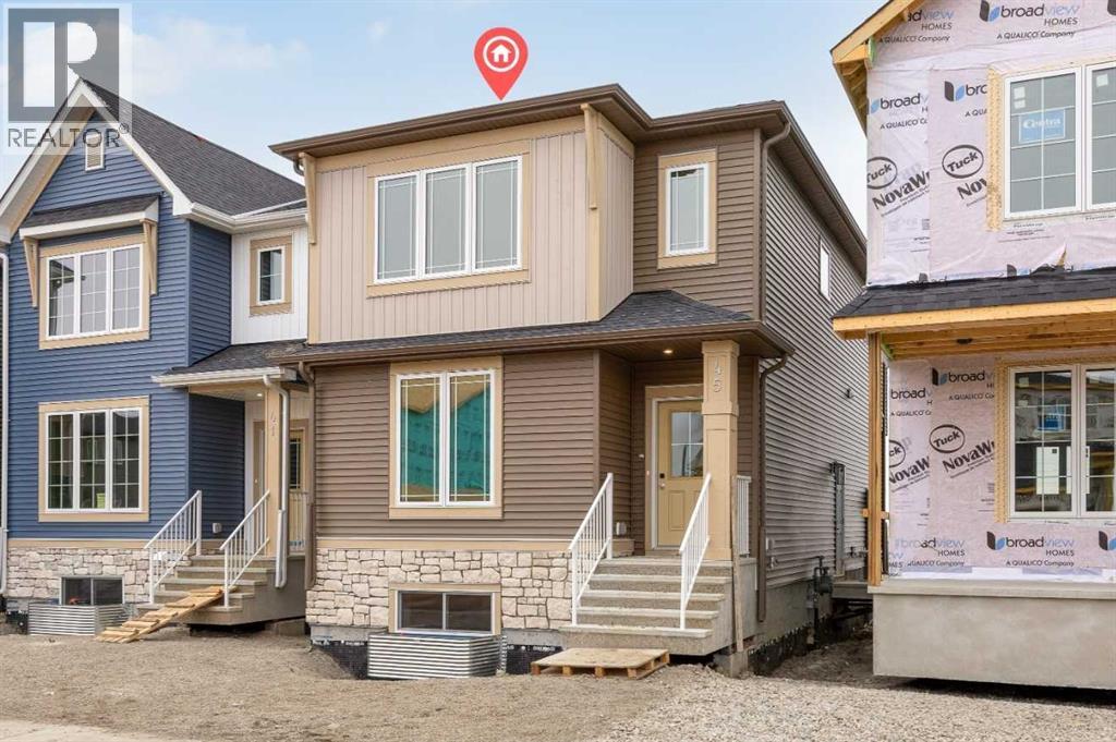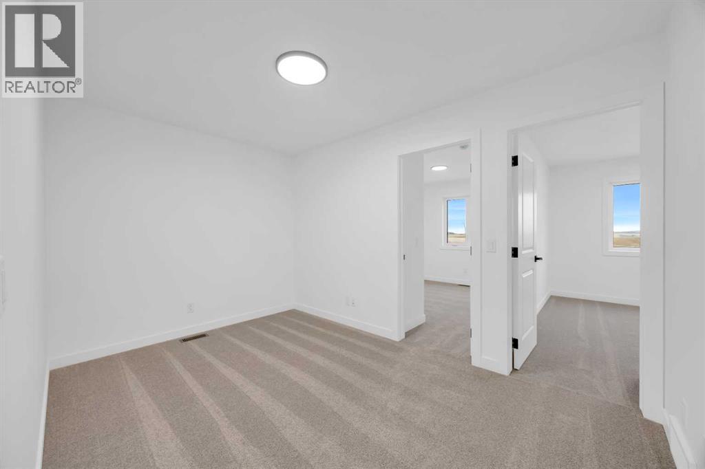 Welcome to the Concord II by Broadview Homes in the growing southeast Calgary community of Hotchkiss. Offering 1,789 square feet above grade, this thoughtfully designed new home features 3 bedrooms, a central upper loft, an enclosed main floor flex room, and a separate side entrance. The main floor is designed for both functionality and flow. At the front of the home, the enclosed flex room provides a private and versatile space ideal for a home office, study, or quiet retreat. The kitchen anchors the open concept living area and features a central island, built-in pantry cabinetry, and a stainless steel appliance package including a gas range, fridge, built-in microwave, and hood fan. The dining area connects seamlessly to the great room, where an electric fireplace with floor to ceiling tile creates a striking focal point. Large windows fill the space with natural light while maintaining an easy connection between the kitchen, dining, and living areas. Upstairs, the centrally located loft offers flexible living space that can function as a media room, lounge, or workspace. The upper floor also includes two additional bedrooms, a full bathroom, convenient upper floor laundry, and added linen storage. The primary suite features a walk-in closet and a well-appointed ensuite, creating a comfortable private retreat. The basement benefits from the separate side entrance, offering excellent potential for expanded living space over time. Full Alberta New Home Warranty coverage is included for added peace of mind. Located in Hotchkiss SE Calgary, residents enjoy scenic pathways, parks, and a planned 30-acre wetland designed to connect the community with nature. With quick access to Stoney Trail and Highway 22X, commuting to Seton, South Health Campus, the YMCA, shopping, restaurants, and everyday amenities is simple. This is an excellent opportunity to own a brand new Broadview home in one of southeast Calgary’s newest master planned communities. (id:54406)