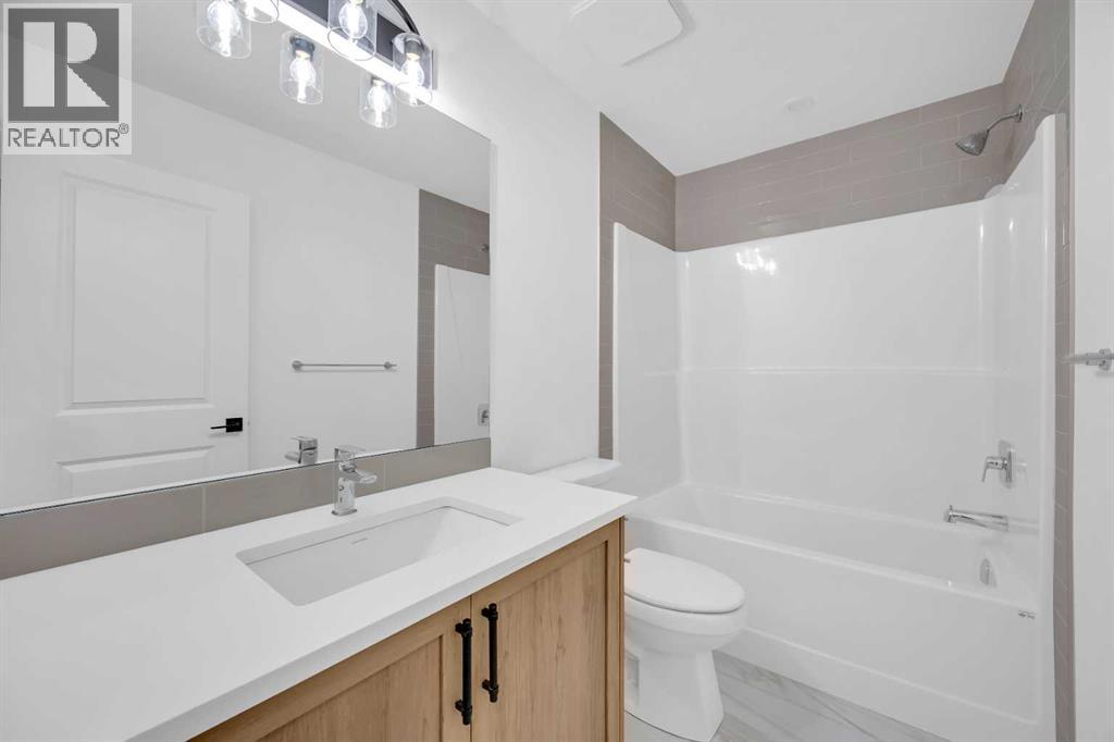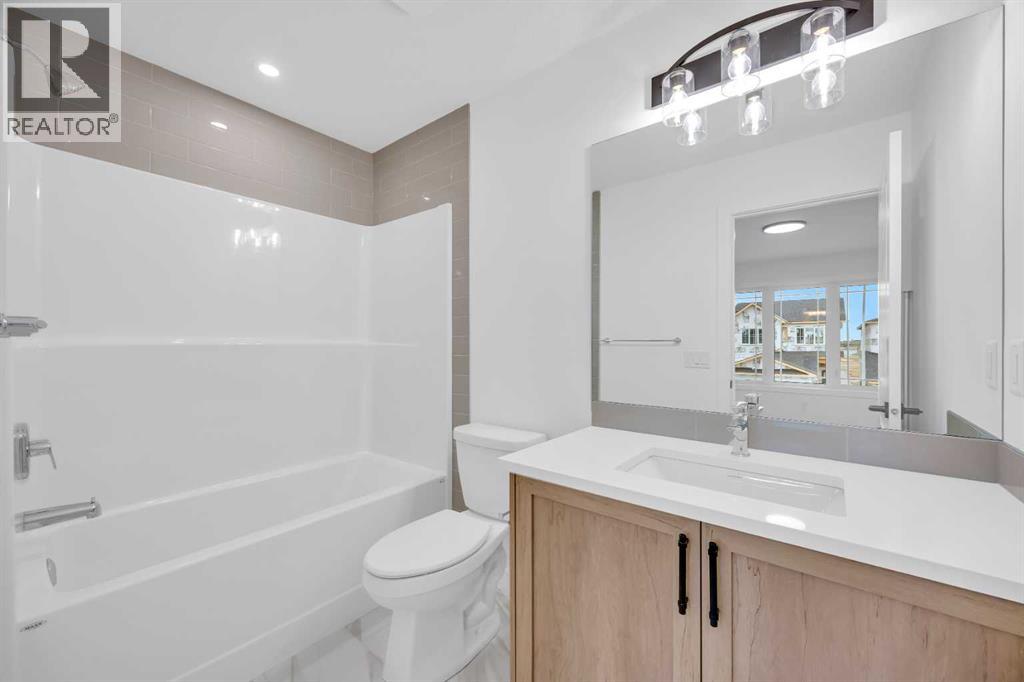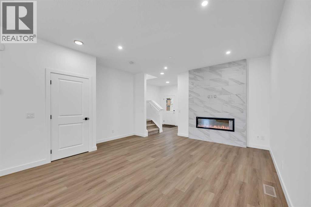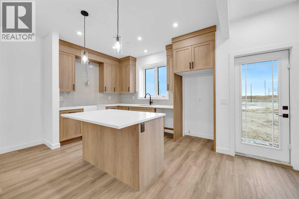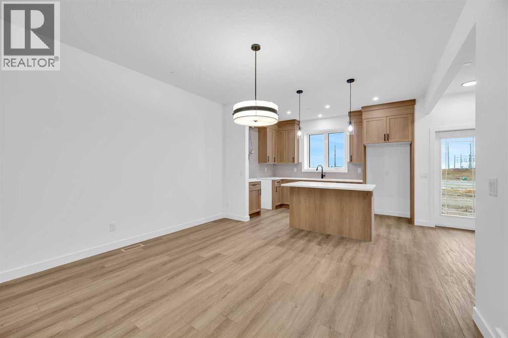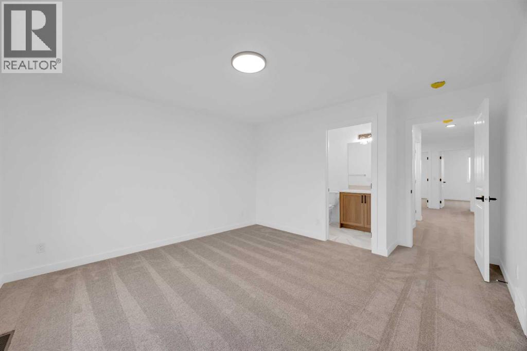 Welcome to the Concord II by Broadview Homes in the growing southeast Calgary community of Hotchkiss. Offering 1,789 square feet above grade, this thoughtfully designed new home features 3 bedrooms, a central upper loft, an enclosed main floor flex room, and a separate side entrance. The main floor is designed for both functionality and flow. At the front of the home, the enclosed flex room provides a private and versatile space ideal for a home office, study, or quiet retreat. The kitchen anchors the open concept living area and features a central island, built-in pantry cabinetry, and a stainless steel appliance package including a gas range, fridge, built-in microwave, and hood fan. The dining area connects seamlessly to the great room, where an electric fireplace with floor to ceiling tile creates a striking focal point. Large windows fill the space with natural light while maintaining an easy connection between the kitchen, dining, and living areas. Upstairs, the centrally located loft offers flexible living space that can function as a media room, lounge, or workspace. The upper floor also includes two additional bedrooms, a full bathroom, convenient upper floor laundry, and added linen storage. The primary suite features a walk-in closet and a well-appointed ensuite, creating a comfortable private retreat. The basement benefits from the separate side entrance, offering excellent potential for expanded living space over time. Full Alberta New Home Warranty coverage is included for added peace of mind. Located in Hotchkiss SE Calgary, residents enjoy scenic pathways, parks, and a planned 30-acre wetland designed to connect the community with nature. With quick access to Stoney Trail and Highway 22X, commuting to Seton, South Health Campus, the YMCA, shopping, restaurants, and everyday amenities is simple. This is an excellent opportunity to own a brand new Broadview home in one of southeast Calgary’s newest master planned communities. (id:54406)