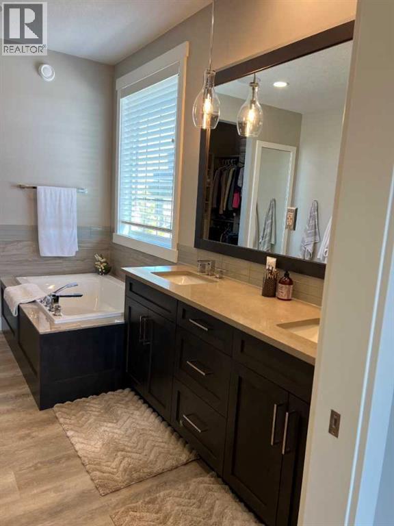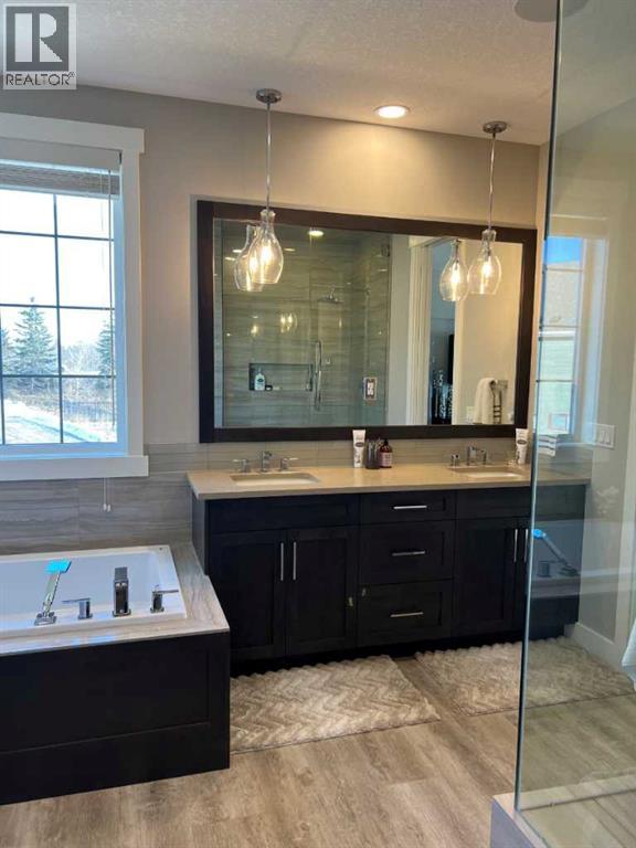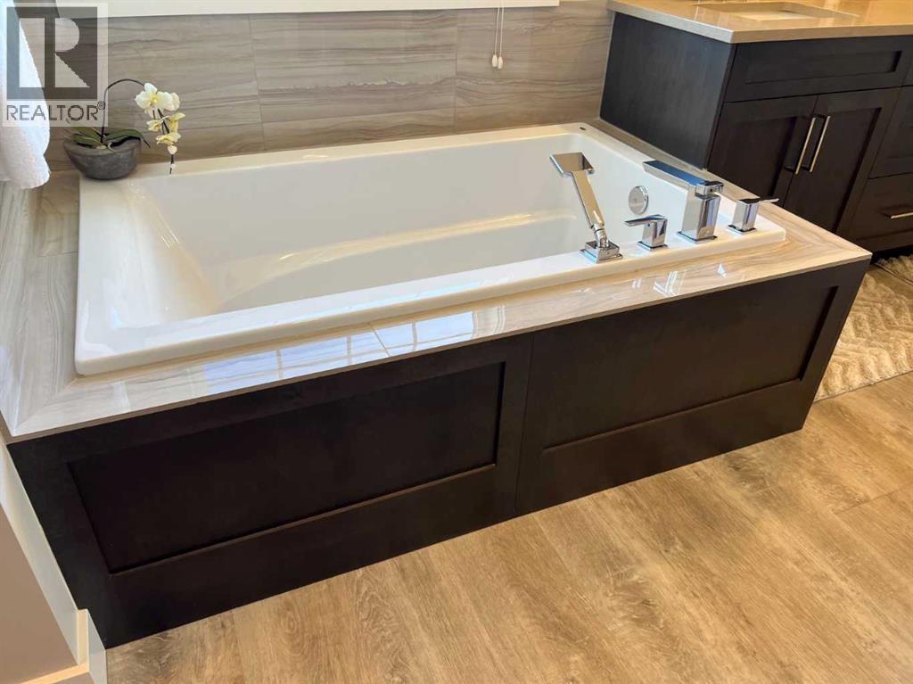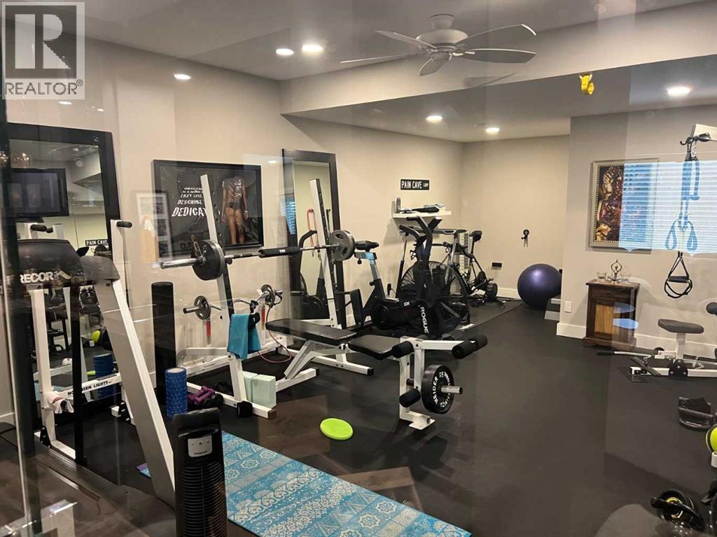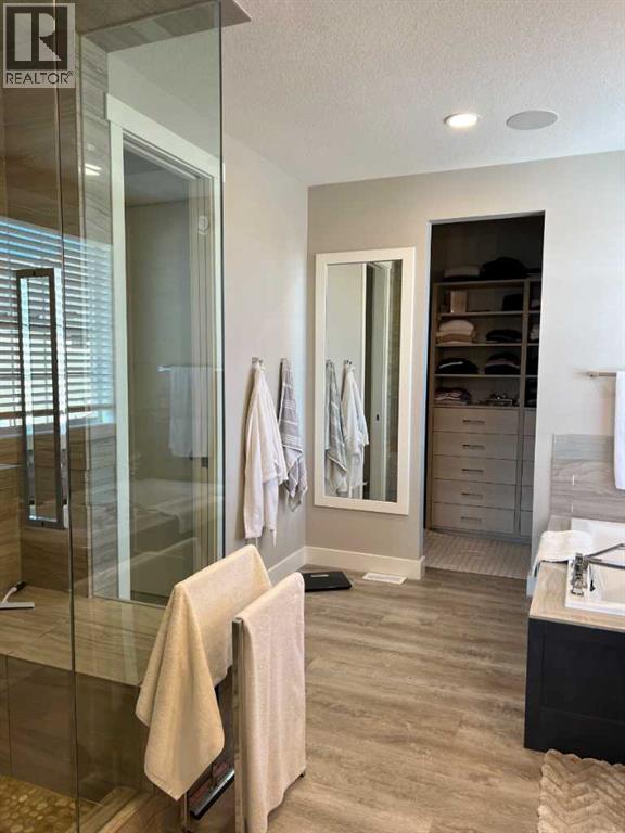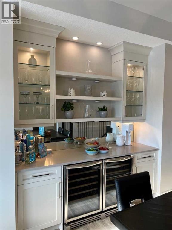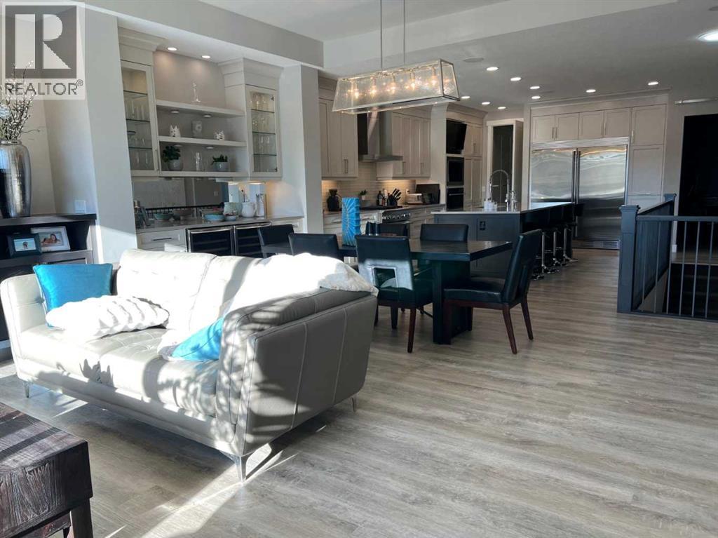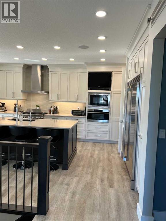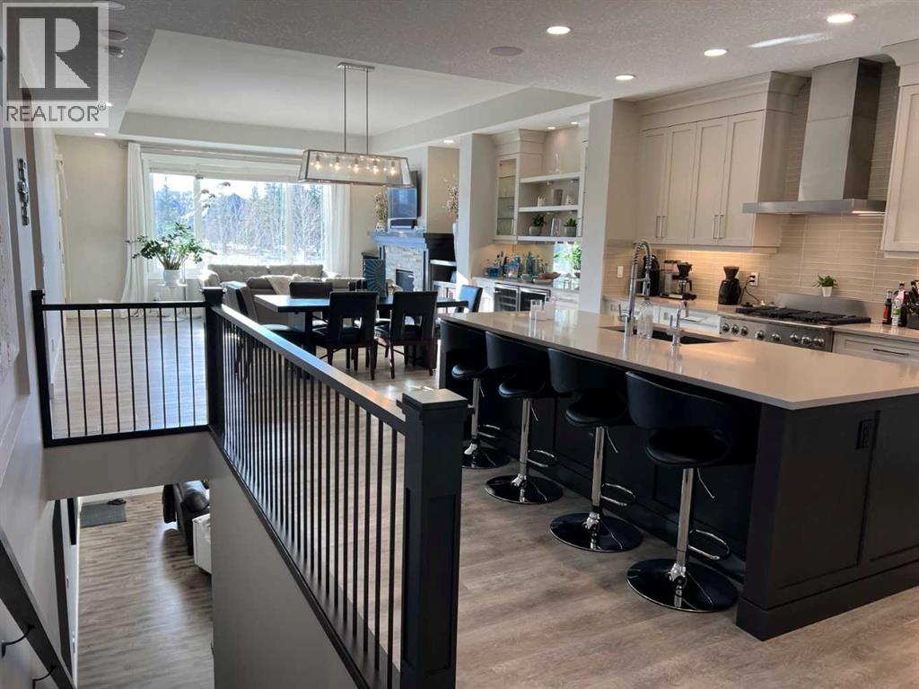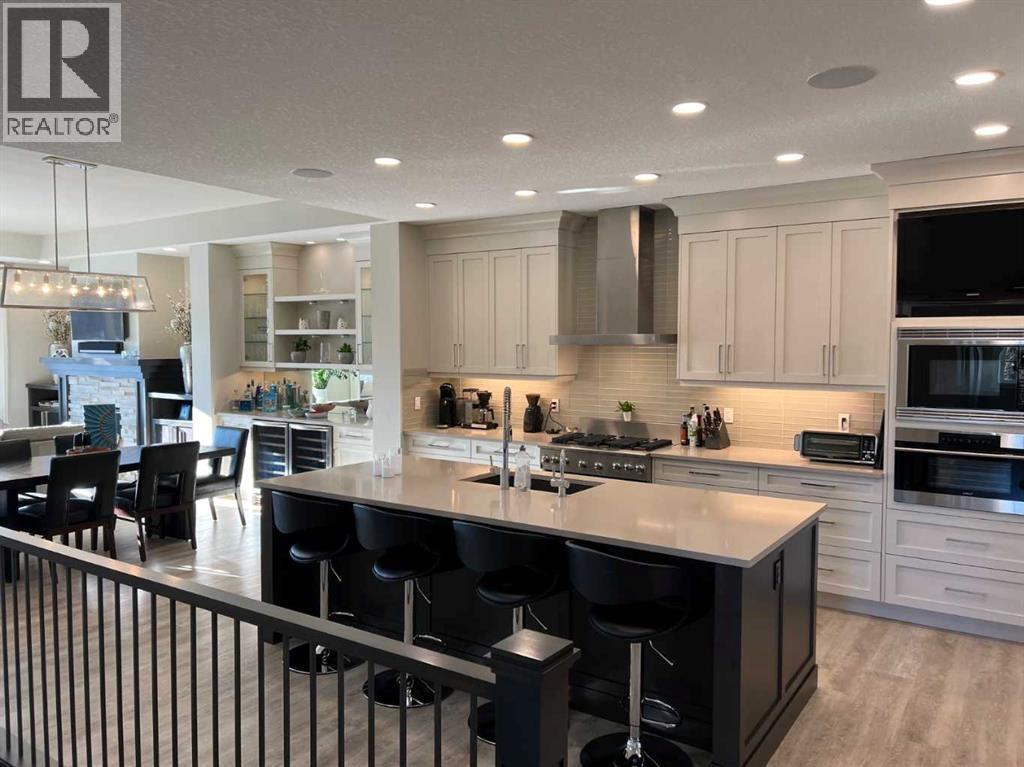 Click Brochure Link for more details. A rare opportunity to own one of the most desirable estate villas in the lock & leave community of Swift Creek Estates, nestled within the beautiful Elbow River Valley. The last comparable (over a year ago) sold in days - and none have come to market since. Built in 2019 and exceptionally lightly lived in, this move-in ready walkout bungalow offers the largest floorplan with almost 3000sqft fully developed, the largest garage, and sits on one of the largest lots (.15 acre) in the community. Positioned on a premium south-facing end lot, the home captures both morning sunrises and evening sunsets, surrounded by the beautiful Elbow Springs golf course and Fisherman’s Lake. $200k in carefully selected upgrades elevate the home well beyond the original builder spec. 10 & 9’ ceilings, upgraded flooring, designer fixtures, extensive custom millwork, and built-in home audio with a multi-zone in ceiling SONOS system create a refined yet extremely comfortable living environment. The kitchen features quartz countertops and an upgraded premium stainless steel appliance pkg with a Wolf steam oven, 36” dual fuel range, full-size fridge and freezer, convection microwave, custom pull-out pantry tower, and extensive full-height cabinetry. The dining area showcases built-in glass cabinetry with dual wine fridges, while the lower level offers a fully appointed wet bar with a custom decorative wine wall, built-in glass cabinetry & beverage fridge — ideal for entertaining. The spa-inspired steam shower is complemented by an RO & remin system with dechlorinated water & softener. The on-demand under sink system provides both hot & cold water and the laundry/mudroom contains sink as well as steam washer & steam dryer. The lower level bedrooms feature custom millwork and both family room & rec room boast fireplaces with custom millwork with mesh-cabinetry and hidden electrical for audio components. Built-in mirrors and art niches throughout. Central A /C as well as full-power screens on the upper deck create a true 3-season outdoor living space. The oversized, heated double garage is a standout feature, complete with hot & cold water, dog wash station, full ProSlat wall system, and commercial-grade shelving & can easily accommodate a lift for car enthusiasts. Professionally landscaped with the addition of 27 trees & 55 shrubs, as well as upgraded wifi smart-watering irrigation, the property offers both privacy & beauty. Security is thoughtfully addressed with home monitoring as well as the on-site manned community security — ideal for a lock-and-leave lifestyle.Enjoy maintenance-free living with landscaping & snow removal, while surrounded by endless pathways, golf, lake access, skating, cross-country skiing, cycling - nature at your doorstep. A dedicated home gym space supports a healthy, active lifestyle.Located just minutes from Aspen Landing, Blush Lane Market, and Westhills Shopping Centre, this is a rare offering in a tightly held community. (id:54406)
