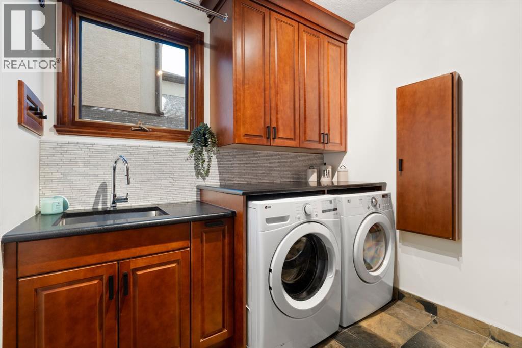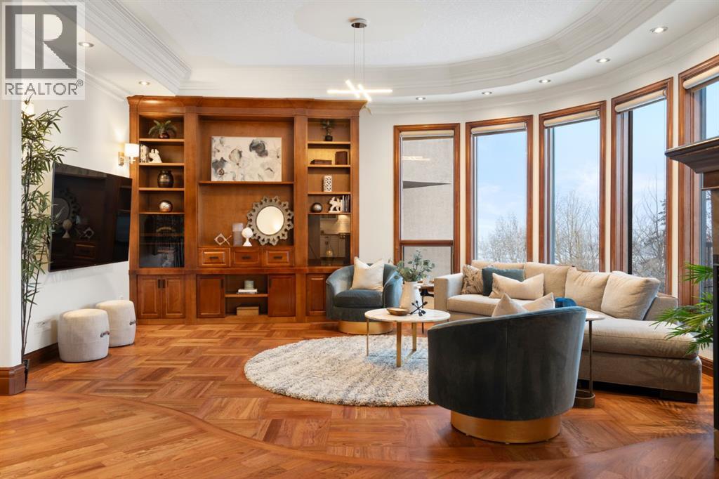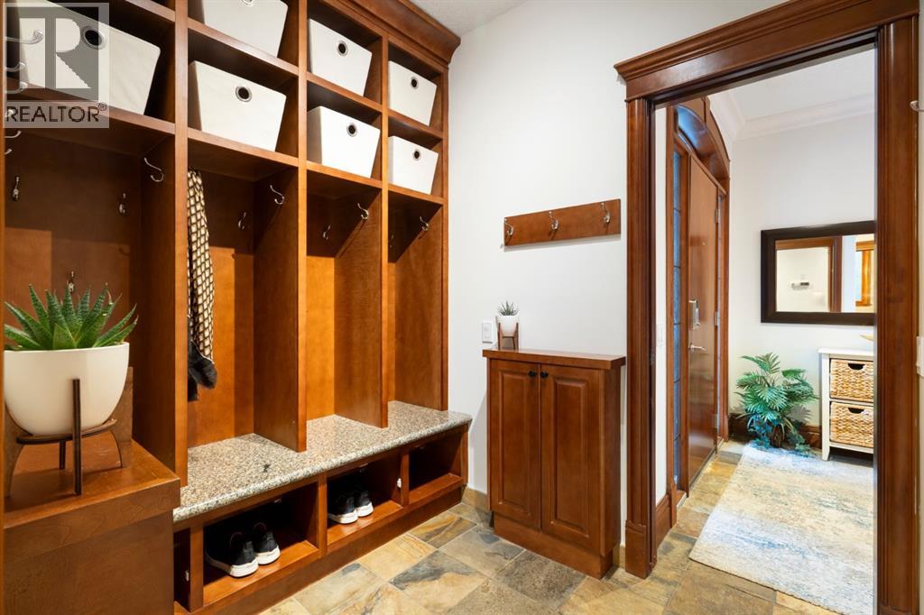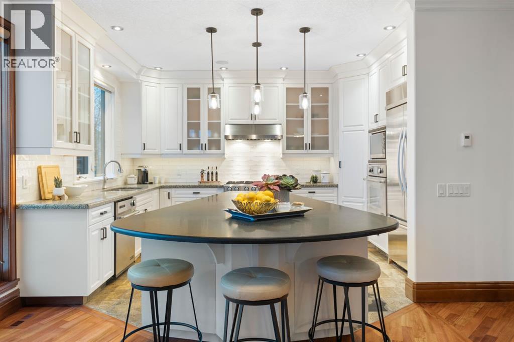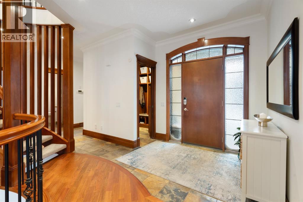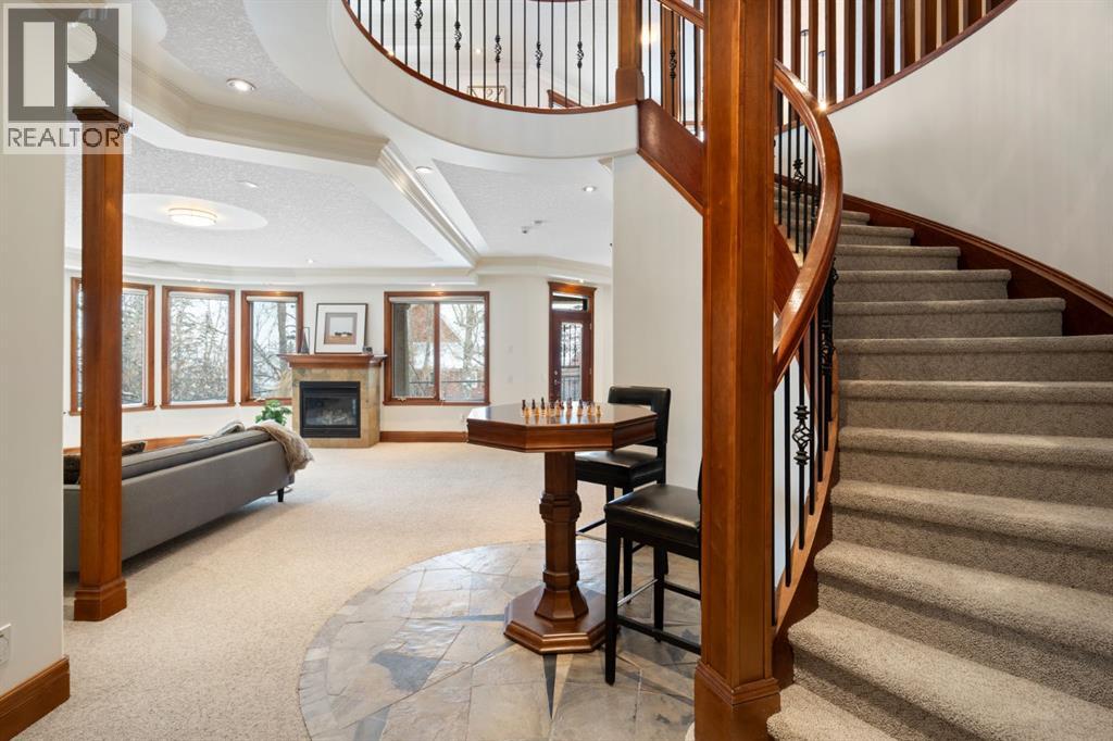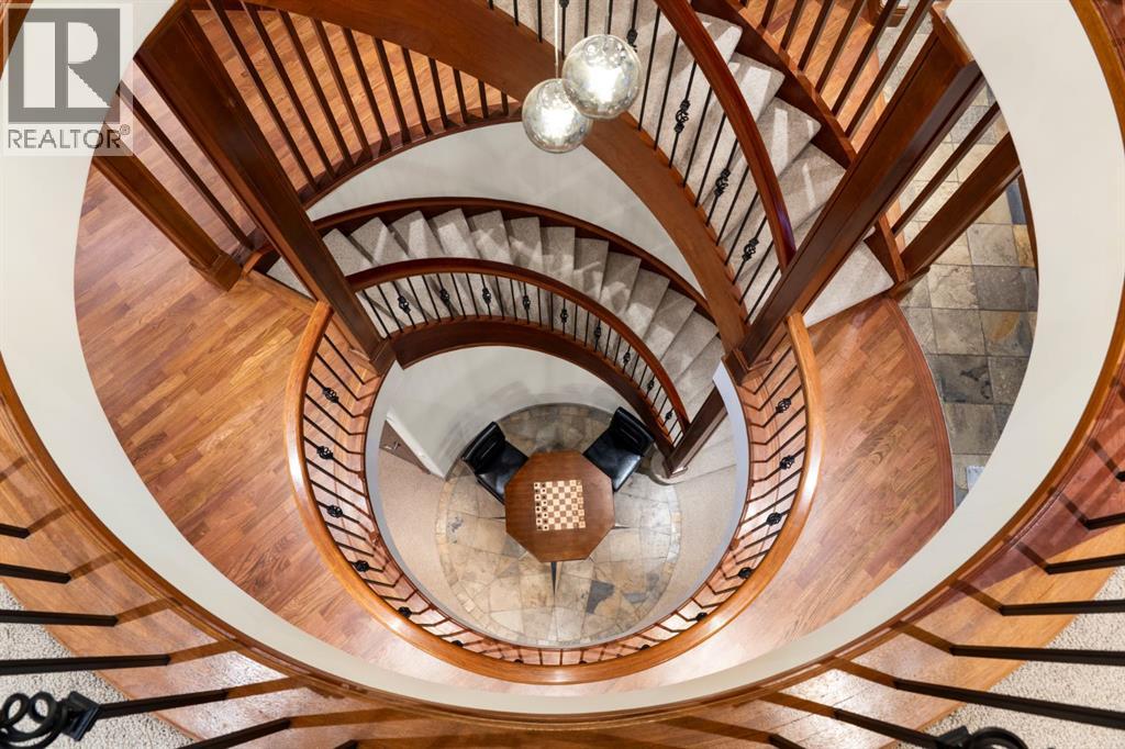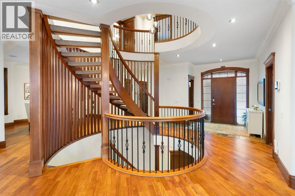 Welcome to this beautifully maintained and thoughtfully upgraded family home in the heart of Cougar Ridge. Tucked away in a quiet location and backing onto a scenic pathway, this property offers privacy, expansive views, and exceptional indoor-outdoor living — all just minutes from downtown Calgary and with easy access to the mountains.Inside, you’ll appreciate the high ceilings, large windows, and modern lighting throughout. At the heart of the home, an expansive spiral staircase serves as a stunning architectural centre piece, elegantly connecting the levels and creating a striking first impression the moment you step inside. The stylish white kitchen, renovated in 2017, is designed for both everyday living and entertaining. It features two-toned quartz countertops, stainless steel appliances, a gas stove, under-cabinet lighting, and a corner pantry for added storage. The main floor features hardwood flooring, a dedicated home office, and a functional walk-through locker-style closet accessible from both the front entry and garage — ideal for busy families. The spacious main floor laundry room includes a sink, cabinetry, and built-in smart storage solutions, including an ironing board.All west-facing windows have been replaced within the last five years, enhancing both efficiency and comfort. Upstairs offers four generously sized bedrooms, including a stunning primary retreat complete with a private balcony showcasing beautiful views. The spa-inspired 5-piece ensuite includes a steam shower, and the large walk-in closet provides ample space. A charming front balcony offers the perfect spot to enjoy summer sunsets.The fully developed basement is an entertainer’s dream, featuring in-floor heating, a custom bar area, and a dedicated wine room. A fifth bedroom with a built-in Murphy bed adds flexibility for guests or extended family.Step outside to your private backyard oasis. The well-groomed yard fills in beautifully during the summer months with mature trees p roviding added privacy. Enjoy the hot tub and a beautifully landscaped, levelled area that creates the perfect setting for a fire pit.The exposed aggregate driveway, concrete curbed flower beds, and oversized 23’ x 26’ garage create impressive curb appeal. The garage includes 240V wiring for EV charging and offers plenty of space for vehicles, storage, and hobbies.Located in the sought-after community of Cougar Ridge, this home offers access to excellent schools, nearby parks, playgrounds, and convenient shopping and amenities. You’re just a short drive to downtown Calgary and have quick access west to the mountains for weekend escapes. With its quiet setting, scenic surroundings, proximity to Calgary French and International School, and family-friendly atmosphere, this home is located in the most exclusive area's within Cougar Ridge .This is a rare opportunity to own a spacious, upgraded home in a prime location that truly offers the best of city living and outdoor lifestyle. (id:54406)
