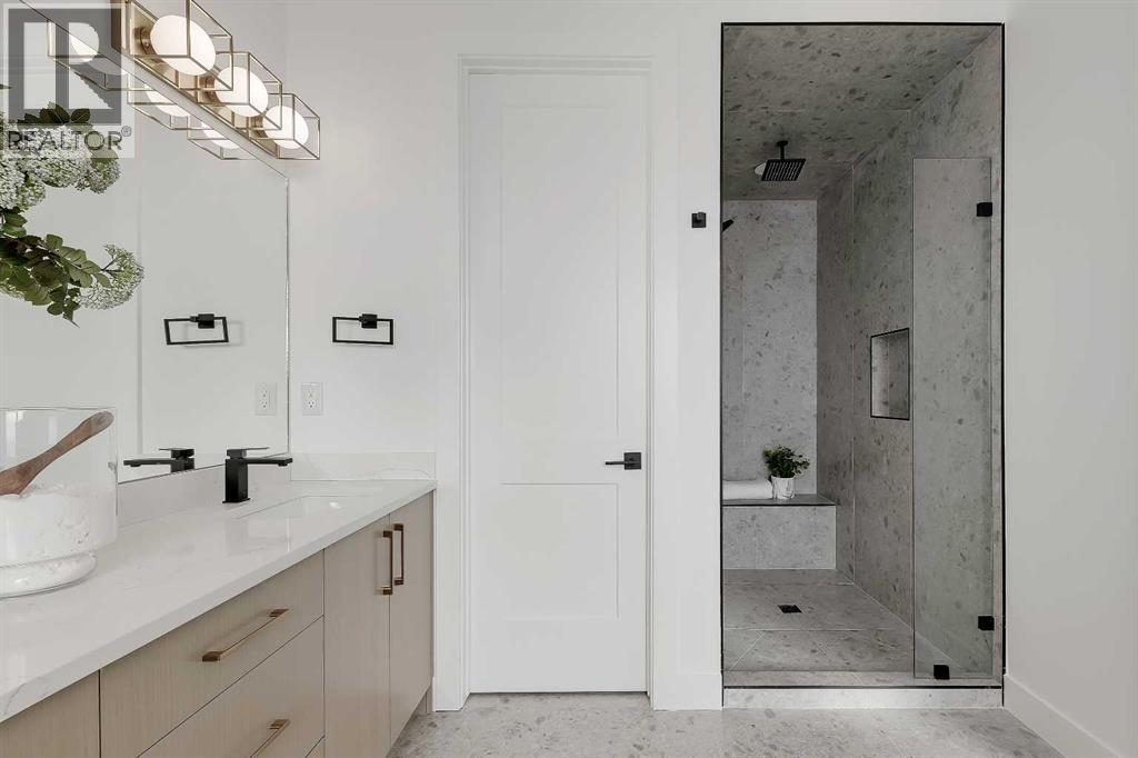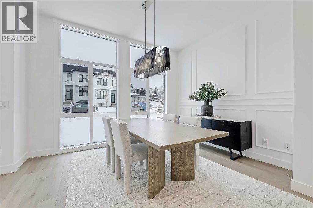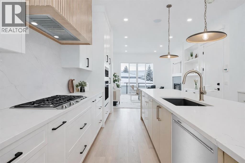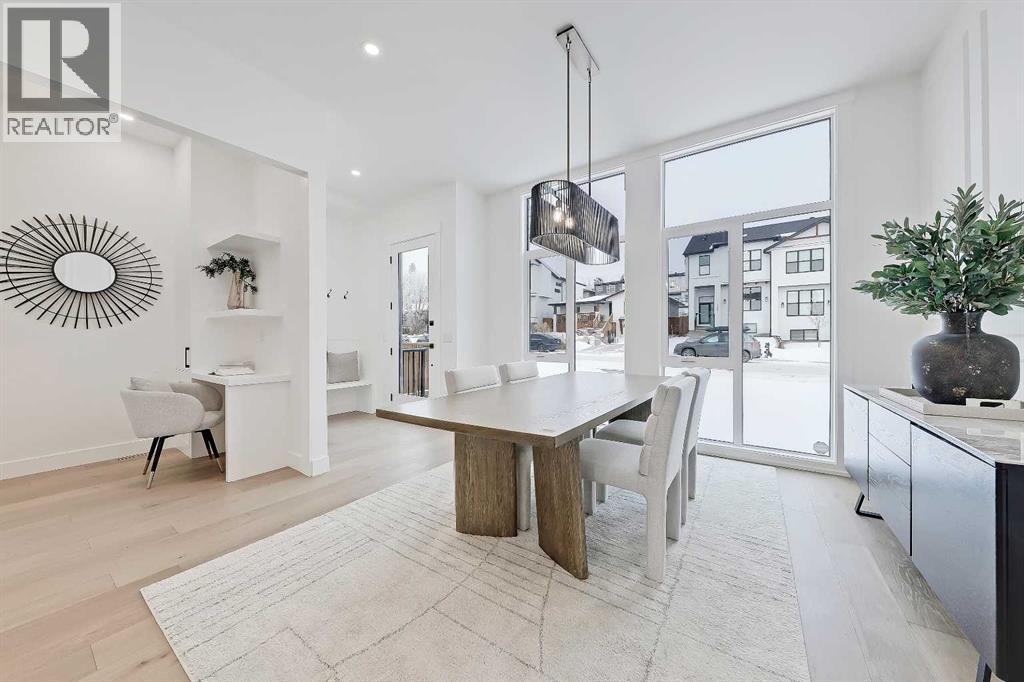 Welcome to a home where contemporary elegance meets everyday comfort in the heart of MONTGOMERY. Situated on a quiet street in this sought-after inner-city community, this stunning new build is designed with both style and function in mind, offering a thoughtfully crafted layout including a WALKOUT BASEMENT w/ COVERED PATIO SPACE, high-end finishes, and incredible natural light throughout. From the moment you step inside, the open-concept main floor makes an immediate impression. You’re greeted by a lovely glass wall in the front foyer, looking into the main floor home office with a built-in desk. The heart of the home is the designer kitchen—a perfect blend of modern aesthetics and practicality. A waterfall island anchors the space, complemented by custom cabinetry, quartz countertops, and top-tier appliances, including a gas cooktop and French door fridge. A built-in pantry offers storage space, while a built-in coffee counter adds more cabinetry and room for small appliances. The front dining area is spacious enough for large gatherings, while the living room is designed for relaxation and entertaining, featuring a sleek gas fireplace and oversized patio doors that open to the upper deck and SOUTHWEST-FACING BACKYARD. A stylish built-in bench and hooks in the mudroom provide everyday convenience, and a chic powder room completes the main level. Upstairs, the primary suite is stylishly finished with a tray ceiling and a spacious walk-in closet with custom built-ins. The generous ensuite is a masterpiece, featuring a freestanding soaker tub, a walk-in shower with a bench, dual vanities, and elegant finishes. Two additional bedrooms each have built-in closets, while a beautifully finished main bath adds even more functionality along with the full laundry room with tile floor and built-in cabinetry. The legal 2-BED LOWER SUITE is a fully independent living space featuring a modern kitchen with full-height cabinetry, quartz countertops, and a stainless steel appliance package. The thoughtful layout includes a bright living room, two spacious bedrooms with built-in closets, a stylish 4-piece bath, dedicated laundry, and a private backyard entrance. The highlight of this space, though, is the full WALKOUT PATIO – the covered space is perfect for enjoying the outdoors year-round, with the additional convenience of a fully private entrance! Located in Montgomery, this home offers an unbeatable lifestyle. Enjoy quick access to the Bow River pathways, Shouldice Park, and Winsport, perfect for outdoor enthusiasts. The community is home to fantastic local restaurants, trendy coffee shops, and boutique shopping while offering easy access to Market Mall, Foothills Hospital, the University of Calgary, and major roadways for a seamless commute. Don’t miss your chance to own this beautifully designed home in one of Calgary’s most desirable neighbourhoods! *Photos from show suite finishes may vary* (id:54406)