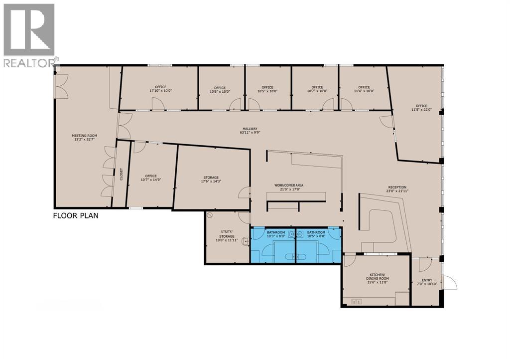 This well kept office/retail building is currently set up as an office space but could be used in a variety of ways - retail space, mini mall, medical doctors/nurse practitioner clinic or for whatever your business needs are. It currently features a large reception/waiting area, 1 large office, 6 smaller offices, large board room, printing area, secure file storage room, kitchenette, mens and ladies washrooms, and a utility room. Located in downtown Claresholm with staff parking in back and angle parking out front. With a gross internal area of 4014 sqft, this property is versatile and has a 30 day possession. Better take a look. (id:54406)