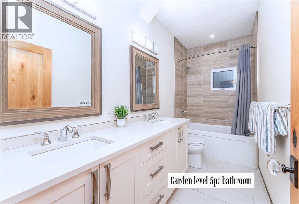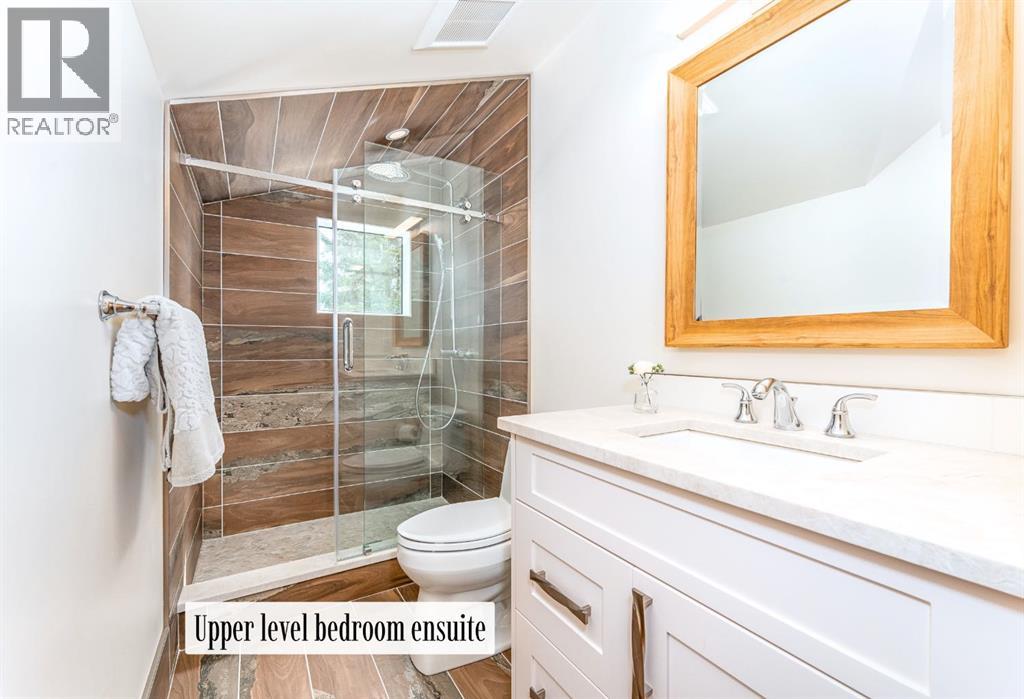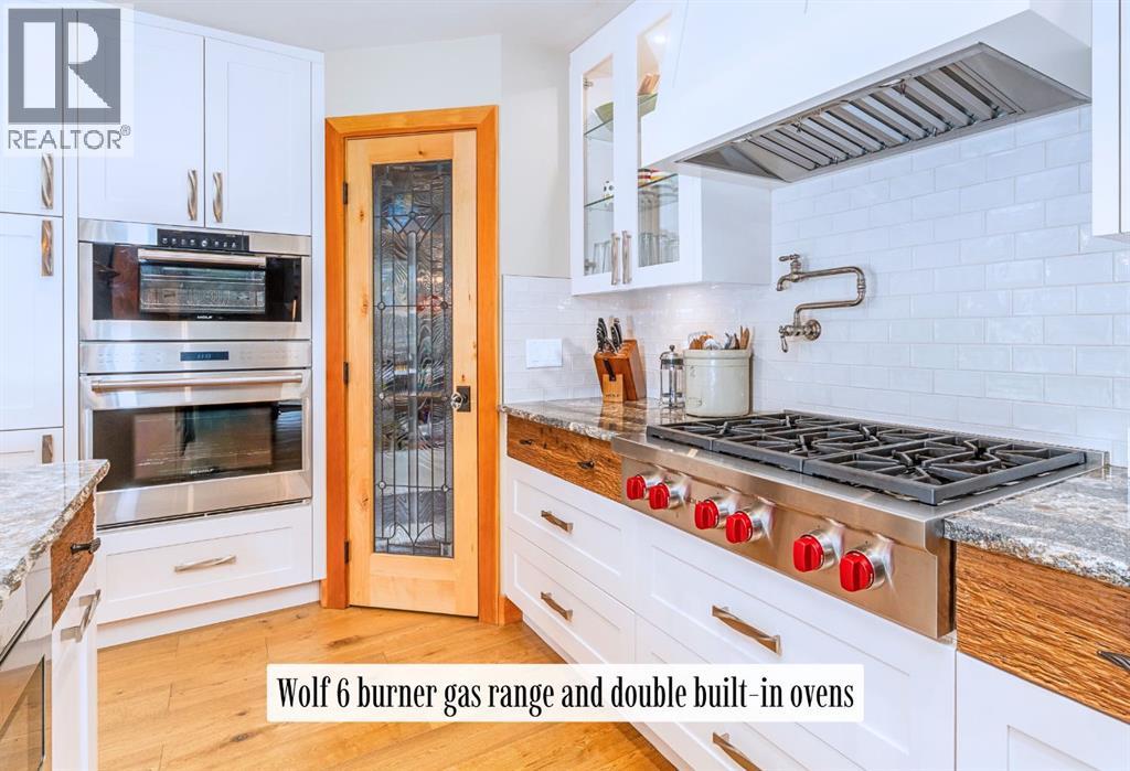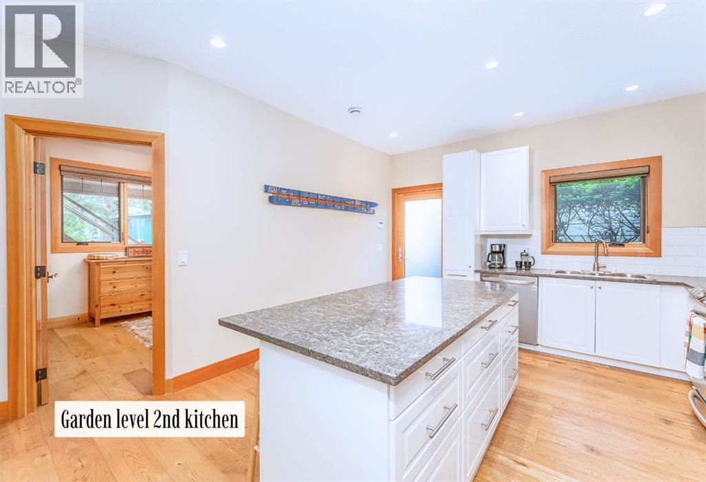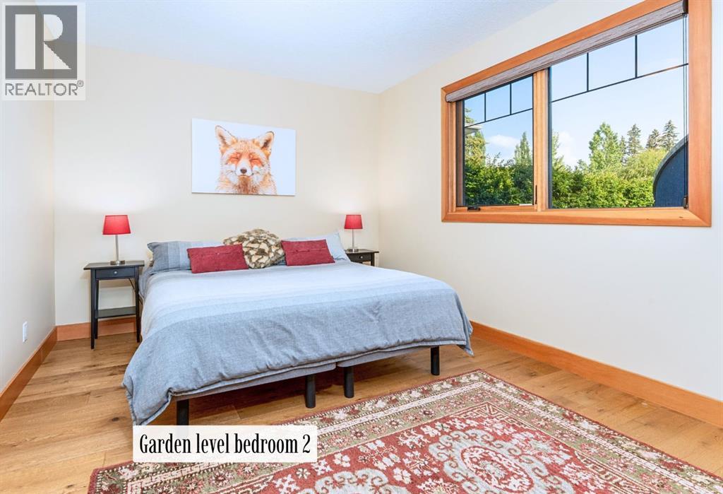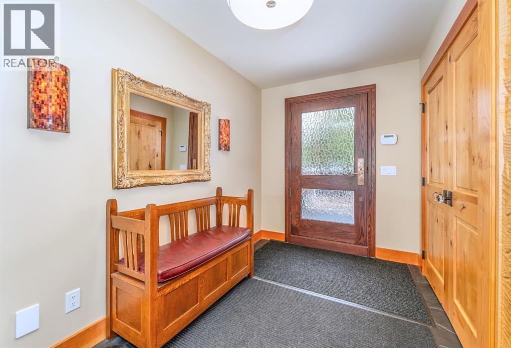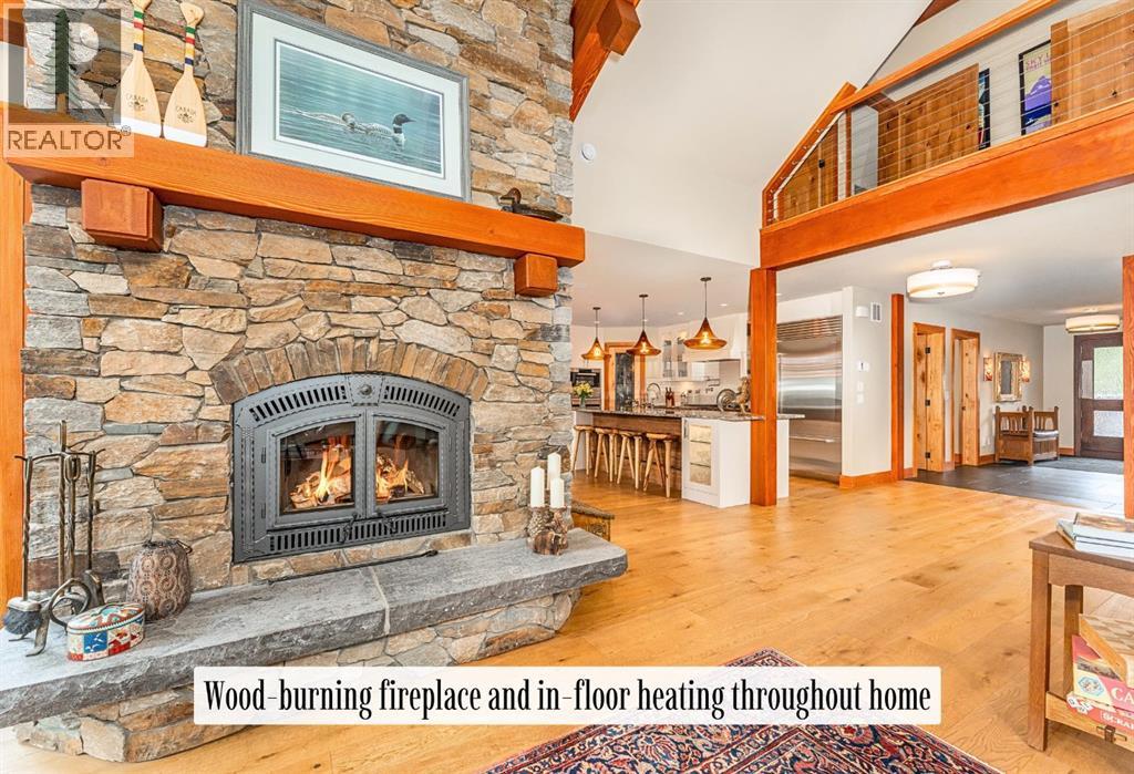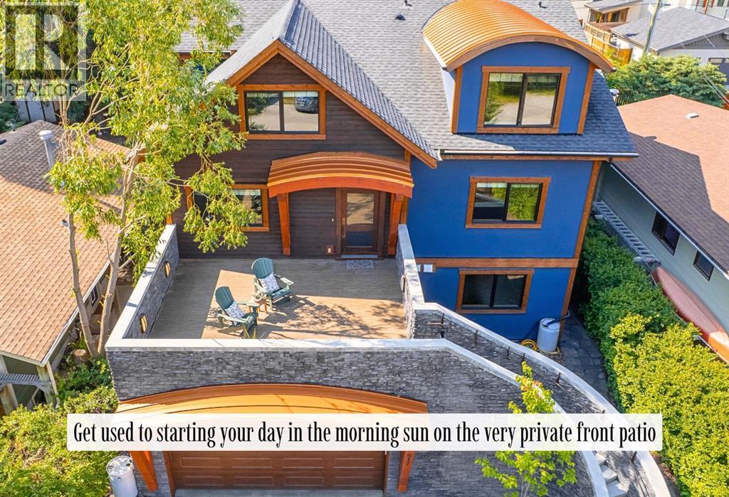 Welcome to an exceptional luxury home in the heart of South Canmore, where mountain living meets refined design in the most coveted neighbourhood in town. Framed by sweeping alpine vistas and set on quiet 4th Street, this remarkable 5-bedroom + office, 5-bathroom residence was thoughtfully designed as a forever home, perfectly balancing timeless architecture and generational functionality.From the moment you arrive, the home’s distinctive curved post-and-beam architecture makes a lasting impression. Graceful arcing rooflines echo the surrounding peaks, while the rich wood detailing creates a sense of warmth and permanence. Every line feels intentional, every space designed to evolve with you and your family through every stage of life.On the main floor, a serene bedroom with a full ensuite offers the ease of one-level living, ideal for guests or future accessibility. A built-in elevator connects every floor effortlessly—perfect for post-surgery recovery, limited mobility, or simply carrying groceries with ease. At the front of the home, a professional office provides a polished and private space to meet with clients, bathed in natural light and framed by peaceful neighbourhood views.The heart of the home unfolds in the breathtaking great room. A dramatic floor-to-ceiling wood-burning fireplace anchors the space, inviting cozy evenings as snow falls softly outside. Vaulted ceilings soar overhead, accentuated by curved timber beams that draw your eye upward—and outward—to the iconic Three Sisters. Walls of glass blur the boundary between indoors and out, filling the room with sunlight and ever-changing mountain moods.Step outside to spectacular outdoor living. The expansive south-facing deck is designed for every season: partially covered for year-round comfort, partially open for sun-soaked afternoons, stargazing nights, and front-row seats to the northern lights. Unobstructed views of Ha Ling Peak rise boldly before you, creating a backdrop that feels both d ramatic and deeply calming.Downstairs, the second living room is bright and welcoming, with high ceilings and a wall of windows looking out over the charming fenced yard where mature and younger trees create layered privacy. Get used to gathering around the firepit under a canopy of stars, or enjoy quiet mornings surrounded by birdsongs. The large front deck captures warm afternoon and evening sun, offering sweeping views across the valley to the Cascade and Lady McDonald ranges—an ever-changing landscape of light, shadow, and alpen glow.The luxury kitchen blends striking aesthetics with intelligent design. High-end (Wolf & Sub Zero) appliances, premium finishes, and thoughtful storage make it as functional as it is beautiful. The partially open-concept layout keeps conversations flowing between the kitchen, generous eating bar, and spacious dining room—perfect for lively gatherings, holiday dinners, or intimate family meals.Adding to the home’s versatility is the option https://youtu.be/ev5eKVHPU5o (id:54406)