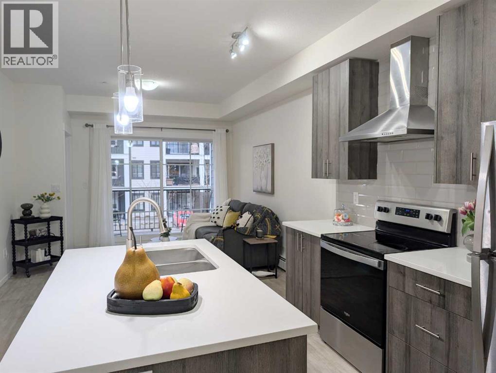 Beautiful 2-BED, 2-BATH condo with TWO TITLED PARKING SPACES in the highly desirable community of Legacy. This unit is situated on the second floor of the Legacy Park II complex, in building 5000. It features an open-concept design in the main living area. The kitchen is equipped with upgraded full-height cabinets, stainless steel appliances, a chimney-style hood fan, and quartz countertops, including on the island. The main living spaces are finished with luxury vinyl plank flooring, while both bedrooms are carpeted. The master bedroom includes a private en-suite bathroom, and the second bedroom has easy access to a full guest bathroom. The unit comes with TWO TITLED PARKING SPOTS: one underground stall and one surface spot with a view of your patio. This condo is in an excellent location, close to schools (All Saints High School), public transit, shopping, and major routes like Macleod Trail, Stoney Trail, and Deerfoot Trail, making it convenient to get anywhere in the city. (id:54406)