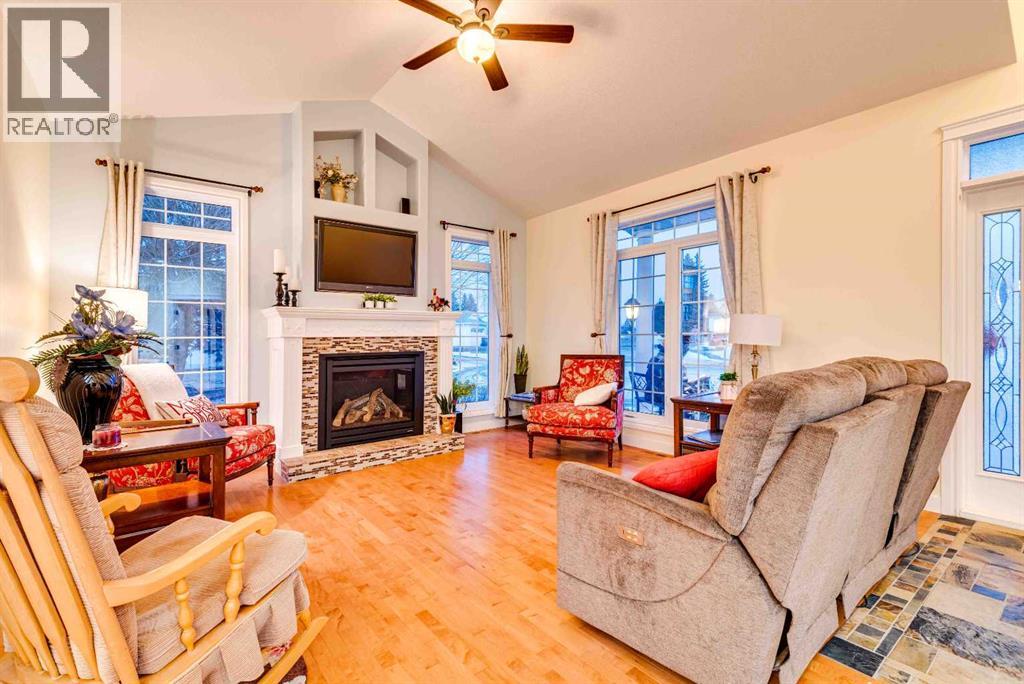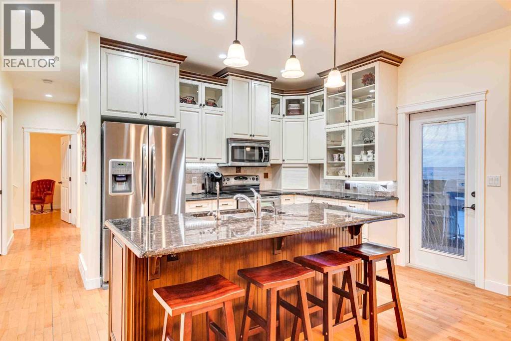 Enjoy amazing country views from this well-appointed bungalow featuring a fully developed basement and a versatile loft space above the attached garage. Thoughtfully designed with comfort and functionality in mind, this home offers an ideal layout for empty nesters or families alike. The main floor welcomes you with a bright living room highlighted by a vaulted ceiling and cozy gas fireplace, flowing seamlessly into a generous dining area with direct access to the sunroom—perfect for enjoying the surrounding views year-round. The kitchen is well equipped with an island, quartz countertops, and ample cabinetry. Retreat to the vaulted primary bedroom, complete with a walk-in closet, 5-piece ensuite, and access to the back deck. Completing the main floor are a second bedroom, a 4-piece bathroom, stairs leading to a versatile loft space above the garage, and a generous laundry area offering convenient access to both the developed basement and the attached double garage. Downstairs, the large developed basement is ideal for entertaining or extended family use, featuring a massive recreation area, kitchenette, 3-piece bathroom, and two bedrooms (one currently used as a storage room and not fully finished). Located in the welcoming Town of Three Hills, residents enjoy excellent amenities including schools, parks, playgrounds, swimming pool, arena, walking trails, hospital, shopping, dining, and a strong sense of community—while still benefiting from the peace and space of small-town living with beautiful prairie views. (id:54406)
