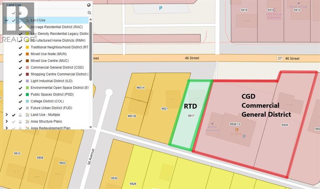 A rare and compelling Highway 27 opportunity in the Town of Olds. This offering comprises four civic addresses across two titles, with three properties consolidated on a single title, creating a unique and flexible commercial assemblage with both immediate income and long-term redevelopment upside.Prominently fronting Olds’ primary east–west commercial corridor, the property benefits from excellent visibility, strong traffic exposure, rear lane access, and a mix of established uses. The commercial components are leased on a triple-net basis, providing stable income with minimal management, while the residential component contributes additional holding revenue. The commercial space includes a Mr. Mike’s Steakhouse location, a nationally recognized Canadian casual-dining.The majority of the site is zoned Commercial General District (CGD), supporting a wide range of highway-oriented commercial, retail, service, and mixed-use opportunities. A portion of the property is zoned Traditional Neighborhood District (RTD) and is directly adjacent to CGD lands, presenting a logical future rezoning opportunity subject to Town approval. This mixed zoning configuration is typical of evolving commercial corridors and offers meaningful flexibility for phased redevelopment.Whether held as an income-producing investment, repositioned over time, or assembled for future redevelopment, this property offers a rare combination of scale, frontage, zoning diversity, and title consolidation in a growing regional market. Opportunities of this nature along Highway 27 are increasingly scarce.An ideal acquisition for investors and developers seeking exposure to Olds’ main commercial corridor with both cash flow today and upside tomorrow. (id:54406)