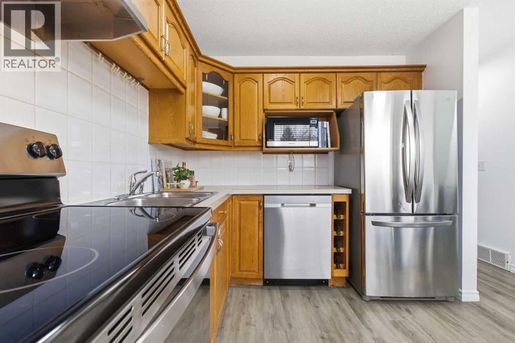 Step into refined comfort and effortless living with this stunning, fully updated townhouse nestled in the established community of Queensland. Boasting over 1,500 SqFt of meticulously developed space, this home offers a seamless blend of modern elegance and everyday functionality. The expansive main floor welcomes you with a large living room that flows smoothly into an inspiring kitchen. Here, you will find beautiful wood cabinetry perfectly complemented by a sleek tiled backsplash and premium stainless steel appliances. Updated luxury vinyl plank flooring, crisp fresh paint, newer windows and modern new lighting run throughout the space, creating a bright and inviting atmosphere that makes entertaining an absolute pleasure. Retreat to the upper level to discover a generously sized master bedroom featuring elegant mirrored wardrobes that amplify the room's natural light. Two additional spacious bedrooms provide plenty of room for family, guests, or a creative studio. A beautifully renovated family bathroom completes the upper floor, offering a tranquil space to start and end your day. The fully finished basement elevates your lifestyle even further. An expansive open family room comes fully wired for sound, making it the ultimate setting for movie nights or hosting friends. This lower level also provides ample room to design your ideal home gym or private office to suit your daily needs. The designated laundry area includes brand-new appliances to make household chores a breeze. Outside, you benefit from a convenient parking spot right at your doorstep, along with abundant guest parking for your visitors. Step into your own private oasis with a lovely backyard featuring a lush grassy lawn and a welcoming patio—perfect for relaxing, entertaining, or enjoying a peaceful morning coffee. The location truly sets this property apart and caters to a vibrant lifestyle. Enjoy fantastic shopping and exceptional eateries just moments away at Deer Valley Market Place. When yo u crave the outdoors, take a short stroll to immerse yourself in the lush natural beauty of Fish Creek Park. Commuting across the city is completely effortless with quick access to Bow Trail, Deerfoot Trail, and the Canyon Meadows LRT. (id:54406)