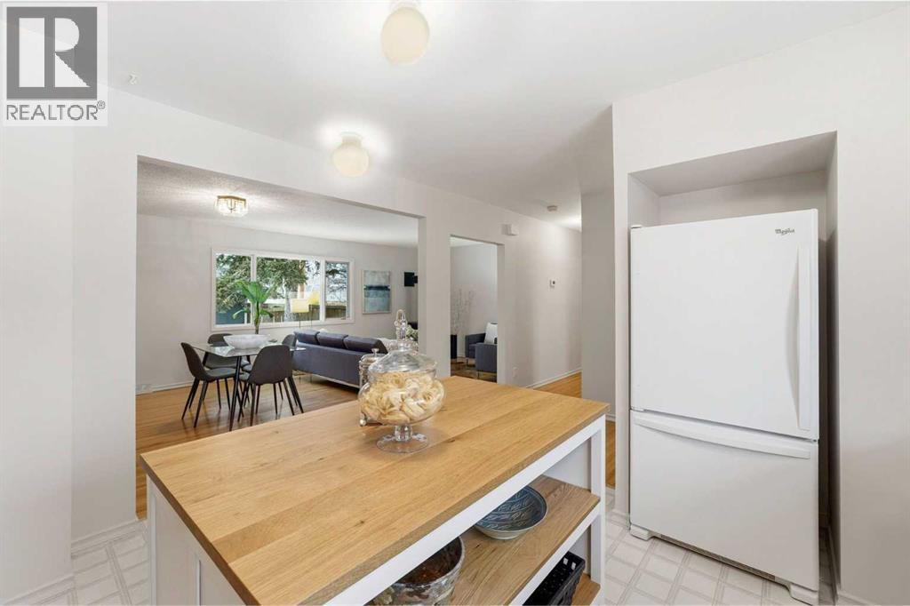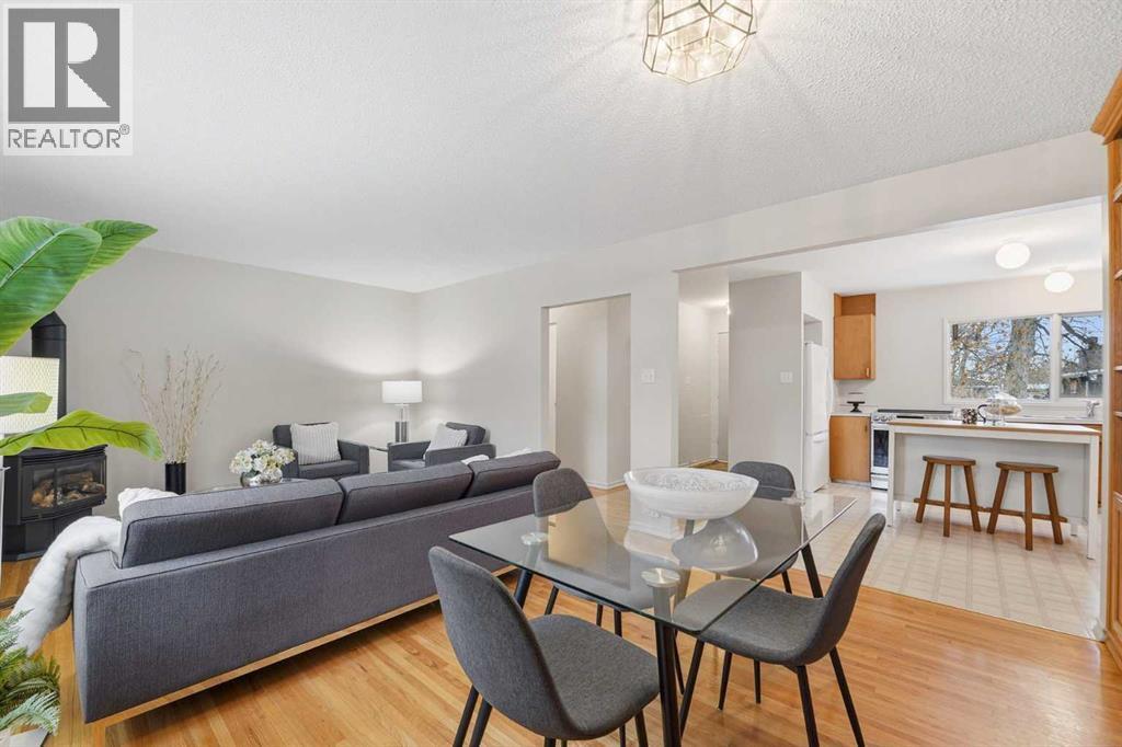 Mid-century charm meets modern comfort in this beautifully maintained home, thoughtfully updated for today’s family while preserving its original character. A gorgeous lot framed by mature trees creates a private, established setting in one of Calgary’s most desirable southwest locations. Inside, an opened wall between the kitchen, living and dining areas establishes a seamless open-concept layout that supports both daily living and entertaining. Original mahogany cabinetry brings warmth and authenticity to the kitchen, complemented by a stainless steel stove and a centre island with breakfast bar seating for casual meals and connection. A full wall of built-ins anchors the dining space, offering an ideal backdrop for a home bar, curated collections or personal décor. Hardwood flooring extends through the living and dining rooms, while an oversized window draws in abundant natural light throughout the day. Evenings invite relaxation around the freestanding gas fireplace, delivering cozy ambiance. 2 main-level bedrooms continue the hardwood flooring and provide comfortable, flexible sleeping or office space, supported by a 4-piece bathroom. Downstairs, the lower level has been updated with durable LVP flooring and a soft neutral palette for easy long-term living. A spacious recreation room encourages movie nights and family gatherings, with additional built-ins offering practical storage and display options. A 3rd bedroom adds versatility for guests, teens or a dedicated workspace, while ample storage and a separate flex area create room for yoga, hobbies or quiet retreat. Outdoor living is equally appealing with a west-facing backyard designed for afternoon sun, summer barbeques and unwinding on the deck beneath towering trees. A detached oversized single garage provides secure parking and additional storage. This phenomenal location elevates everyday life with Edworthy Park, Douglas Fir Trail and Bow River pathways just minutes away, offering endless opportunities for walking, cycling, picnics, and nature watching. Daily convenience remains close at hand with nearby schools, shopping and quick access to Westbrook LRT Station, downtown and the mountains. This beautiful home offers a rare balance of timeless character, thoughtful updates and an exceptional location! OH Sat 12-2 (id:54406)