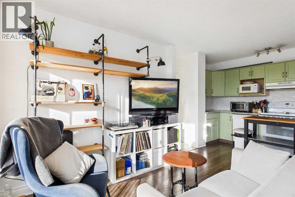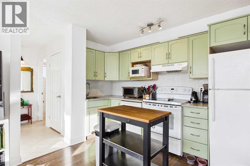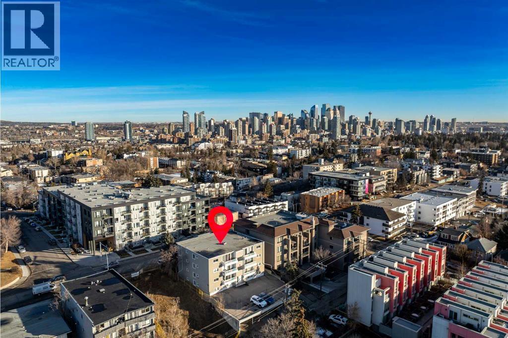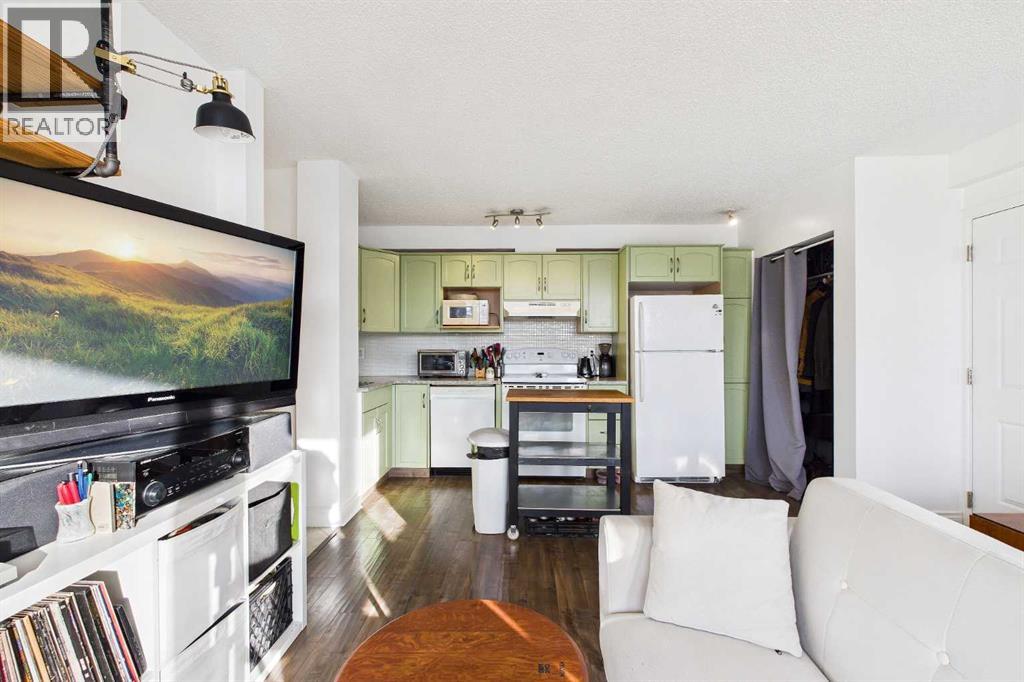 Welcome to the “AURORA PLACE“ this adorable one-bedroom condo perfectly situated just steps from the vibrant shops, cafés, and restaurants of 17th Avenue. This inviting home blends comfort and convenience and affordable condo fees making it ideal for first-time buyers, professionals, or anyone looking to enjoy an urban lifestyle without sacrificing coziness. Inside, the thoughtfully designed layout offers a bright and functional living space featuring hand-scraped laminate floors, a trendy yet spacious kitchen with mint green cabinets, lots of counter space, updated backsplash, a movable island and additional storage across the top of the cabinets if needed. The flexibility of the open concept layout flows seamlessly together offering a cozy living room and still room for a dining table if desired. The whole main living space is accented with a large south-facing balcony, where you can soak up sunshine all day long and perfect for a morning coffee or relaxing evenings. Large windows flood the space with natural light, creating a warm and welcoming atmosphere throughout. Adding to the convenience, this home comes with in-suite laundry for everyday ease, a spacious primary bedroom and 4 piece bathroom. Additional highlights include a separate storage and a dedicated parking stall eliminating the stress of inner-city parking, and a well-maintained building in a highly desirable location. With transit, parks, nightlife, and daily amenities just moments away, this charming condo offers the best of city living in a space that truly feels like home. Most pets are allowed with board approval, however dogs are not allowed. (id:54406)