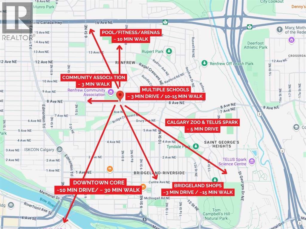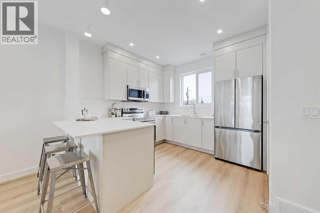 *VISIT MULTIMEDIA LINK FOR FULL DETAILS & FLOORPLANS!* BRAND NEW, MOVE-IN-READY TOWNHOME PROJECT FOR SALE IN RENFREW! Presenting this upper-level unit boasting over 1,000 sq ft, with 2 beds, 2.5 baths, and a single detached garage. The main floor showcases luxury vinyl plank flooring, and an open-concept layout with a central kitchen boasting tiled backsplash, quartz countertops, bar seating, and stainless steel Samsung appliances, including a French-door refrigerator and ceramic top stove. The adjoining living and dining areas provide a comfortable setting for meals or unwinding after a long day, while a stylish 2-piece powder room completes the main level. Upstairs, 2 spacious bedrooms, each with a 4-piece ensuite, await. Both bathrooms feature tiled flooring, quartz vanities, and a tub/shower combo. The spacious primary bedroom features a private balcony overlooking the residential street and downtown. Completing this upper level is a laundry closet with a stacked washer/dryer. Stylish and durable, the exterior features Hardie Board and Smart Board detailing, as well as brushed concrete steps and walks. Located in the heart of Renfrew, a tranquil inner-city community filled with tree-lined streets and green spaces. Enjoy being steps from ample parks, playing fields, and the Renfrew Community Association, which includes a playground and seasonal ice rink. Plus, enjoy being just minutes from the vibrant dining and shopping scene of neighbouring Bridgeland, and offering quick access to Calgary’s downtown core and major roadways, this townhome project blends inner-city convenience with the ease of a lock-and-leave lifestyle. *Interior photos are of the show home (unit #8). Schedule your private showing today! (id:54406)