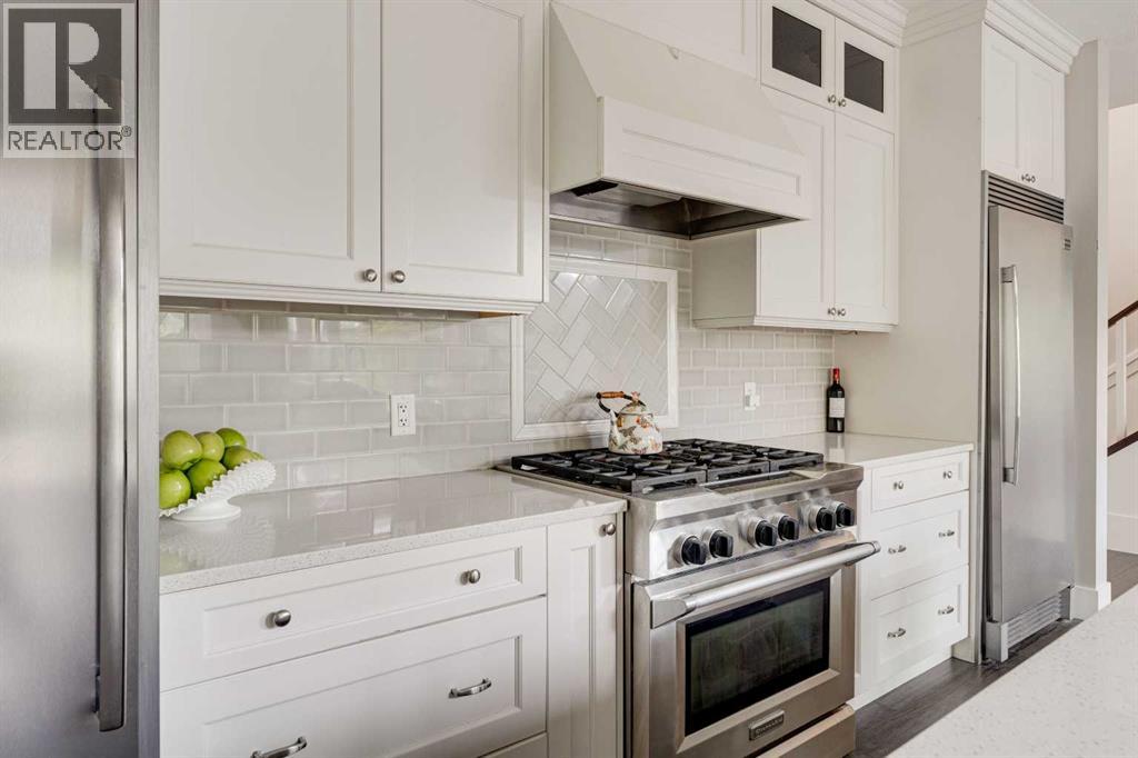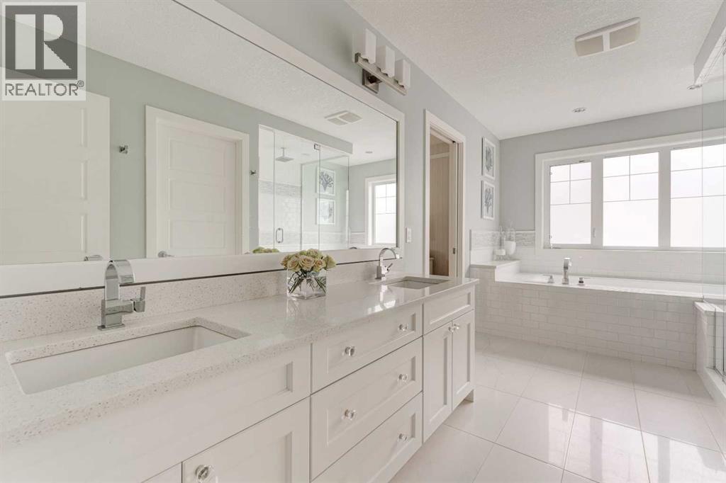 OVER 200K+ IN RECENT RENOVATIONS- BACKS PATHWAY | IMMACULATE MOVE IN READY | TONS OF UPGRADES- Welcome to this stunning home in the prestigious neighborhood of Aspen, Calgary, offering over 4,400 sq ft of meticulously designed living space. This residence exudes sophistication and style, boasting 4 spacious bedrooms and 3.5 beautifully appointed bathrooms. Upon entering, you are greeted by an inviting open floor plan adorned with extensive custom built-ins throughout, creating a seamless flow throughout the home. The state-of-the-art kitchen is a culinary enthusiast's dream, featuring a massive central island, professional-grade appliances, and sleek cabinetry, perfect for entertaining and everyday family life. Adjacent to the kitchen is a cozy dining area with views of the professionally landscaped backyard, which backs onto a serene green space and walking path, providing a tranquil backdrop for outdoor gatherings. The main floor also includes a bright and airy living room with open-to-above ceiling, and a gorgous tiled fireplace, offering the perfect spot for relaxation. Upstairs, the primary suite is a true retreat, complete with a luxurious ensuite bath featuring a soaking tub, a separate shower, and dual vanities. Two additional well-sized bedrooms, convenient laundry, and a full bathroom complete the upper level. The professionally finished basement offers versatile spaces for family and guests, featuring a bedroom with custom-built bunk beds, a large family room with built-in entertainment center, and an impressively designed custom hidden wine cellar. For added security and convenience, an "arming drawer" is discreetly incorporated in the home, providing peace of mind. With central air conditioning, a triple attached garage, and meticulous attention to detail throughout, this home is designed for modern luxury living. Extensive landscaping adds to the curb appeal both front and back - enjoy the multi-level deck and patio spaces with pergola, fire pit, and p lanter boxes, with access to the walking path behind. Situated within one of Calgary's top communities, Aspen Woods provides schools, shopping, transit and more within minutes. Don’t miss the opportunity to make this exceptional property your new home. WHY SETTLE FOR A COOKIE CUTTER HOME! (id:54406)