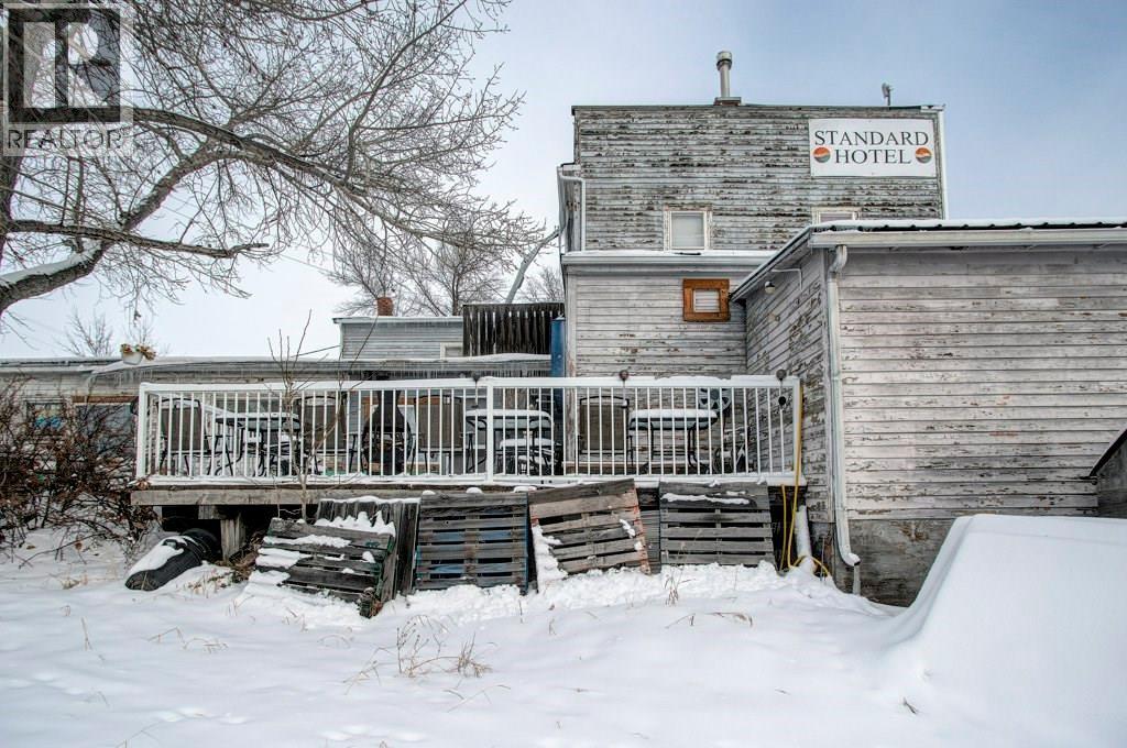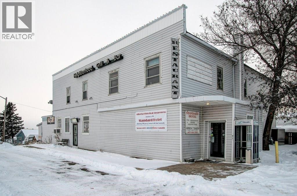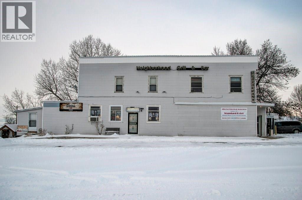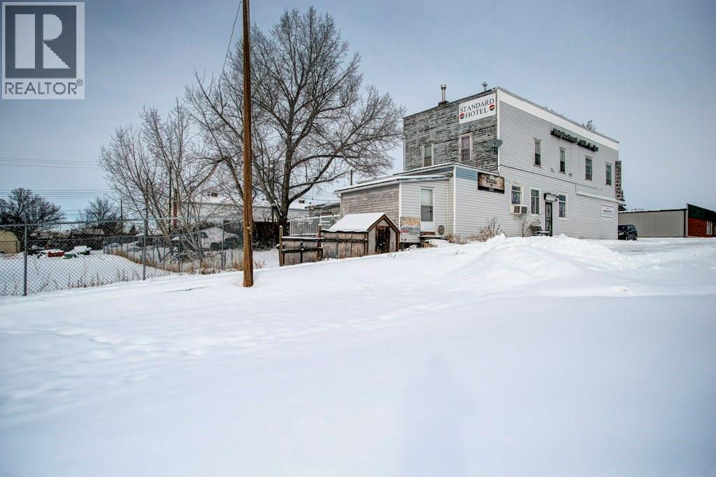 OWNER RETIRES. Bring Your Family. Owner Suite with patio. + Additional Rooms for Rental Income/REVENUE. One Bedroom Unit Main Floor. Newer School K-12 is just minutes away. Bar, Banquet Room. BAR. Karaoke Equipment Included. Commercial Kitchen. Full Basement for Storage. West Patio. Fenced Yard. Land and Building. Lot is 150' X130' Downtown Standard, Alberta. Truly Thriving Farming Community. Live and Work Here. Air BB, VRBO, Bed and Breakfast, Boarding House. Mystery Rooms, Community Functions. 5 Separate Studios Furnished with Fridges. Window Air conditioners. Laundry Room. Upper and Main Floor. Rental Units. Option to create direct access commercial Retail Professional Space for Off Sales. Retail Store. Unlimited Opportunity. Maintained and Upgraded throughout the years. Full Kitchen/Restaurant. Full Basement. Historical Recognition. Furnishings included. Rooming House. Motel. SOLD AS IS. INCLUDES, Furnishings, Kitchen Equipment, Bar. Fixtures and Renovation Materials onsite included. Live and Work Here. Thriving Farming Community. (id:54406)