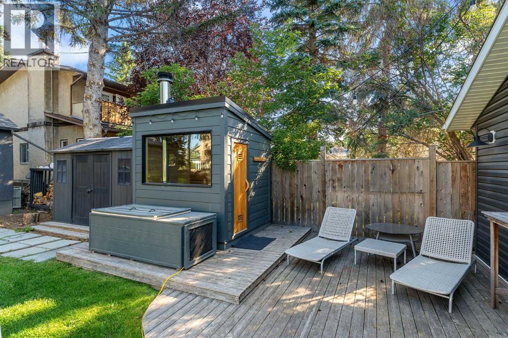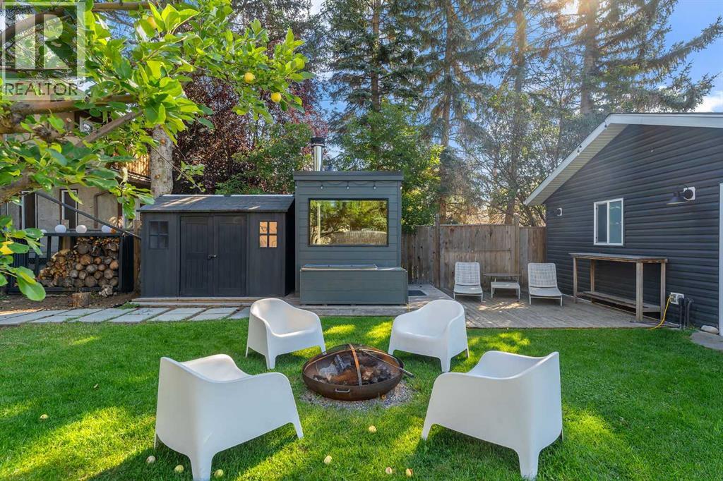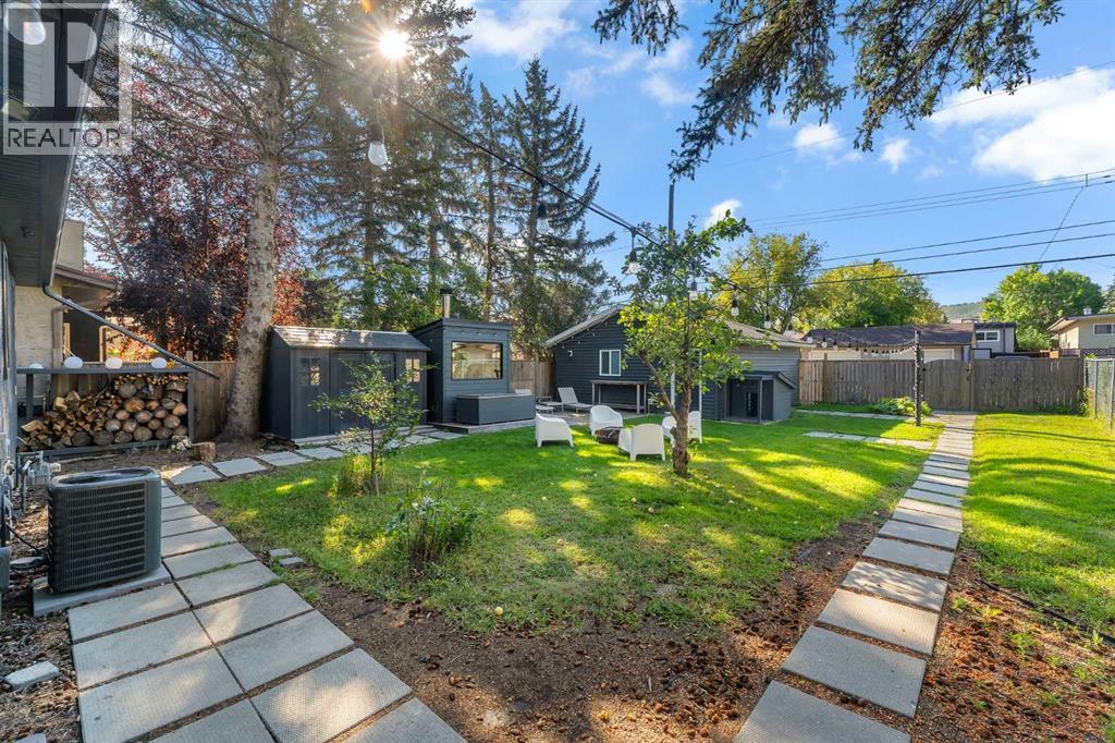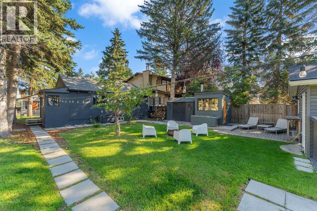 Two love stories have already begun here - in fact, the past two owners chose this very backyard as the setting for their weddings. That alone tells you how special this property truly is. Set on a highly sought-after 50’ x 122’ lot, this charming bungalow in Bowness is framed by mature trees and has been lovingly maintained and upgraded over the years. Inside, you’re welcomed by a functional, well-designed layout. The kitchen features a built-in island with seating, perfect for casual dining or entertaining. Beyond it, you’ll find a spacious mudroom with its own side entrance with access to the basement. The kitchen flows into the sun-filled living and dining areas, where large triple pane windows and hardwood floors create a warm, inviting space. A generously-sized bedroom and a modern 4-piece bathroom complete the main level. Downstairs, the fully developed basement expands your living space with a cozy family room with built-in shelving, a dedicated workspace, and a laundry area. The large primary bedroom is complete with a custom built-in closet and has convenient access to the cheater ensuite 4-piece bath with a jetted tub. Step outside to the south-facing backyard - truly a dream for entertainers and outdoor lovers. Thoughtfully designed with ambient lighting, a large patio area, fire pit with a custom wood stack, huge storage shed, privacy from the many mature trees & perennials, and access to the oversized double garage. It’s easy to see why it has hosted such meaningful celebrations! Situated on a quiet street in this historical community, this home is close to parks, just a short stroll to the Bow River, around the corner from two public schools, and has quick access to the mountains. A rare opportunity to own a property where lasting memories are made, and where your next chapter is ready to begin! (id:54406)