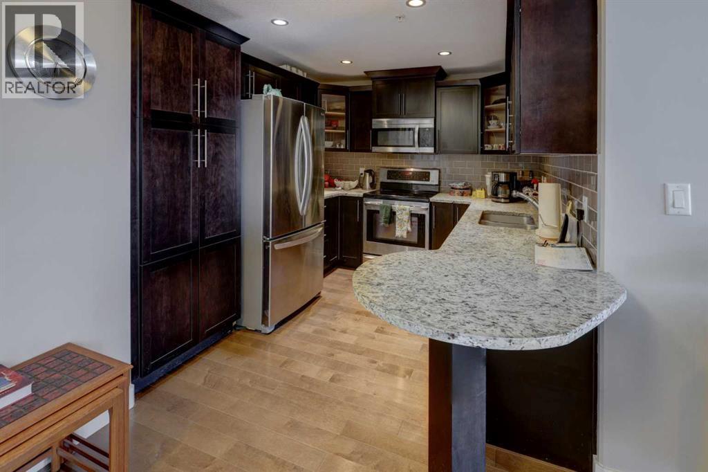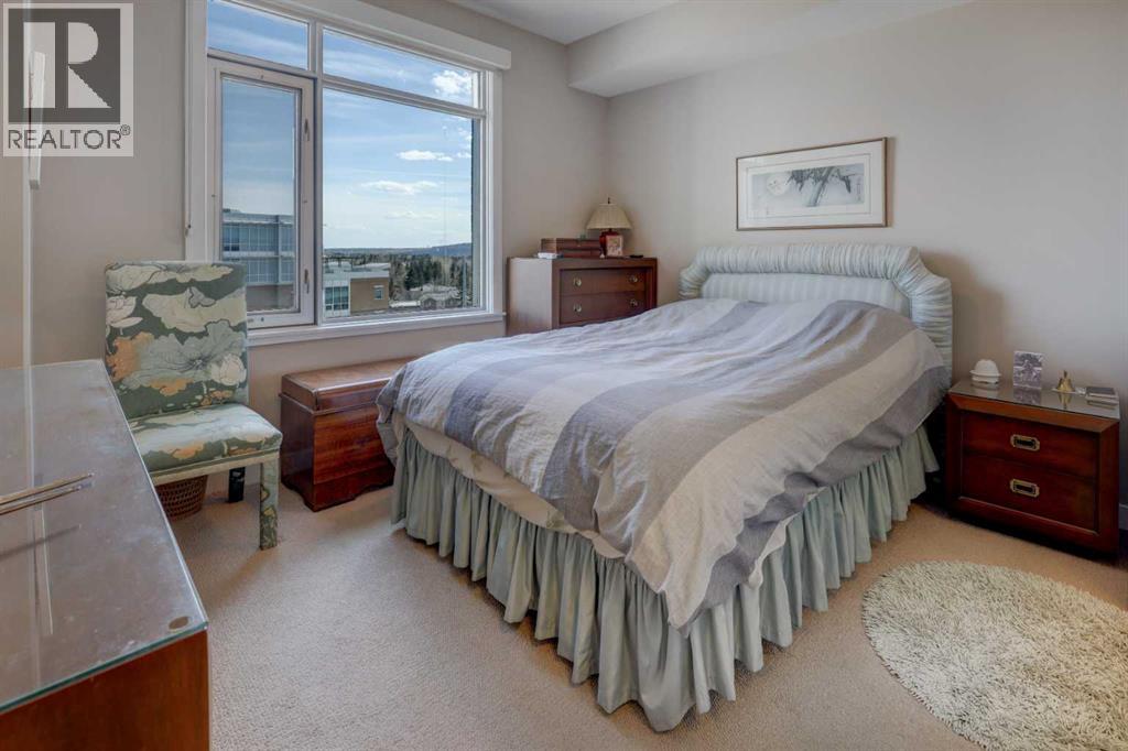 First time on the market! Experience fabulous views and wonderful natural light with this 8th floor beautifully finished 2-bedroom, 1.5-bathroom condo with an enhanced custom floor plan. This quiet, south-facing condo welcomes you with expansive windows and double patio doors that open wide in the summer months to let in a refreshing breeze. The high-end kitchen includes upgraded stainless steel appliances, granite countertops, a custom tile backsplash and rich maple cabinetry. The generous living and dining area with gorgeous hardwood floors, easily accommodates a full-size dining table and offers ample room to relax and entertain with family and friends. The spacious primary bedroom includes additional south-facing windows, a double walk-through closet, and a large 5-piece ensuite with double vanity, soaker tub, and custom stand-up shower. The second bedroom is well-sized and ideal as a guest suite or home office for those needing a dedicated workspace. This home features separately controlled central air conditioning and heating for year-round comfort, as well as a large laundry room with a full-size washer and dryer and storage space. Additional perks include steel & concrete construction, a secured storage locker and the best titled parking space in the community that is wheelchair accessible. Enjoy peace of mind in a well managed condo corporation with outstanding amenities. Owners appreciate free access to a very well-quipped fitness centre with massive windows and incredible views in all directions, an owner’s lounge, rooftop terrace with communal BBQs, and a steam room in the private men’s and women’s locker rooms. A thoughtfully appointed front lobby greets your guests along with plenty of guest parking. Perfectly located close to all amenities including public transit, Dalhousie C-Train Station, grocery stores, restaurants, Nose Hill Park, Foothills and Children’s Hospitals, University of Calgary, top-rated schools, Silver Springs Golf Course, Market Mall , Parks and much more. Schedule your private showing today! (id:54406)