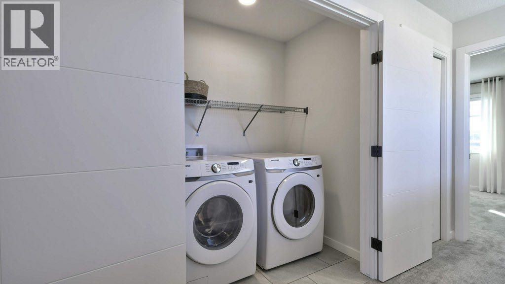 OPEN HOUSE SATURDAY FEB 28th and SUNDAY MARCH 1st FROM 12:30 PM - 4:30 PM *** LUXURIOUS STREET TOWN * NO CONDO FEES * DOUBLE CAR GARAGE * SIDE ENTRY DOOR * FULLY LANDSCAPED * DECK * WINDOW COVERINGS * UPGRADED FINISHINGS * Wonderful home located within a 5 minute walk to the Bow River where nature is right at your back door! As you enter this "open concept floor plan", the first features you'll see are the gorgeous wide plank floors, the 9 foot high ceilings, a cozy fireplace and elegant metal railing on the staircase. The spacious living room allows for casual family gatherings or a fun movie night. The dining room is located in the middle of the home and has the capacity to fit a large dining room table. The kitchen is at the REAR of the home and has an island with eating bar, a pantry, quartz countertops, Slim Line lighting and pendant lighting. The mudroom has a bench and hooks for jackets. The upper floor has a huge primary bedroom that has a walk in closet and a 4 piece ensuite bathroom which includes a 5 ft. wide TILED shower and 2 sinks. The 2 spare bedrooms are at the back of the home where you'll also find a 4 piece bathroom. The laundry room is on the upper floor as well. There's also a Tech space for a desk at the top of the stairs. The basement is unfinished but has plumbing rough-ins for a bathroom, laundry facilities and a bar sink. As you enter the backyard from the mudroom a 100 square foot deck is there to get your future backyard plans started. We have provided a rough-in gas line for your BBQ here. To get you out of Calgary's long winters, a double car garage is waiting for you! Grass will be provided for both the front yard and the back. Energy saving components are triple pane windows, a 96% high efficient furnace, LED lighting, a high end Air Filtration System ( HRV ) and a ECOBEE SMART thermostat that's an "all in one Smart Device. There's a shallow concrete swale in the backyard for drainage. Pictures are representative. Not all compon ents in the pictures are included. Pictures are of a showhome but not the exact home. Builder's representative will clarify all details prior to a contract being written. RMS measurements taken from Builder's blueprints. (id:54406)