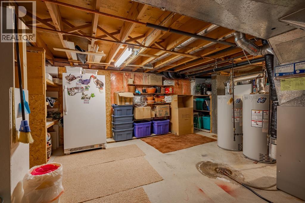 Welcome to Woodridge Estates; ideally nestled alongside the parks and pathways of beautiful Fish Creek Park, this inviting two-storey semi-detached townhome offers over 1,960 sq. ft. of above-grade living space plus a fully developed lower level. You are promptly welcomed by a large foyer with gleaming parquet floors that adjoins a versatile office or flex room. The functional kitchen offers ample counter space for meal prep and entertaining, along with a bright breakfast nook that opens onto a deck—perfect for BBQing or enjoying your morning coffee. The kitchen also provides easy access to the formal dining room. Just a few steps down, the generous family room features a charming brick fireplace and access to a second deck, ideal for hosting family and friends. A two piece bathroom completes this level. Upstairs, the expansive primary bedroom includes a sitting area, walk-in closet, and a five-piece ensuite with jetted tub. The second bedroom is generously sized. A four-piece main bath and convenient upper-level laundry complete this floor. The developed lower level offers a games area, additional flex space, and a two-piece bathroom, along with a large storage and utility room. The double attached garage is drywalled and insulated for added comfort. This home has excellent bones and offers a fantastic opportunity for updates to suit your style. Located in a quiet, upscale townhome community, it provides easy access to schools, transit, Anderson Road, Stoney Trail, Fishcreek Park and all the amenities—making it a wonderful place to call home. (id:54406)