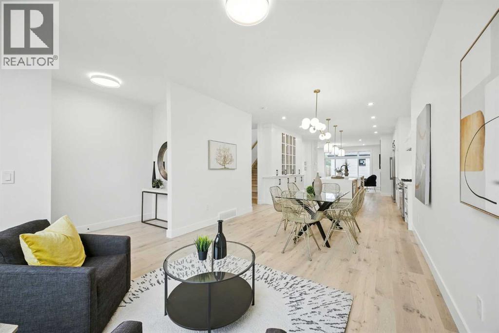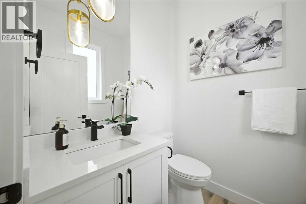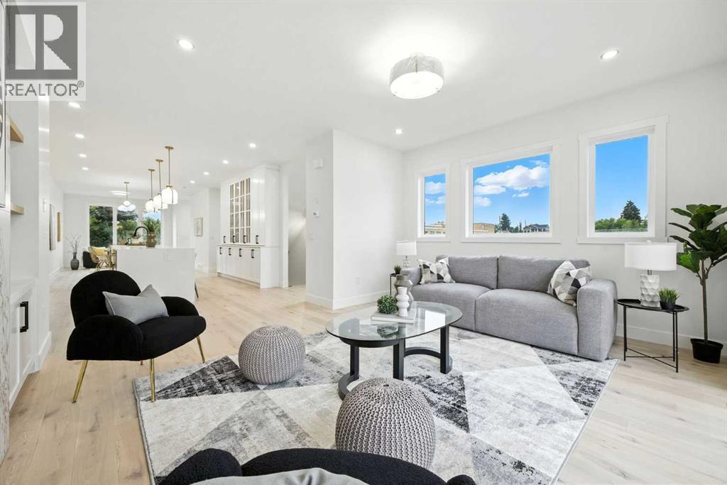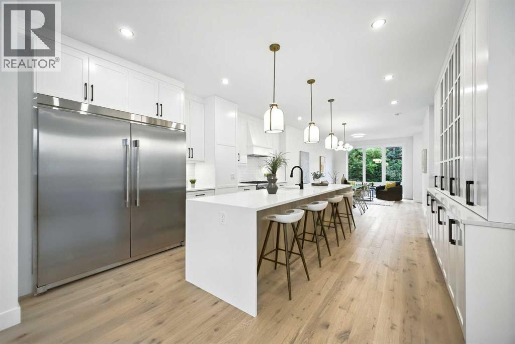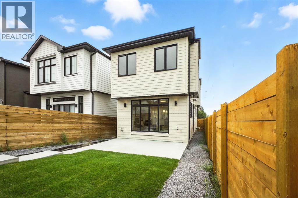 Welcome to this stunning, newly built residence offering over 2,800 sq. ft. of thoughtfully designed living space in the heart of Mount Pleasant. Ideally situated on a coveted corner lot across from the school and surrounded by professional landscaping, this home perfectly balances style, function, and location. With a striking modern design, the home showcases clean architectural lines, abundant natural light, and effortless indoor-outdoor flow. The open-concept main floor is both inviting and sophisticated, featuring engineered hardwood floors, a sleek gas fireplace with custom built-ins, and expansive windows that flood the space with sunlight. The chef’s kitchen is a true centerpiece—equipped with quartz countertops, a waterfall island, premium appliances (including an oversized refrigerator), a walk-in pantry, and ample built-in storage. Oversized sliding doors open to a private backyard retreat, complete with a concrete patio, green space, and access to the double detached garage. Upstairs, the luxurious primary suite offers a serene escape, complete with an electric fireplace, custom walk-in closet, and a spa-inspired ensuite featuring a steam shower, heated floors, and a freestanding soaker tub. Two additional bedrooms, a full bathroom, and a conveniently located laundry room complete the upper level. The fully finished basement expands your living options with a spacious rec room, wet bar with wine fridge, a dedicated home gym, a fourth bedroom, and a full bathroom—perfect for entertaining or welcoming guests. Located just minutes from Confederation Park, the Mount Pleasant Sportsplex, top-rated schools, playgrounds, and with quick access to downtown, this home offers the perfect blend of modern comfort, refined design, and inner-city convenience. A rare opportunity to own a truly exceptional home in one of Calgary’s most desirable neighborhoods. (id:54406)