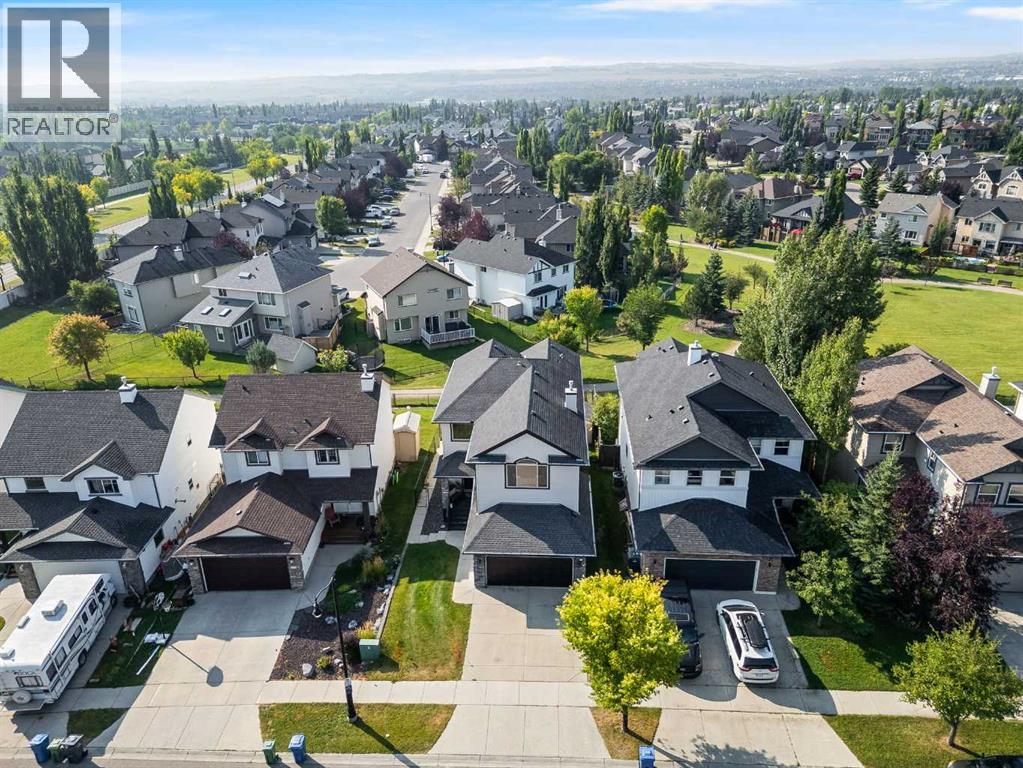 Welcome to this fully finished walkout 2-storey offering over 3,000 sq ft of living space designed for both comfort and lifestyle. Complete with air conditioning, a large garage, and a setting that backs onto greenspace and walking paths with mountain views and a park nearby, this home truly has it all. You’ll also enjoy exclusive lake access with year-round activities—swimming, fishing, paddle boarding, volleyball, basketball, and barbecues in the summer, plus skating in the winter. Add in a great school district and quick access to Calgary, just 15 minutes to South Calgary, and the location checks every box. Inside, you’re greeted by a grand entrance, where the main floor features 9-ft ceilings and hardwood flooring. A front office makes working from home easy, while the open living area offers a gas fireplace and large windows for natural light. The kitchen showcases a big island, dark stainless appliances, and flows to the dining area with access to a back deck where you can enjoy the greenbelt behind you. Upstairs you’ll find a vaulted bonus room and three bedrooms, including a large primary suite with mountain views, a walk-in closet, and a spa-inspired ensuite with a jetted tub, walk-in shower, and dual sinks. The fully developed basement adds even more living space with a big bedroom, full bathroom with shower, a wet bar with cabinets, and a large open rec space that walks out to the backyard. This home blends lifestyle, location, and family-friendly features in one complete package. Call your favourite Realtor to book your private showing—homes like this don’t last long! (id:54406)