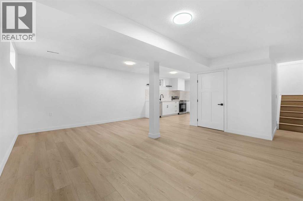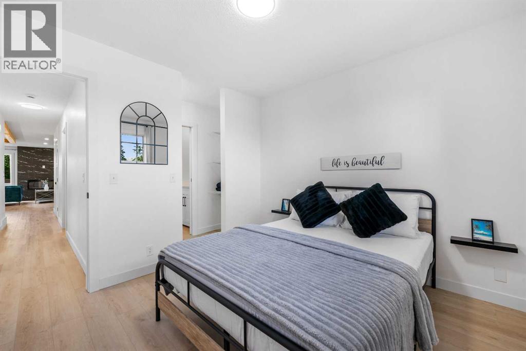 Welcome to "Paradise at Berkley"! This 5 bed + 2.5 bath fully remodeled semi-detached Bungalow with a WALKOUT Basement has been thoughtfully REMODELED from the studs up in a modern farmhouse style. With a beautifully finished 2 bed + 1 bath illegal SUITE, this home offers the perfect balance of family living with a downstairs rental, or a multi-generational household. With Brand NEW PLUMBING throughout the entire home, this property makes an incredible investment! Inside, the Open Concept floor plan is bursting with style. Superior craftsmanship is showcased throughout — from the massive Oak BEAM framing the kitchen paired with 8mm light oak LUXURY VINYL PLANK flooring running seamlessly across the home, custom 'hidden' laundry tucked behind dual Barn Doors, and new windows that flood the home with natural light. Your guests will love cozy evenings around the custom electric fireplace, where elegant tilework and a tailored frame add warmth and sophistication. The chef-inspired kitchen is a showstopper, featuring a statement Custom Range Hood, Quartz Countertops with an undermount Composite Sink, light oak Floating Shelves, a spacious Black Fluted Island with breakfast bar, matte black Hardware, a striking cloudy tile backsplash — all tied together with a full suite of Stainless Steel Appliances. The main level features 3 spacious bedrooms and 1.5 baths, including a tranquil primary suite with a VIEW and walk-through closet leading to the private ensuite bath. The Walkout Basement offers a spacious 2 bed + 1 bath illegal SUITE, designed with the same attention to detail — featuring a second CUSTOM Kitchen with crisp white cabinetry, black matte Hardware, and modern finishes throughout. Enjoy the backyard, offering a private space for your family, or tenants and access to your oversized driveway. Whether you’re looking to live up, rent down, or run an Airbnb (as the current owners have successfully done over the summer months), your options are endless. Don’t miss yo ur chance to own ‘Paradise at Berkley’. (id:54406)