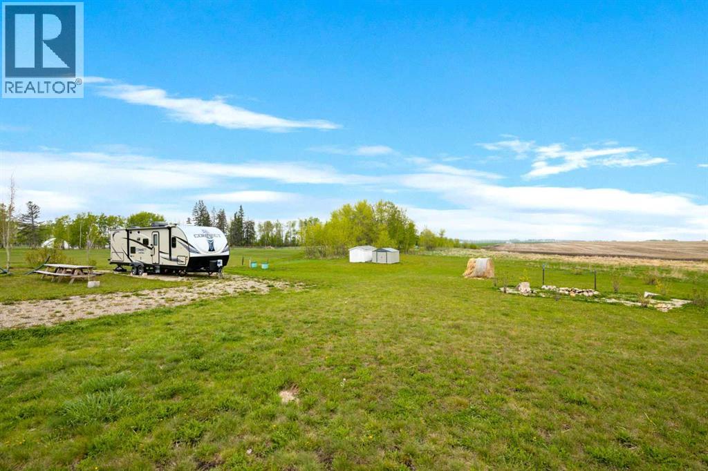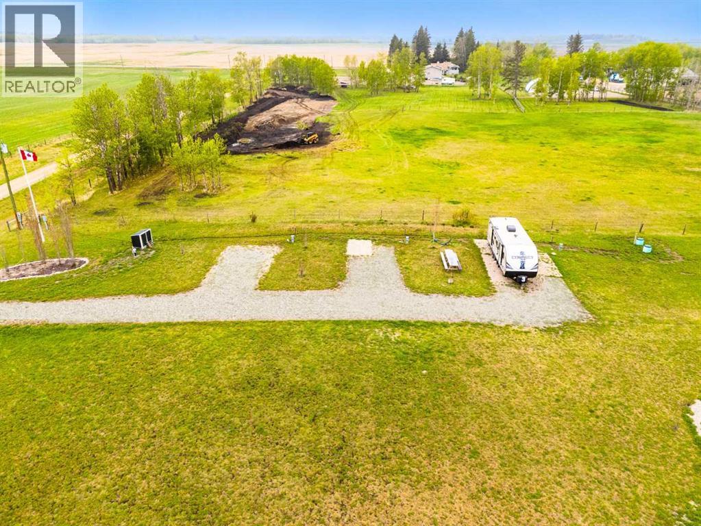 Perfect 25 acre private, gated piece of land minutes away from Glennifer Lake provincial parks for beach, swimming, paddle boating, and relaxing. Sylvan lake is also a short drive from this site. Open sky views with stunning nature views, sunrise and sunsets. Enjoy camping solo or with family and friends, lawn games, long walks, picnic meals and more. Amenities such as gas, groceries, historical landmarks, museums and ice cream store are minutes away by vehicle or bicycle. Currently, 5 acres are developed for personal enjoyment with trees, 2 storage sheds, garden option, stone/gravel fire pit, and 3 gravel trailer sites each with power, water and sewer for private ownership use. The other 20 acres are leased to a longtime local farmer who plants and harvests crops. Neighbours are fantastic. The large sceptic tank is new and has 2000 gallons with alarm. The water well was dug in 2024 and is 10 gpm 140 feet deep. Each site has 3 plug in power pedestals, one 30 amp for your trailer and 2 110 volt plug ins. 100 amp panel box was also installed for future development. Seller financing available. Realtor has interest in the property. Stop paying campsite fees and own your own private campground. Come see the amazing, private, family getaway. (id:54406)